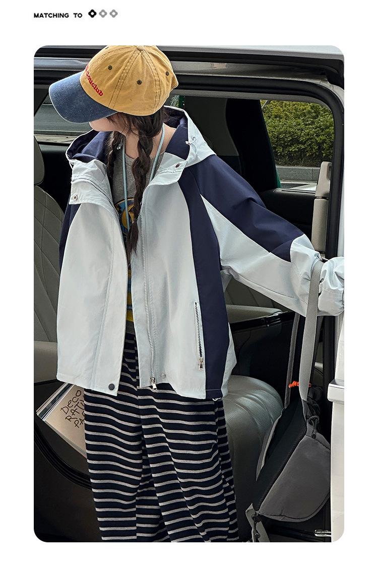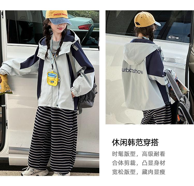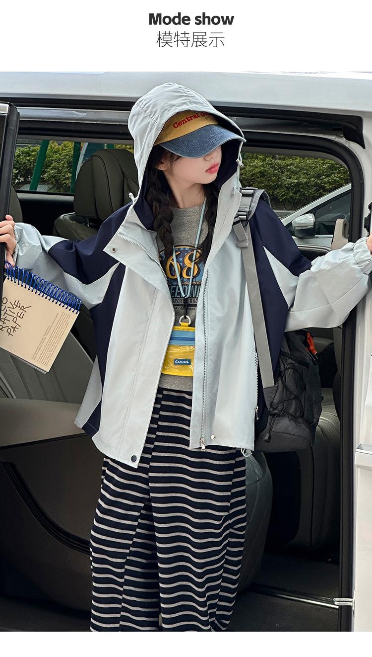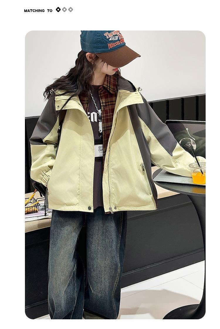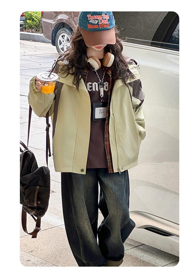 Chaqueta Cortavientos con Capucha para Niños 2025 Primavera Nuevo Estilo Niños Niñas Cortavientos Color Block Gabardina Marea
