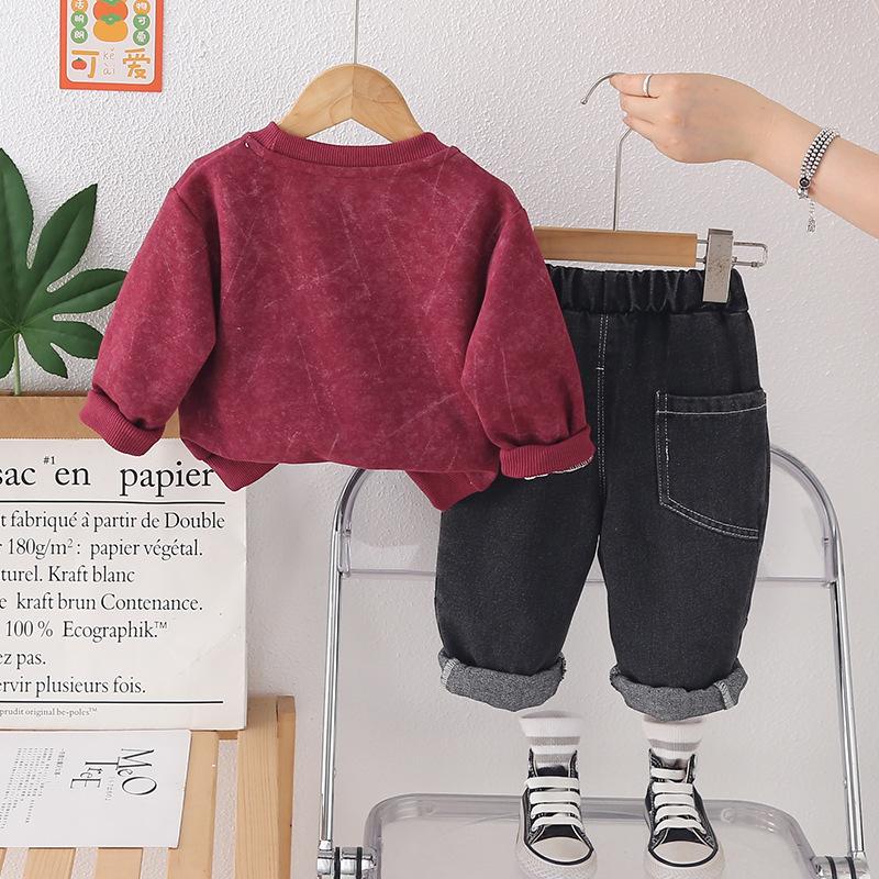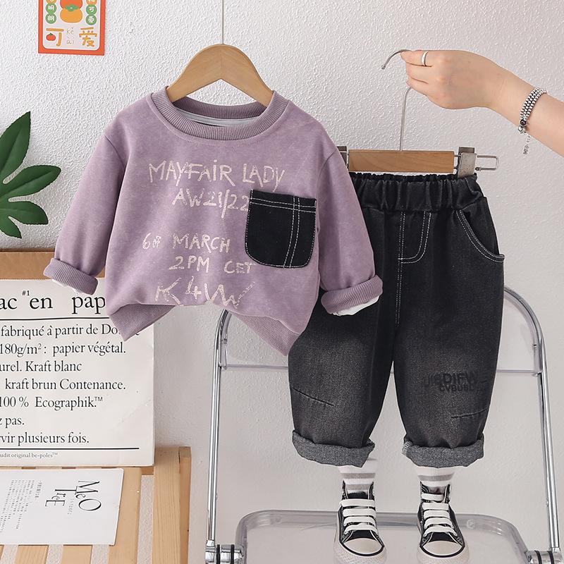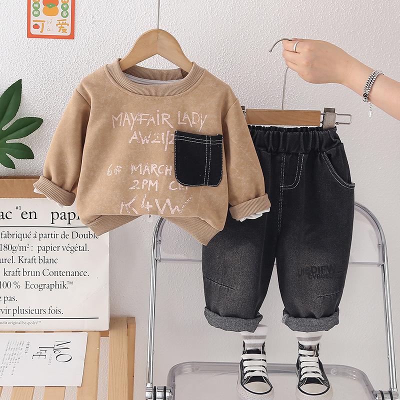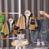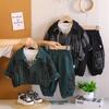 Conjunto de Otoño Estilo Coreano para Bebé con Parche y Cremallera Ropa de Otoño Moderna para Niños Conjunto de Dos Piezas de Moda para Bebé
