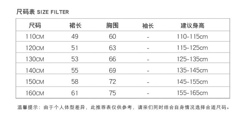 110cm, 120cm, 130cm, 140cm, 150cm, 160cm