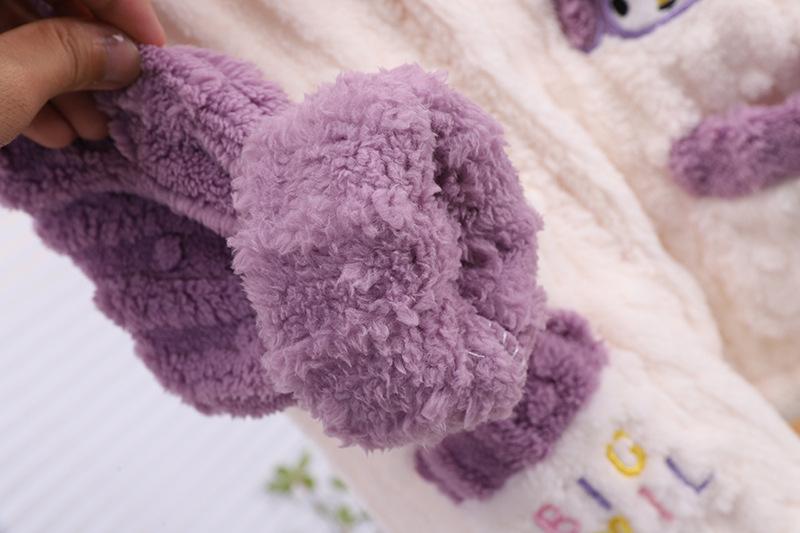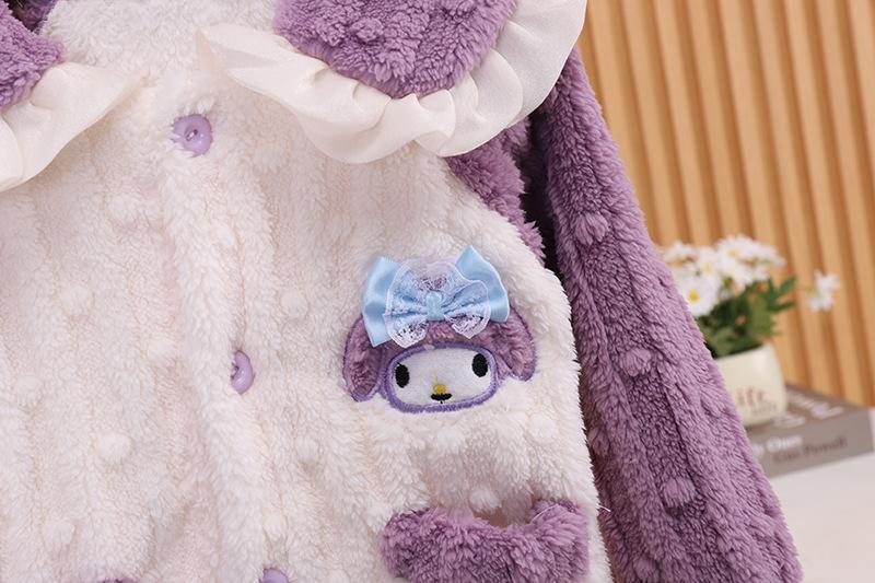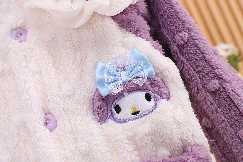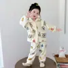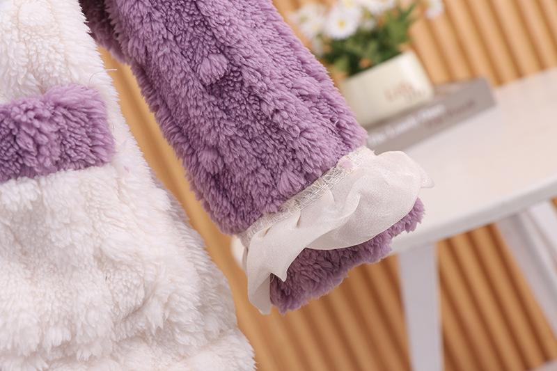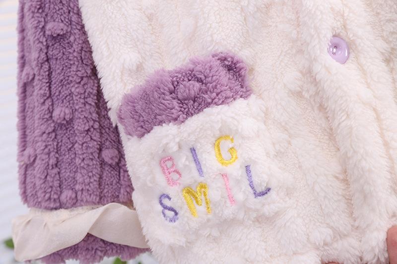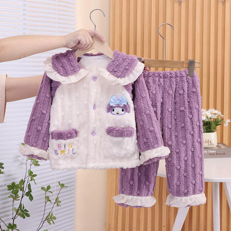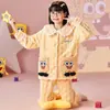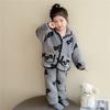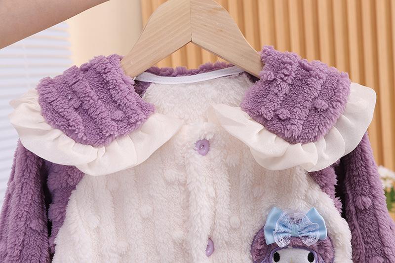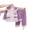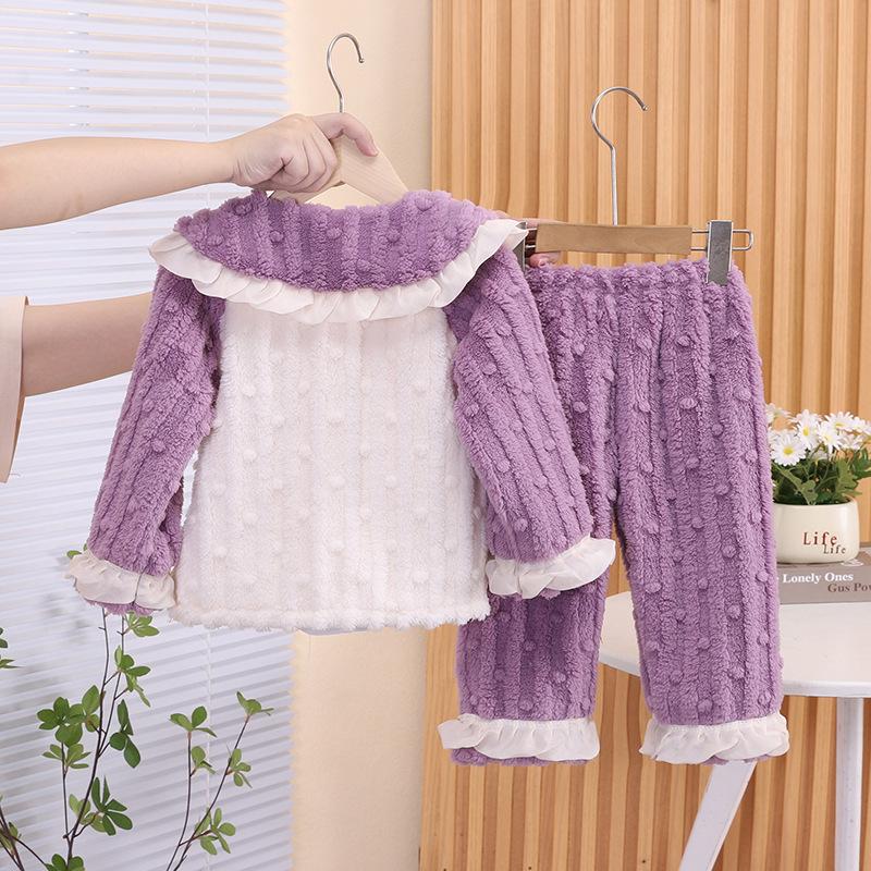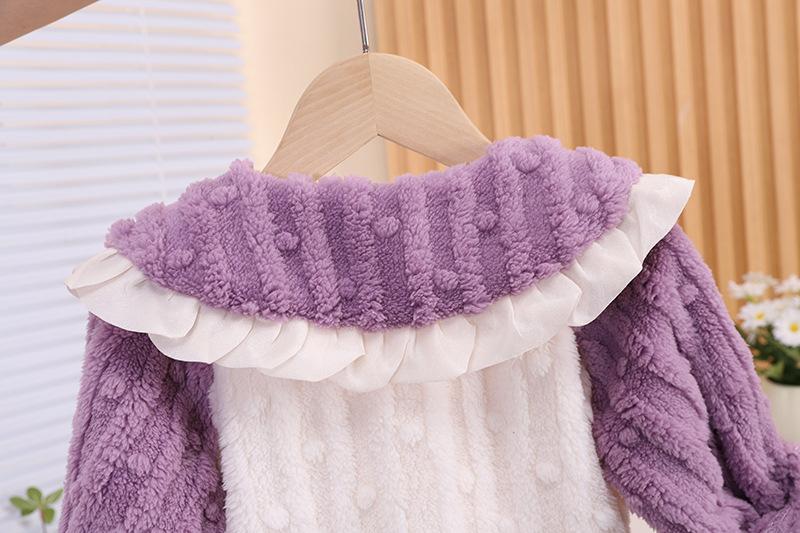 Invierno Engrosado Franela Niñas Dulce Color Block Solapa Bebé Niñas Cárdigan de Manga Larga Pijama Conjunto de Dos Piezas