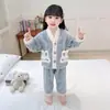 Long Sleeve Little Girl Cardigan Pajama Two-Piece Set Pink