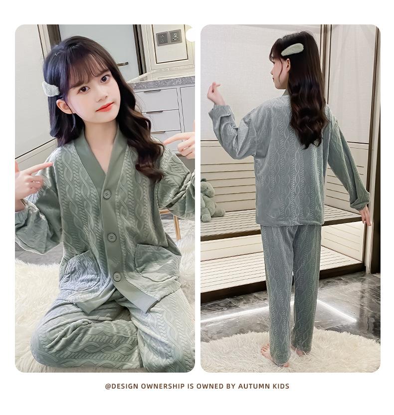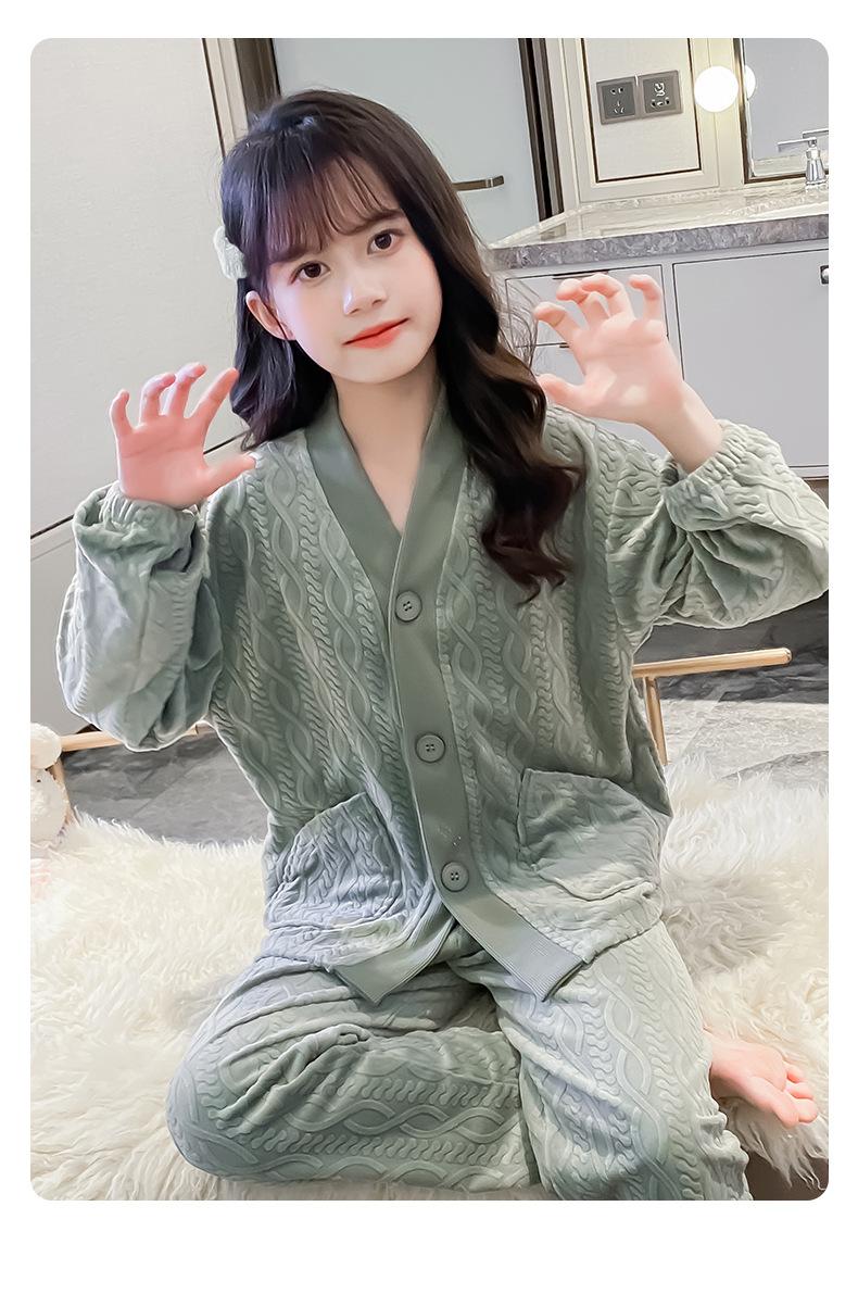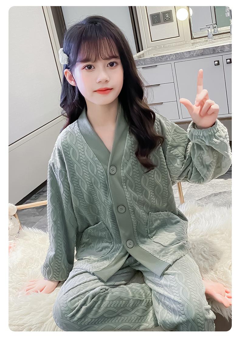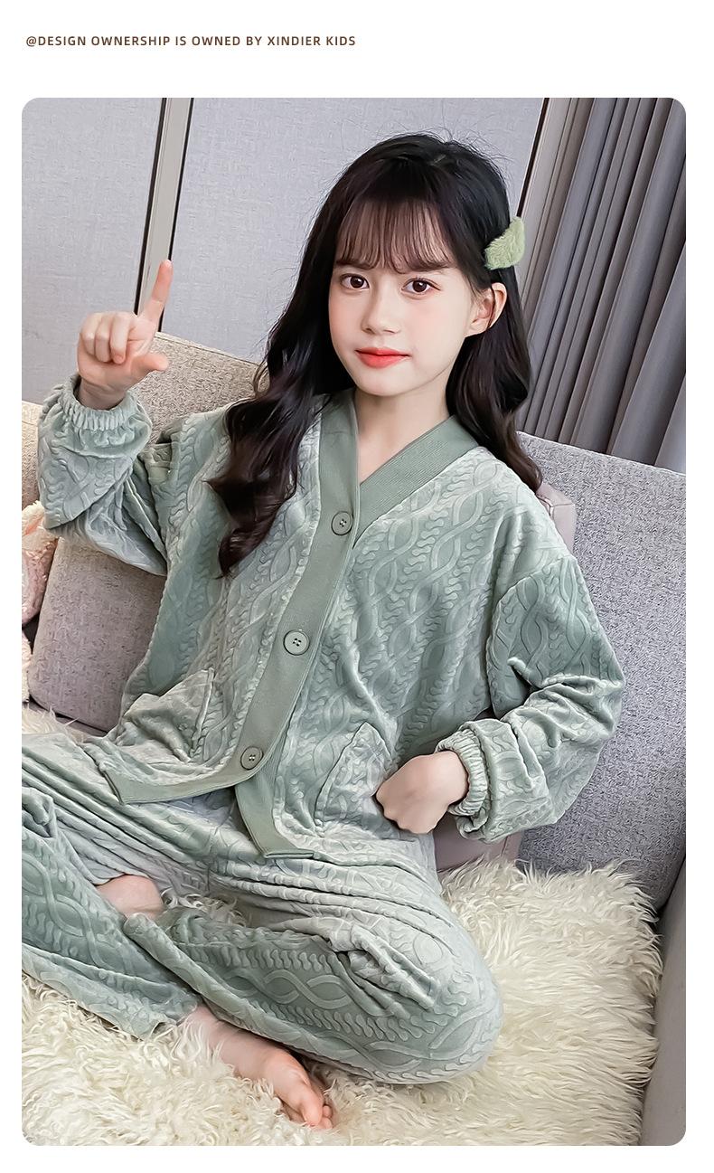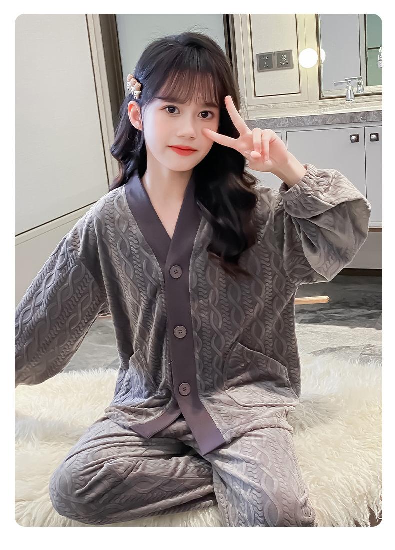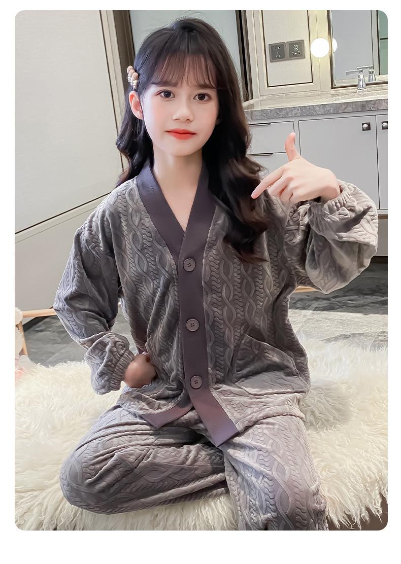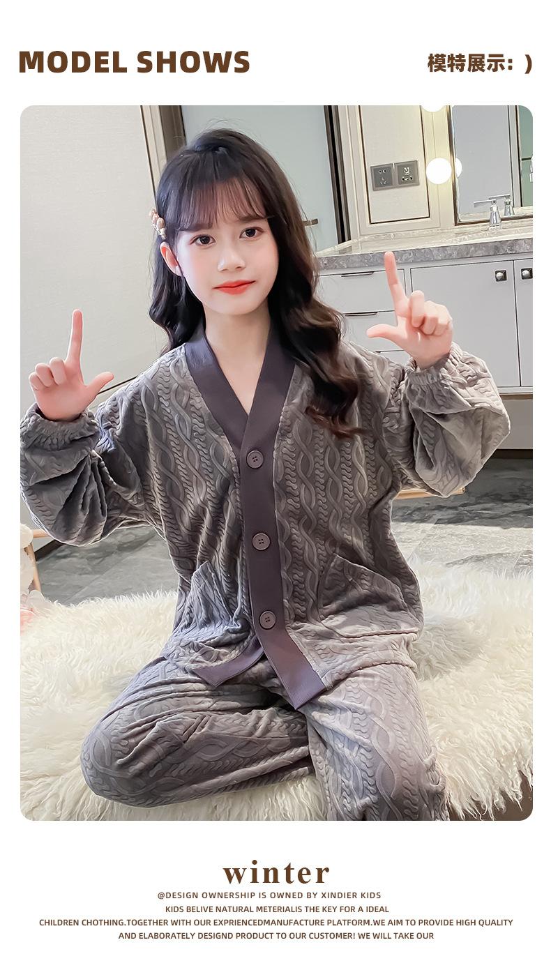 Ropa para niños Pijamas gruesos para niñas Estilo primavera y otoño 2025 Nuevo Cárdigan de otoño e invierno para niños Ropa de casa cálida Niña pequeña