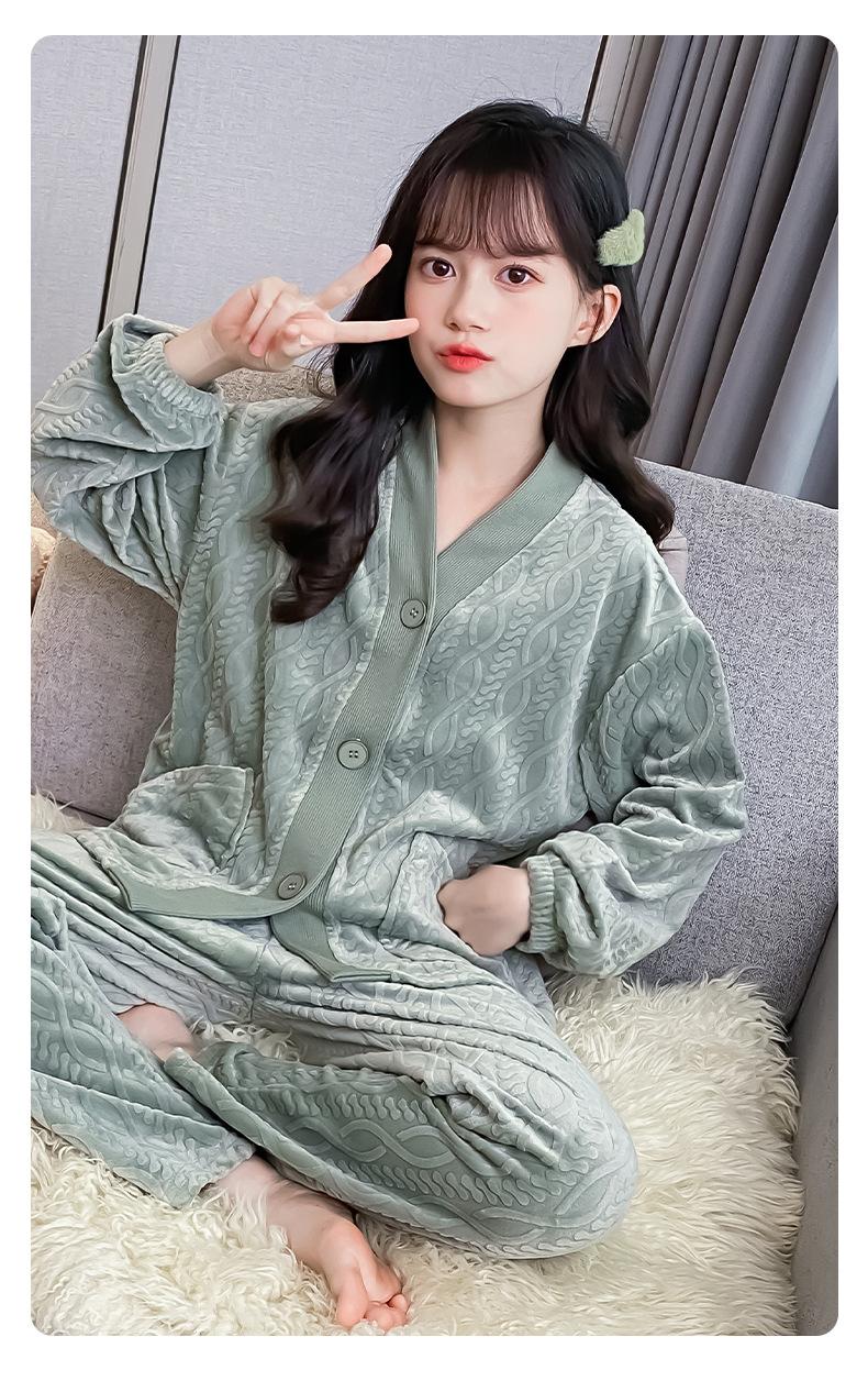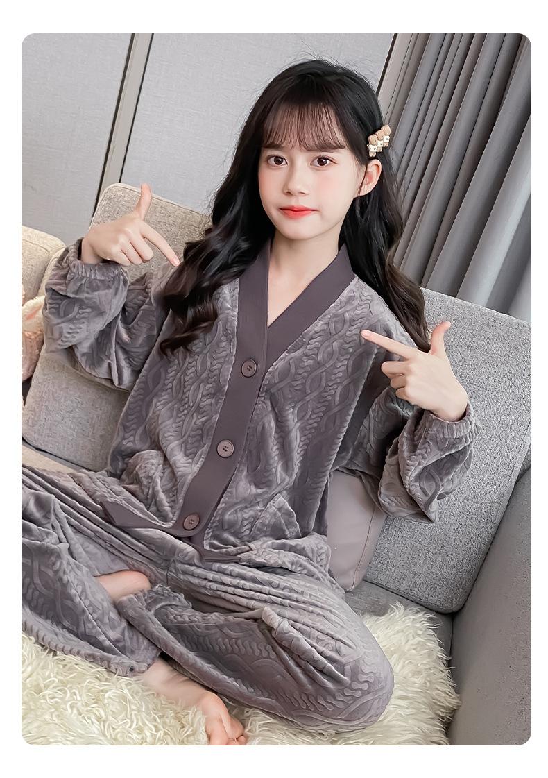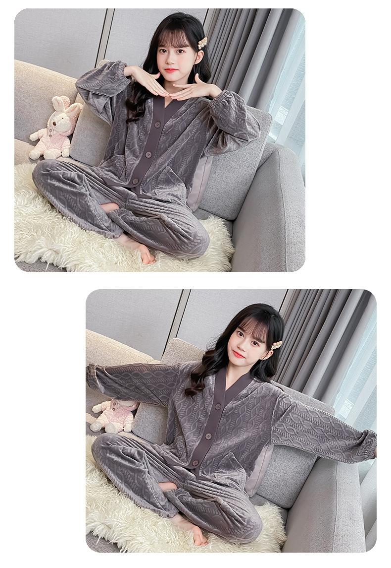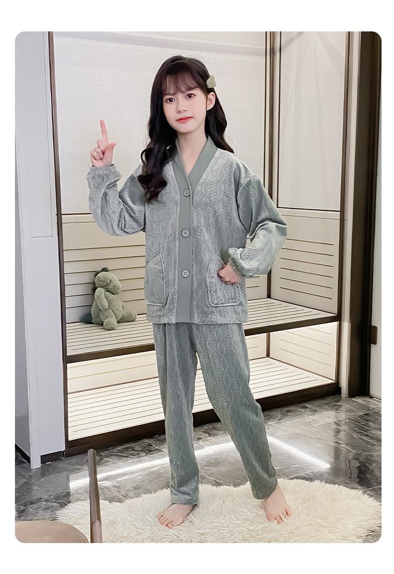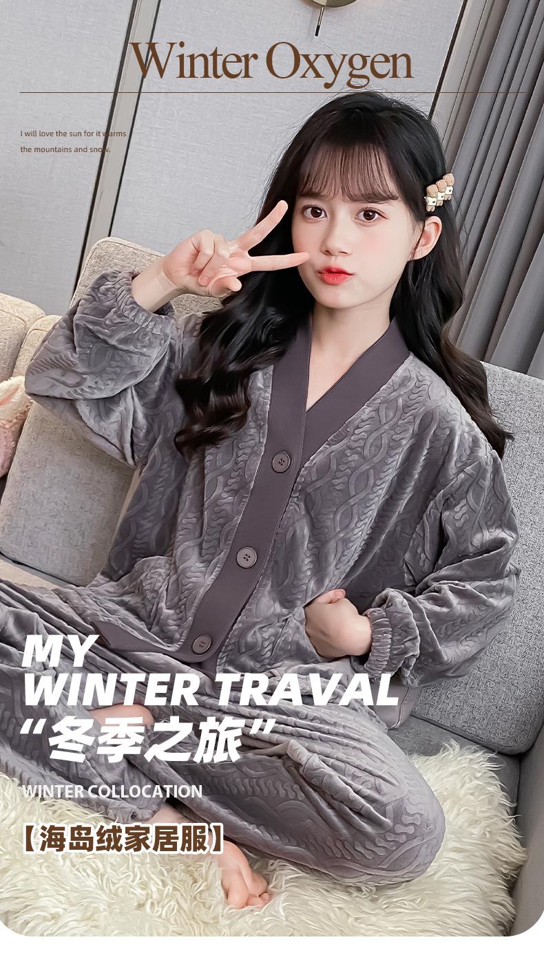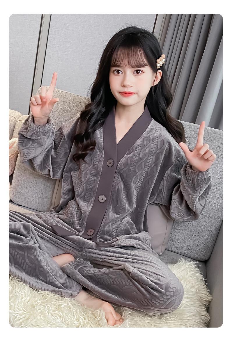 Ropa para niños Pijamas gruesos para niñas Estilo primavera y otoño 2025 Nuevo Cárdigan de otoño e invierno para niños Ropa de casa cálida Niña pequeña