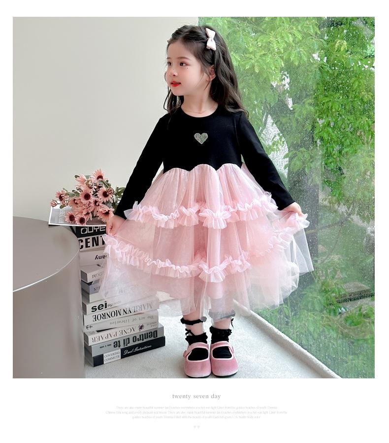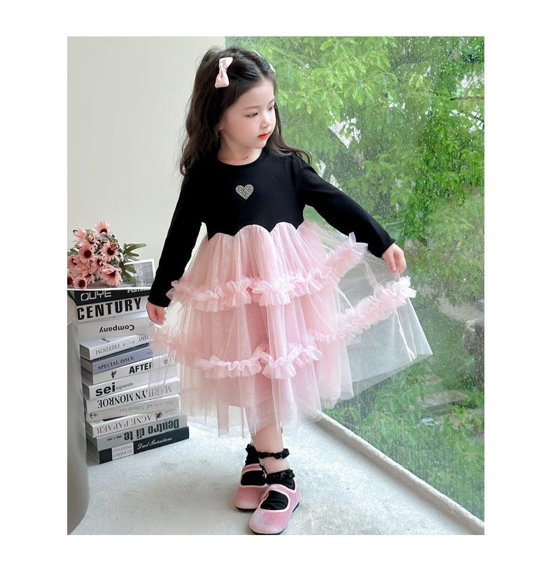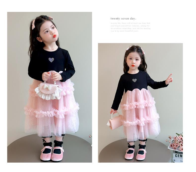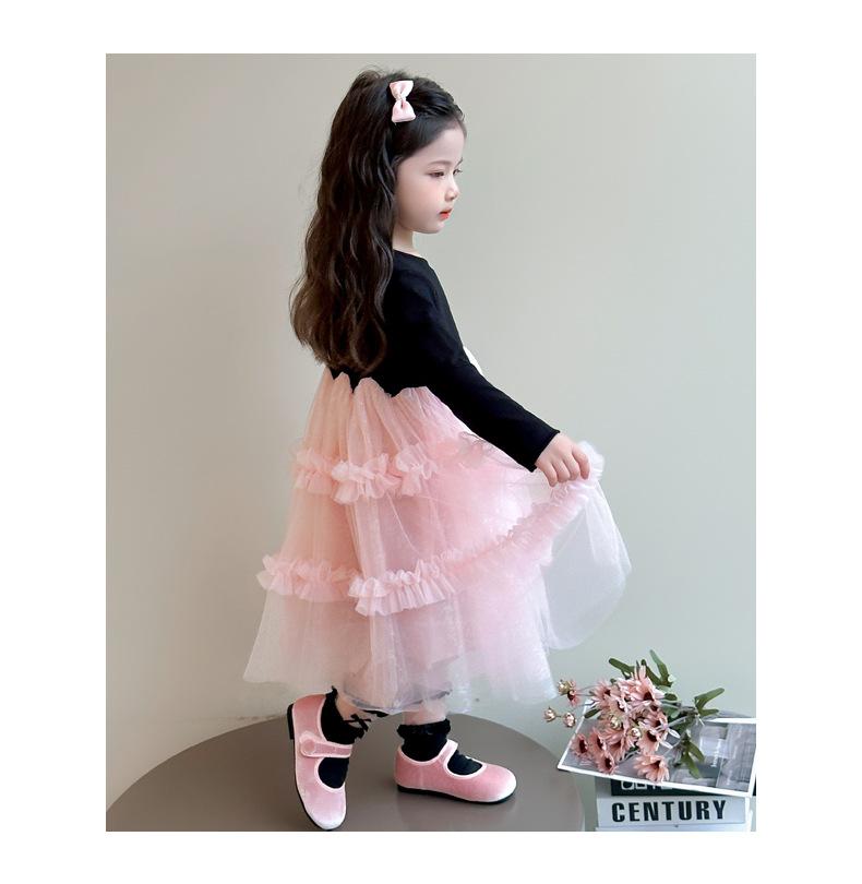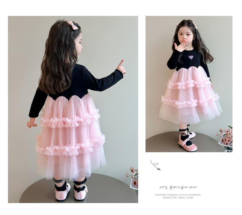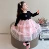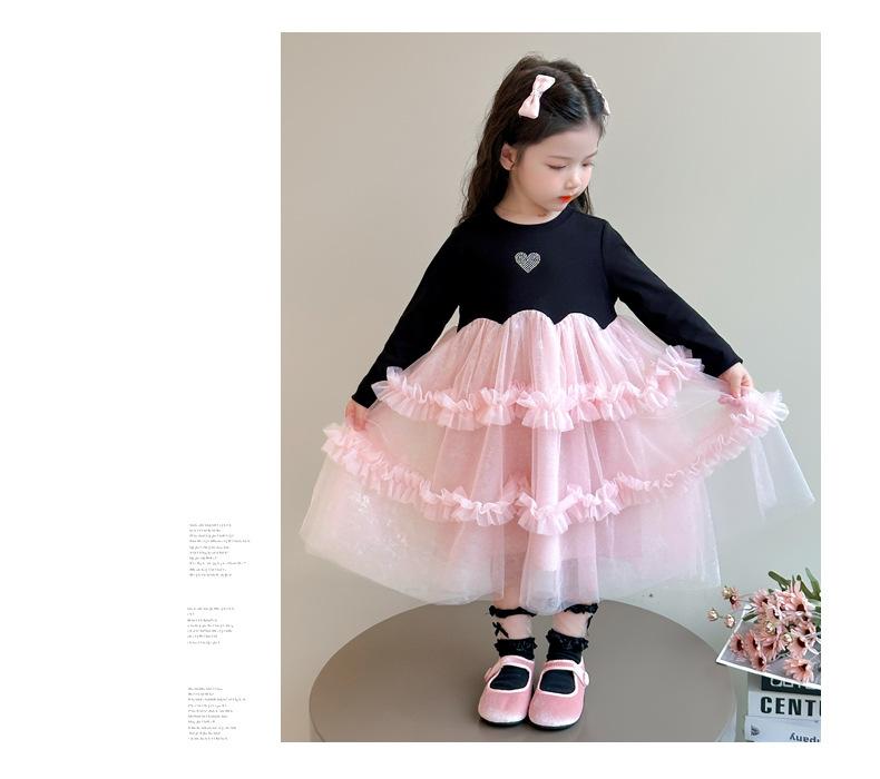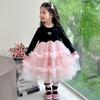 Vestido de Niña Otoño 2025 Nuevo Estilo Niña a la Moda Temporada de Otoño Manga Larga Vestido de Princesa de Malla Francesa