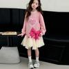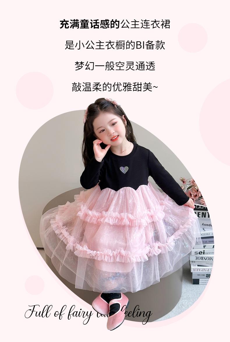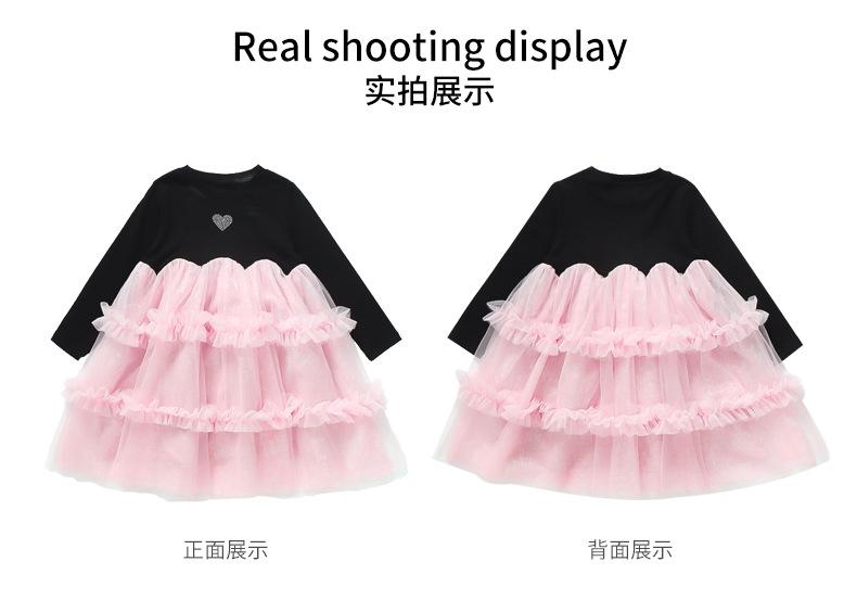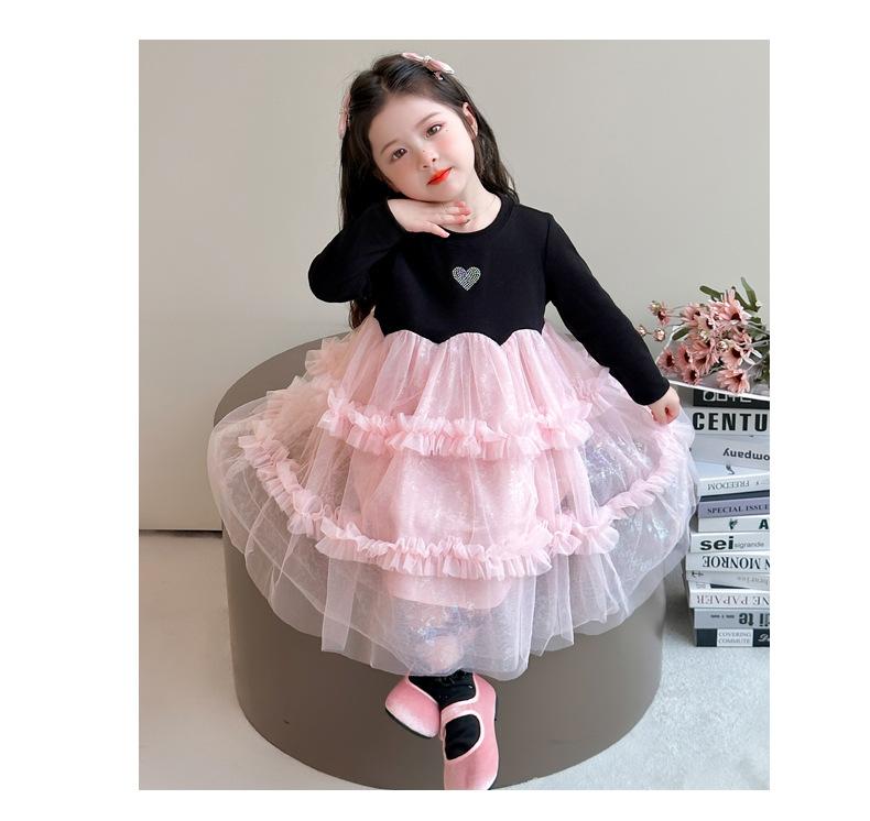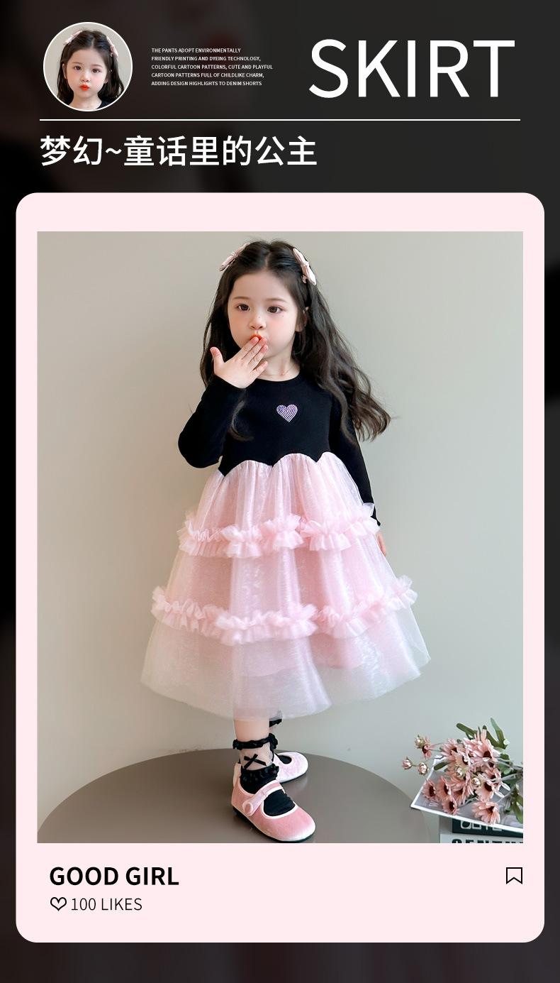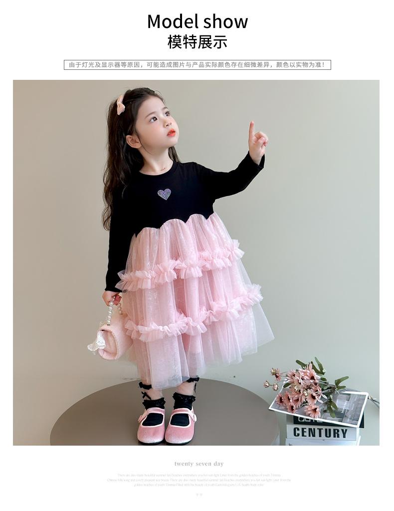 Vestido de Niña Otoño 2025 Nuevo Estilo Niña a la Moda Temporada de Otoño Manga Larga Vestido de Princesa de Malla Francesa