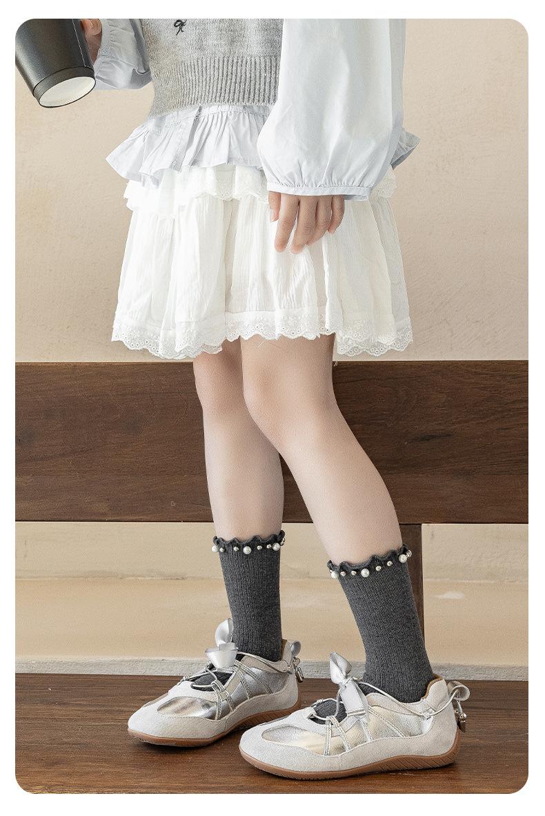 Calcetines para Niñas Primavera Otoño Estilo Coreano Media Caña Calcetines con Volantes de Perlas Calcetines de Princesa Otoño Calcetines para Niños Calcetines Versátiles para Estudiantes