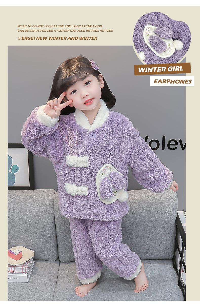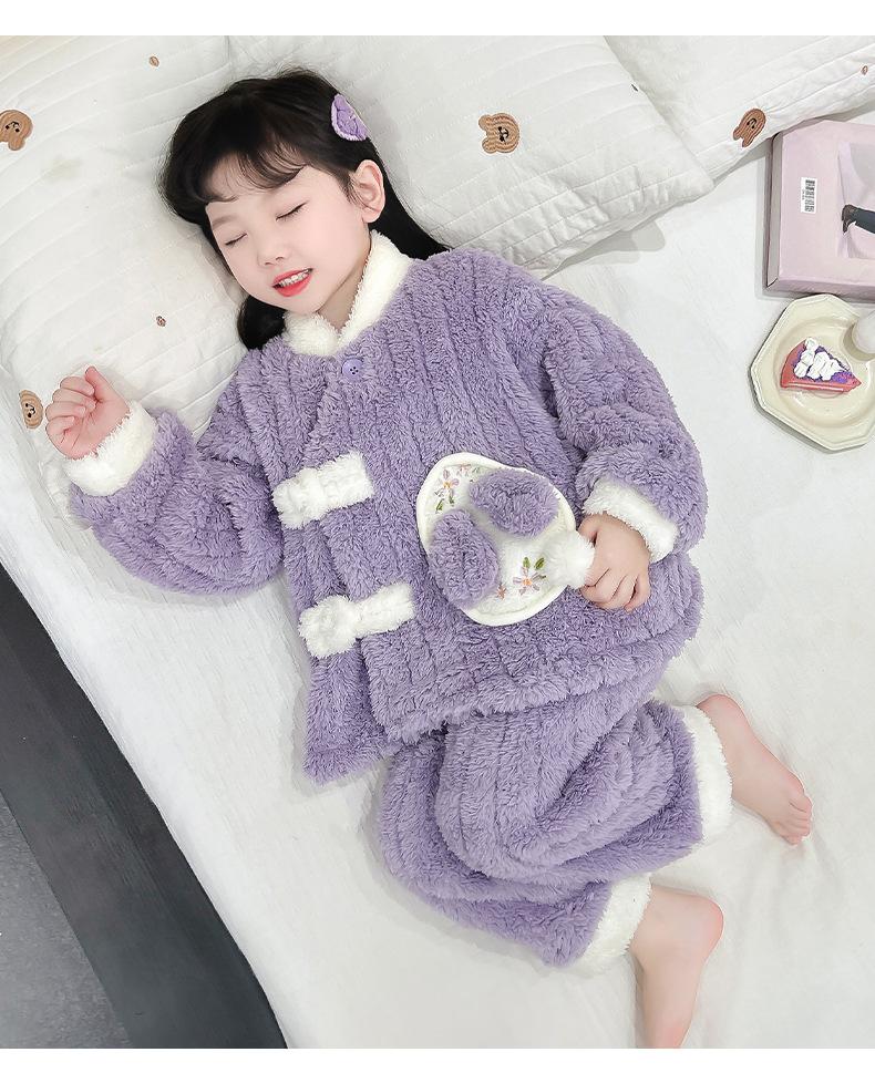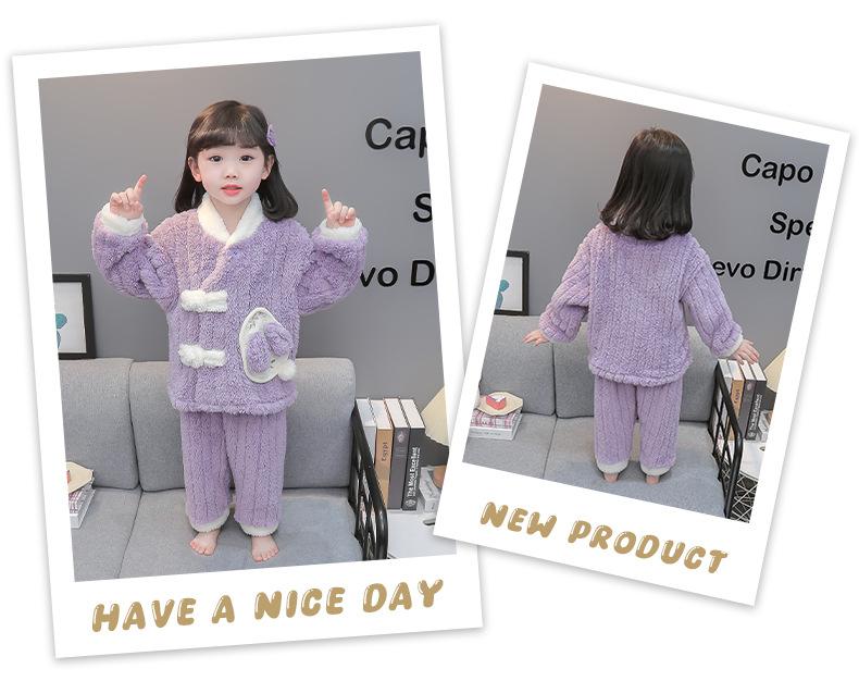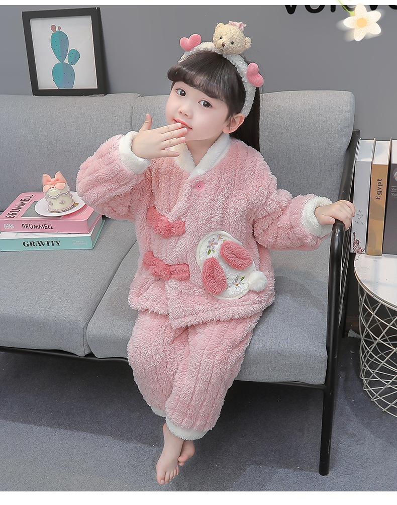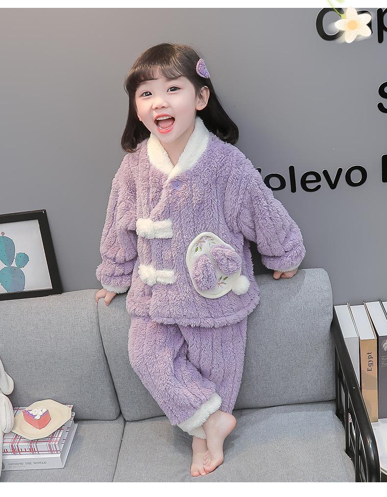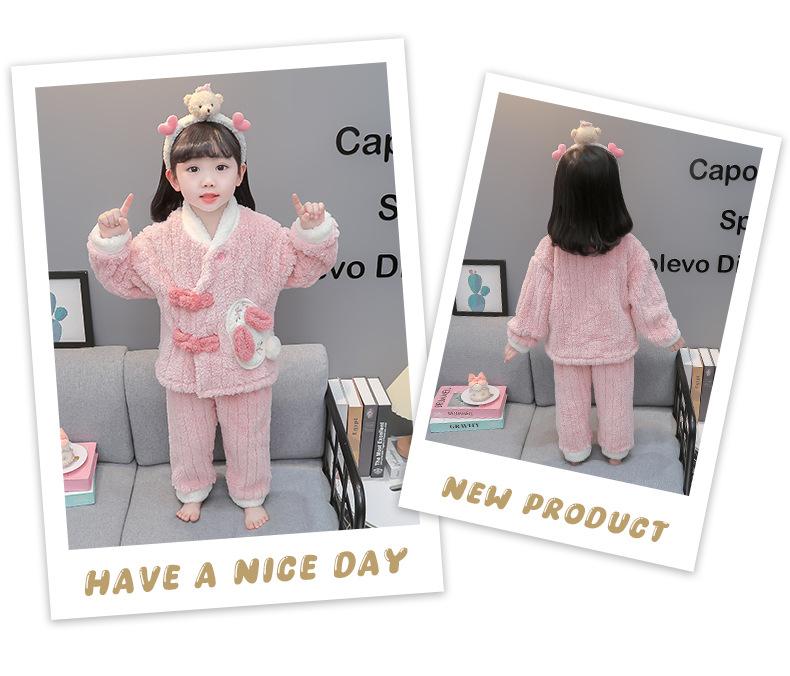 Pijama para niña Otoño Invierno 2025 Nuevo Bebé Franela Gruesa Manga Larga Niños Vellón Coral Conjunto Ropa de Dormir