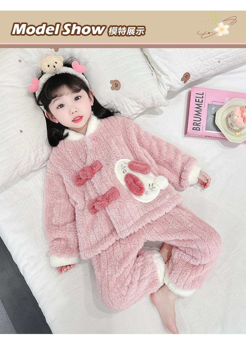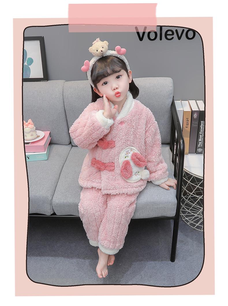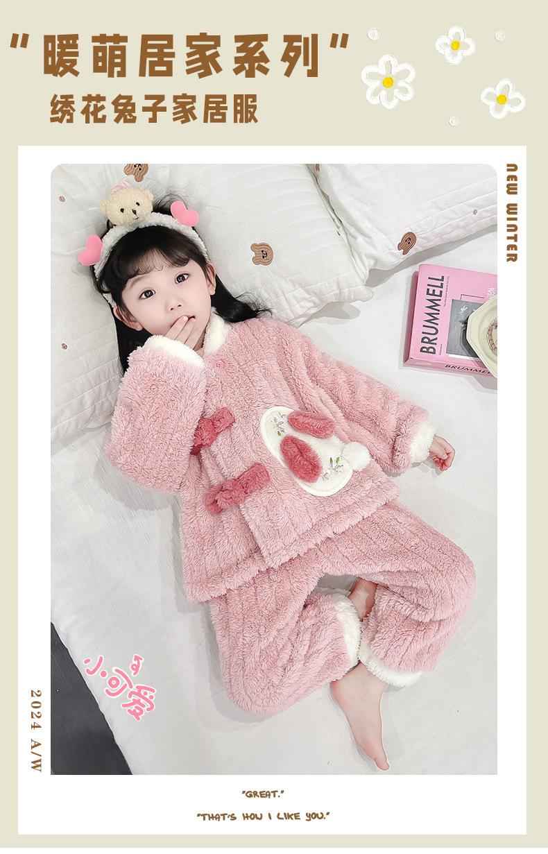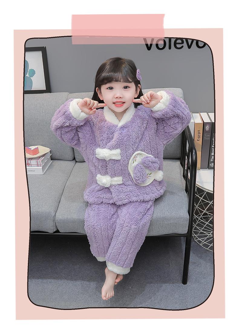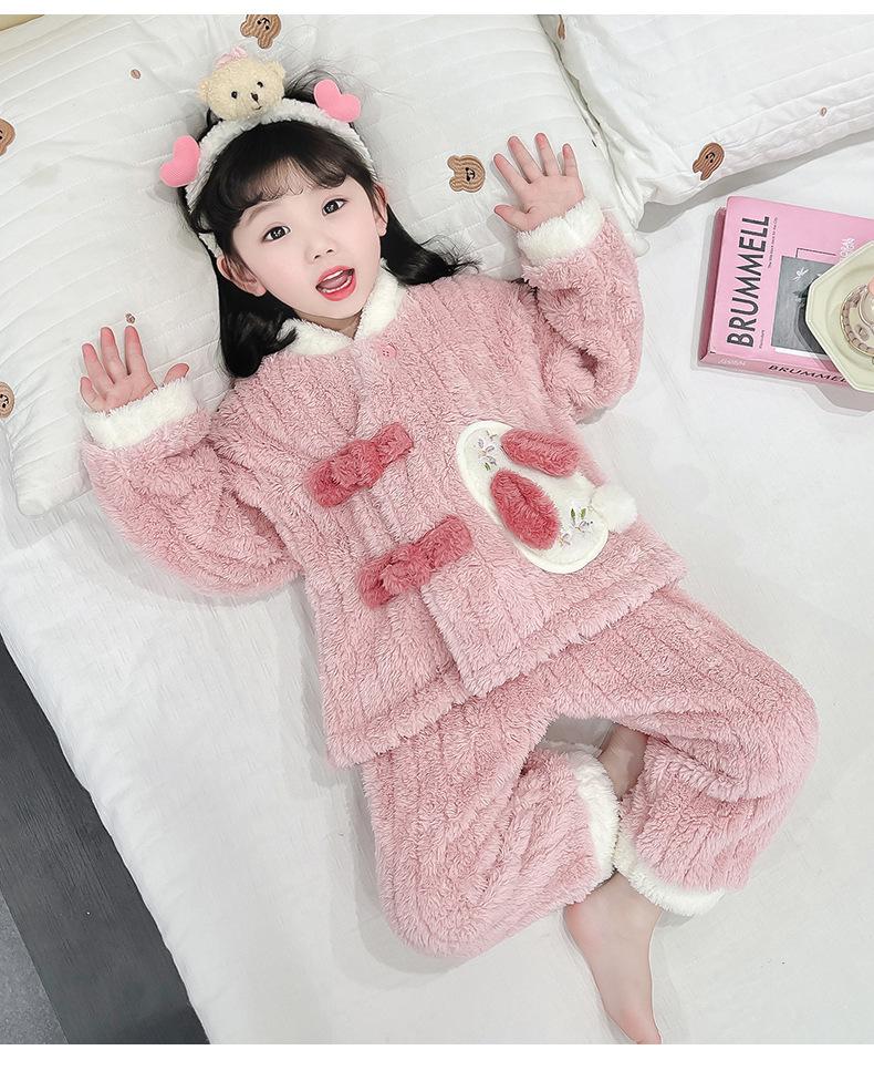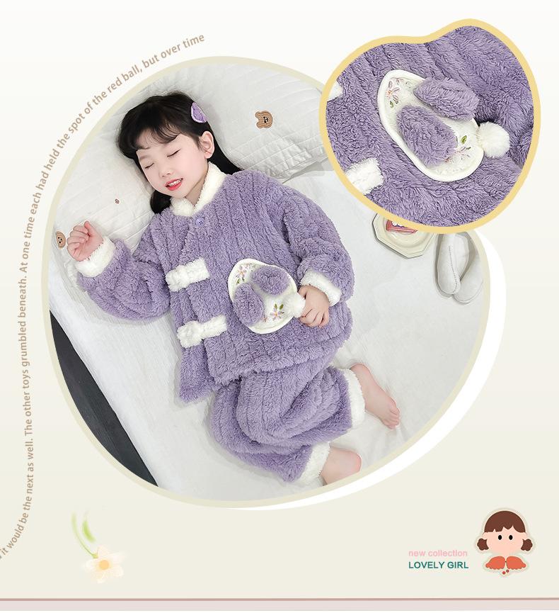 Pijama para niña Otoño Invierno 2025 Nuevo Bebé Franela Gruesa Manga Larga Niños Vellón Coral Conjunto Ropa de Dormir