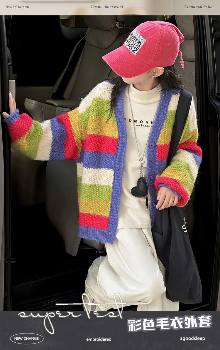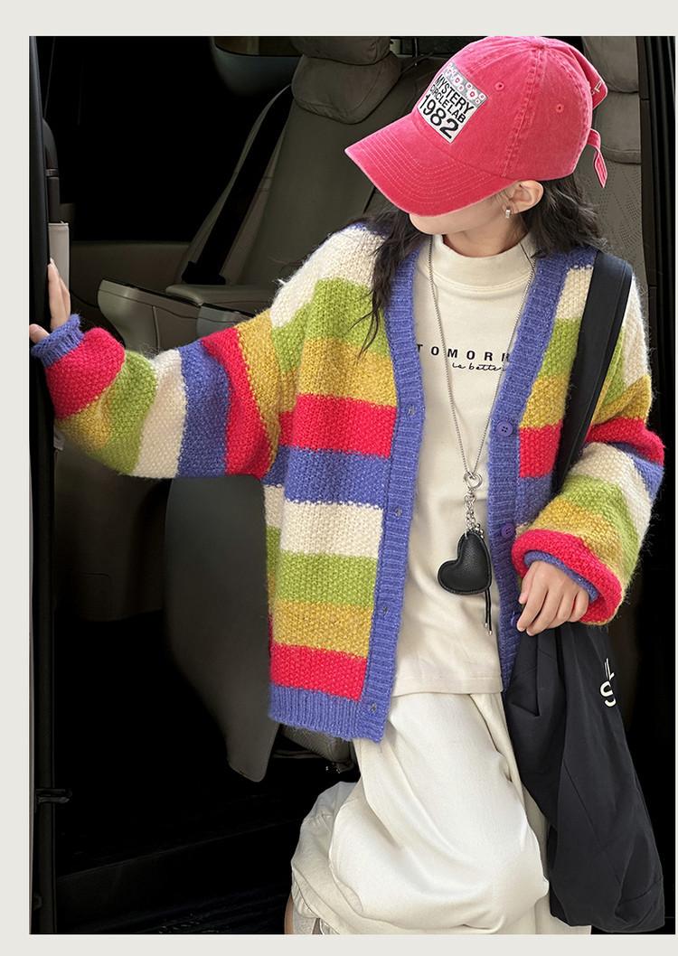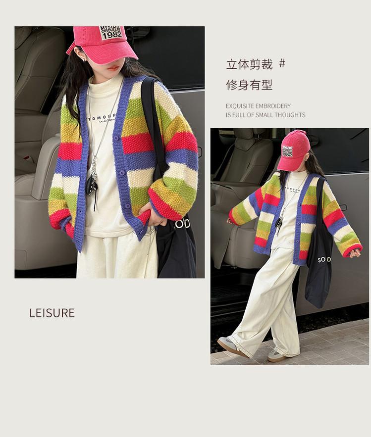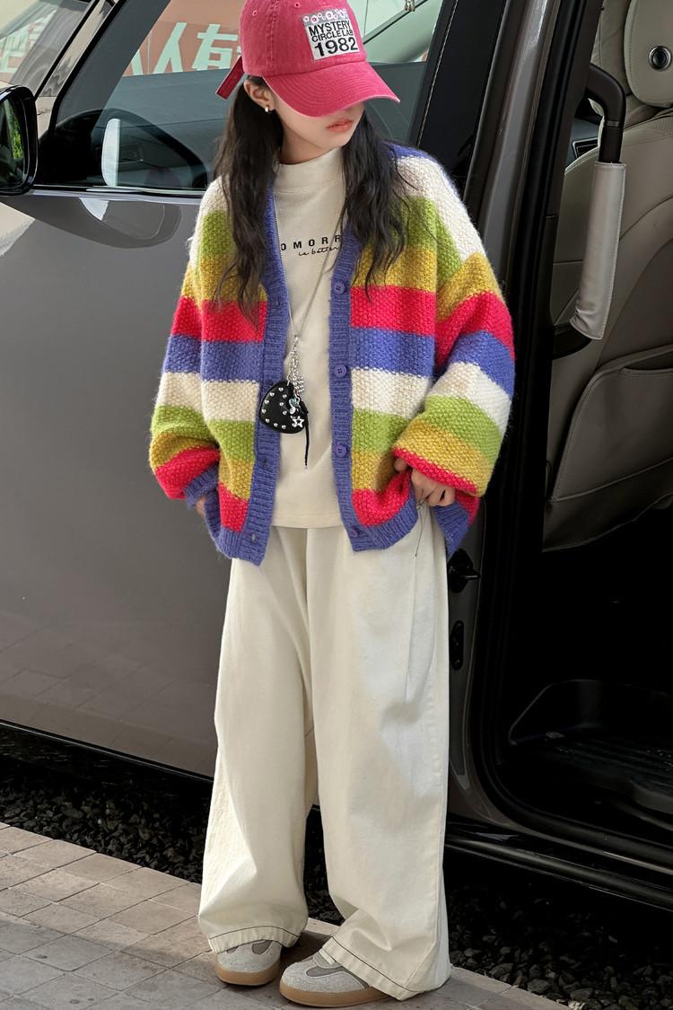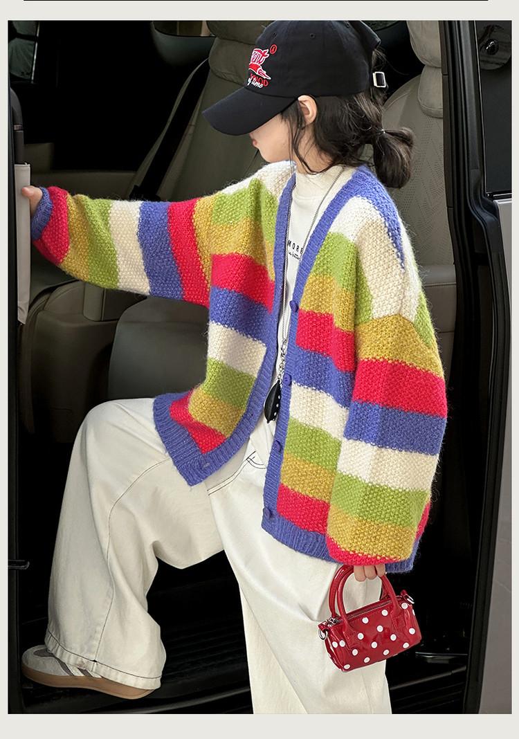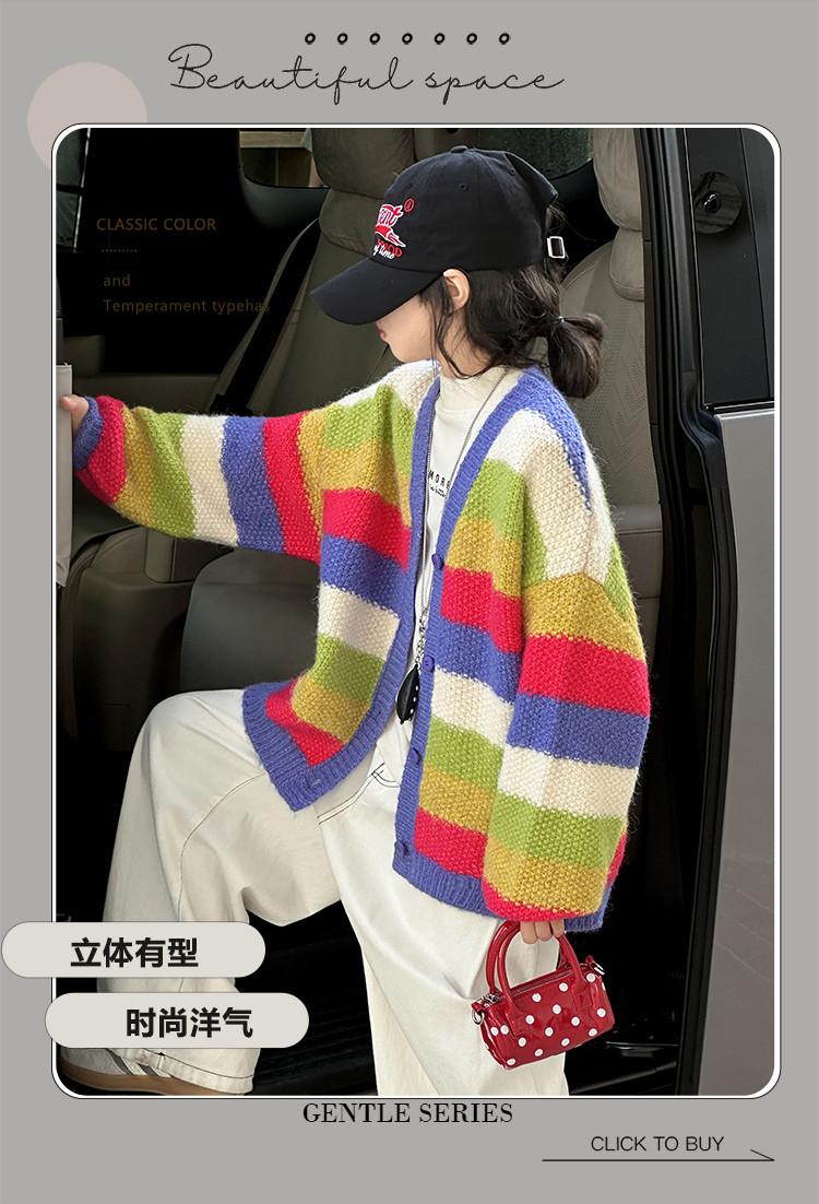 Cárdigan de Otoño e Invierno para Niñas 2025 Nuevo Suéter de Punto Rayado de Color Dulce Estilo Coreano Casual a la Moda Marea