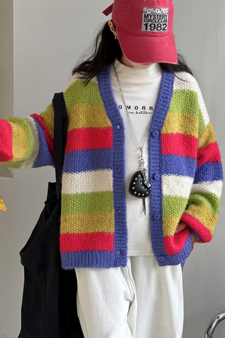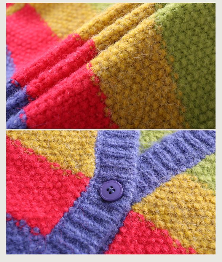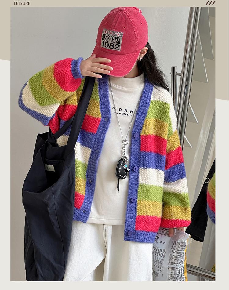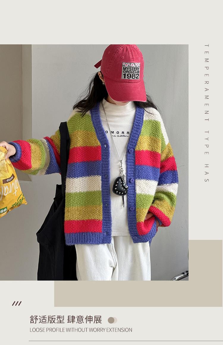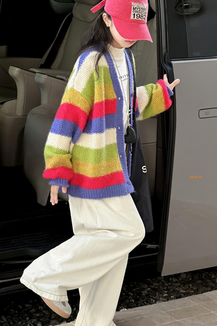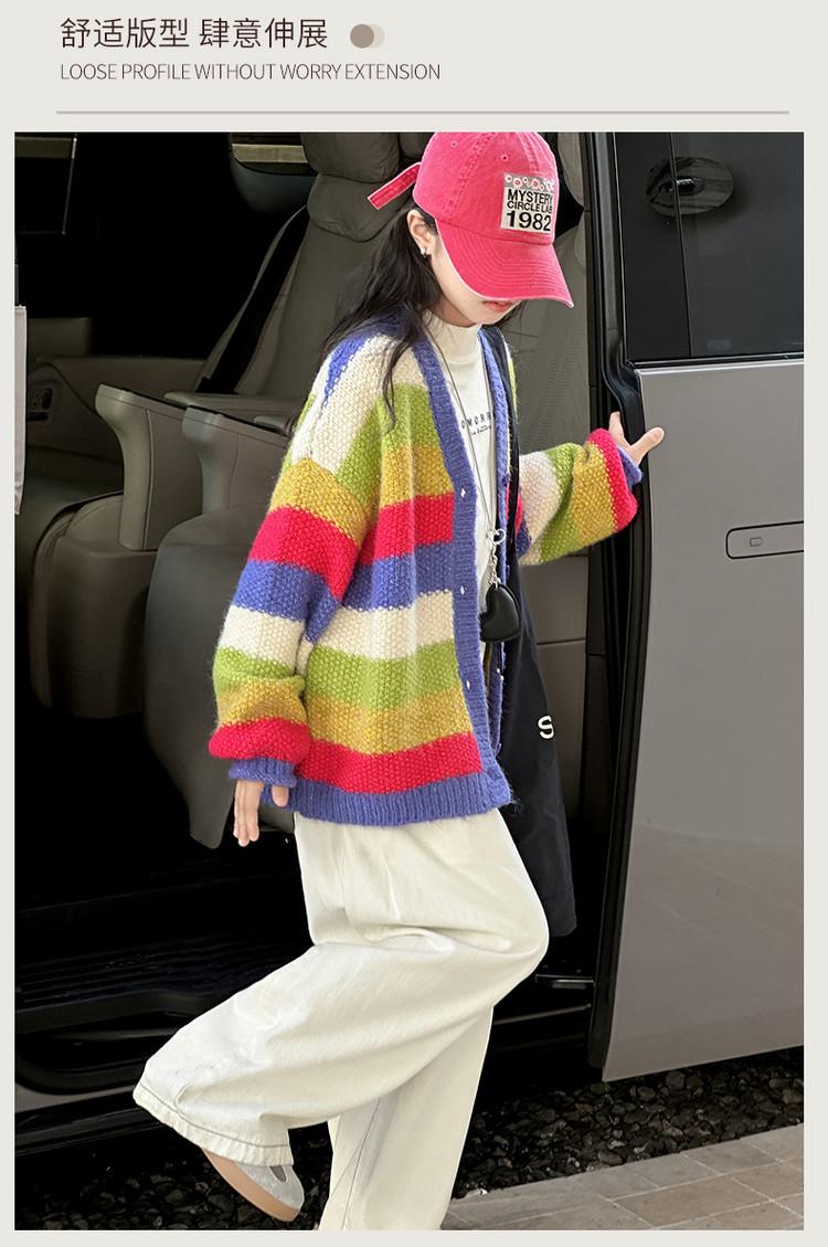 Cárdigan de Otoño e Invierno para Niñas 2025 Nuevo Suéter de Punto Rayado de Color Dulce Estilo Coreano Casual a la Moda Marea
