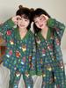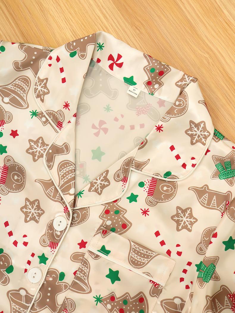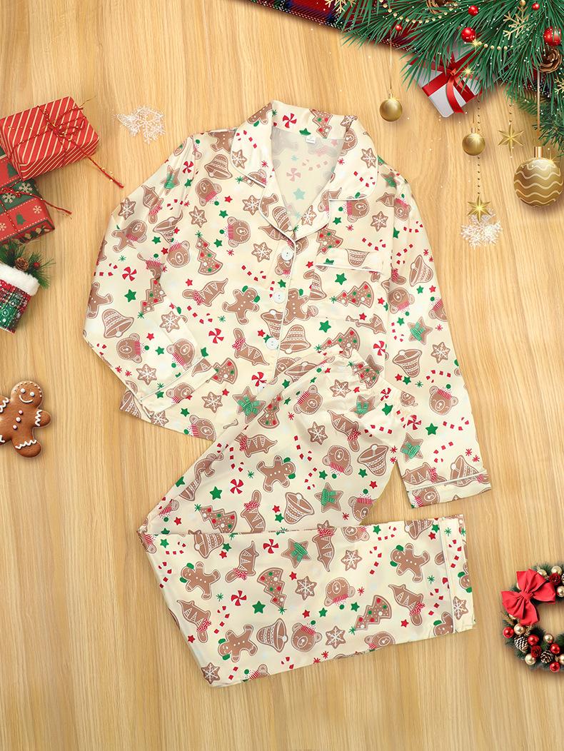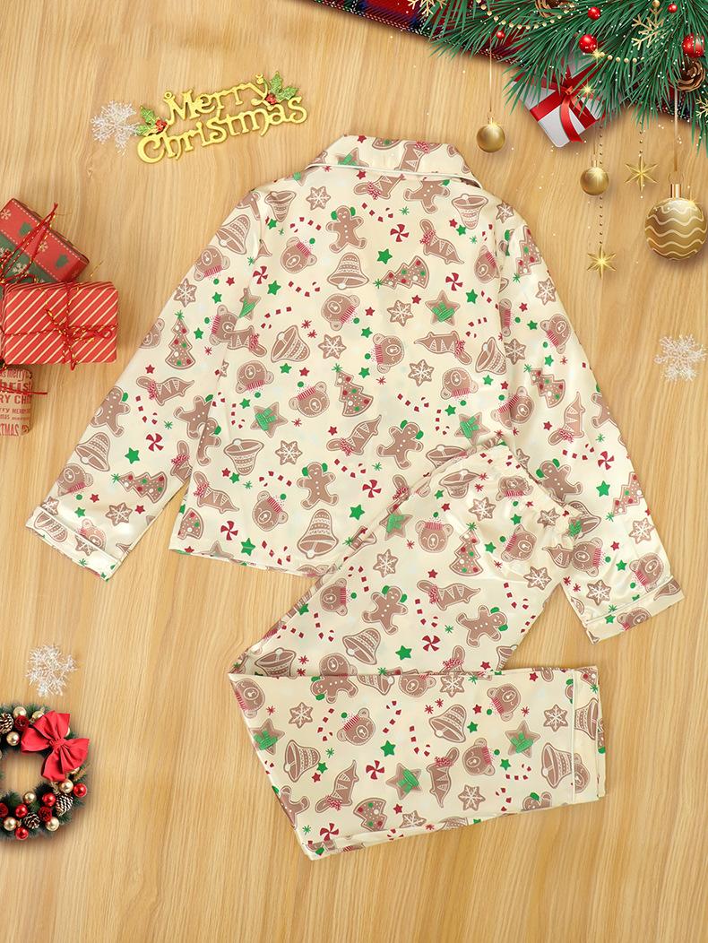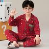 Conjunto de Cárdigan para el Hogar de Otoño Invierno Navidad para Niños con Estampado de Seda Sintética Cuello Vuelto Pijama de Manga Larga para Niños y Niñas Niños Medianos y Grandes