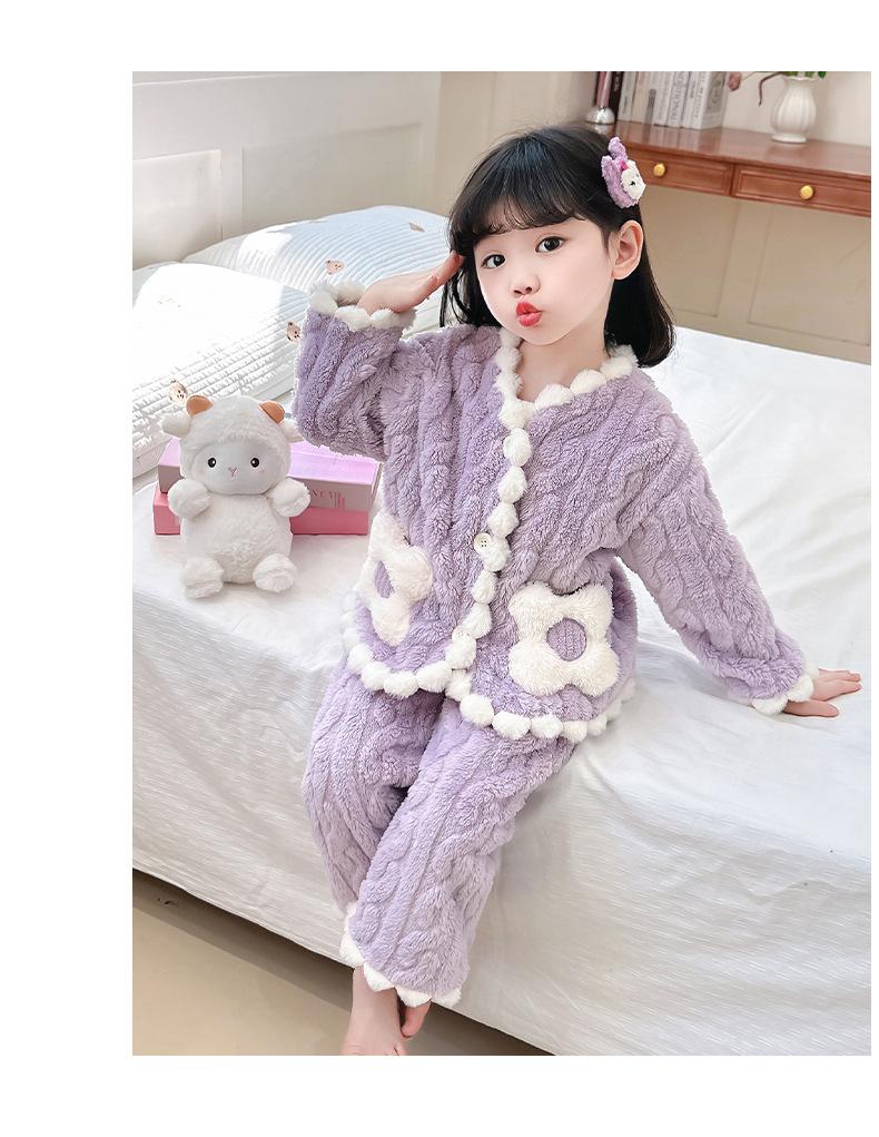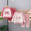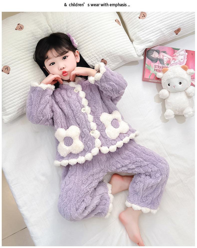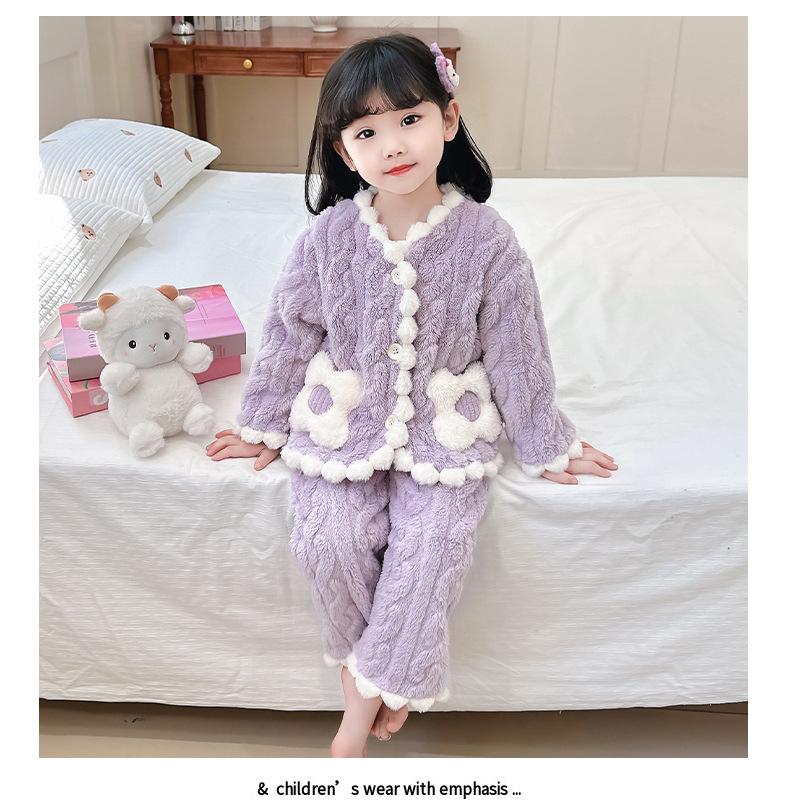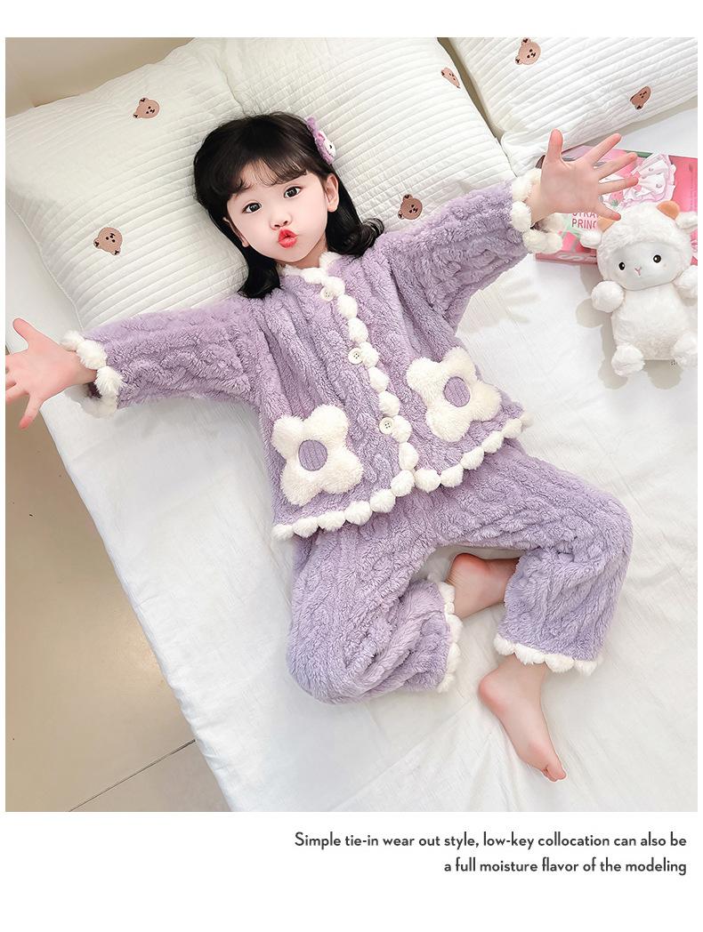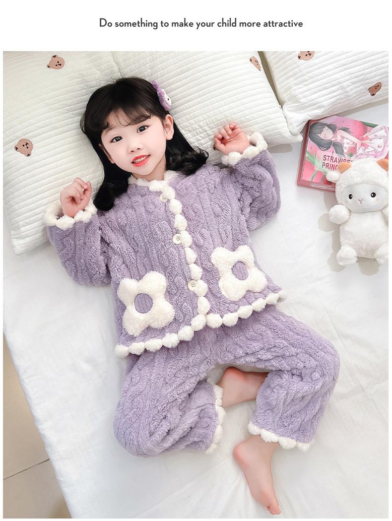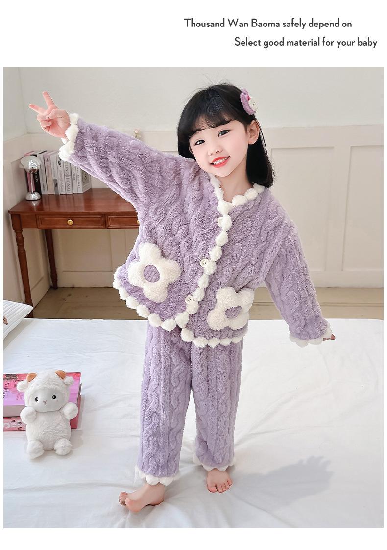 Pijama de Forro Polar para Niñas Estilo Otoño e Invierno 2025 Nuevo Bebé Franela Gruesa Invierno Ropa de Casa de Forro Polar Coral para Niños