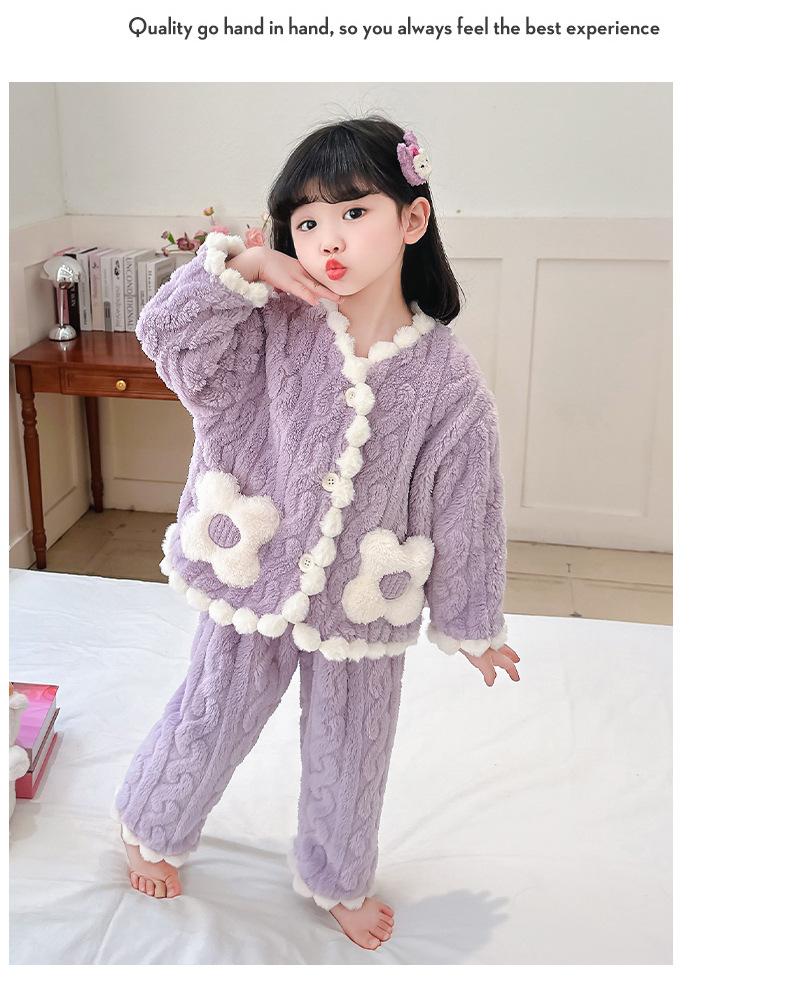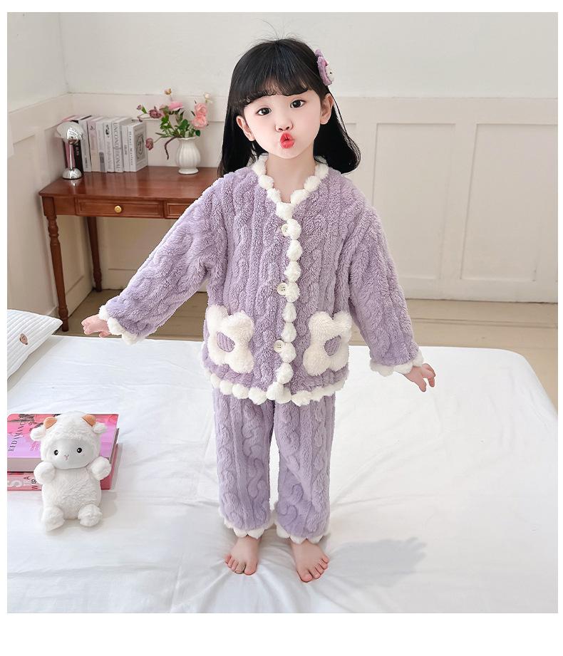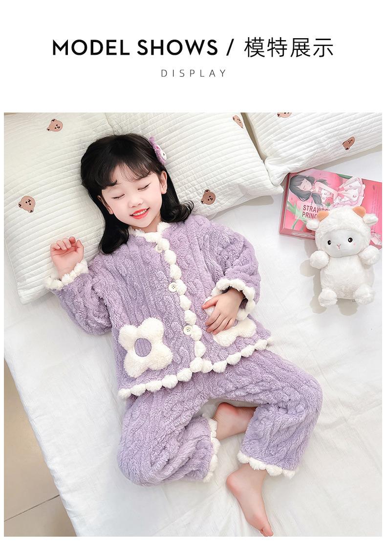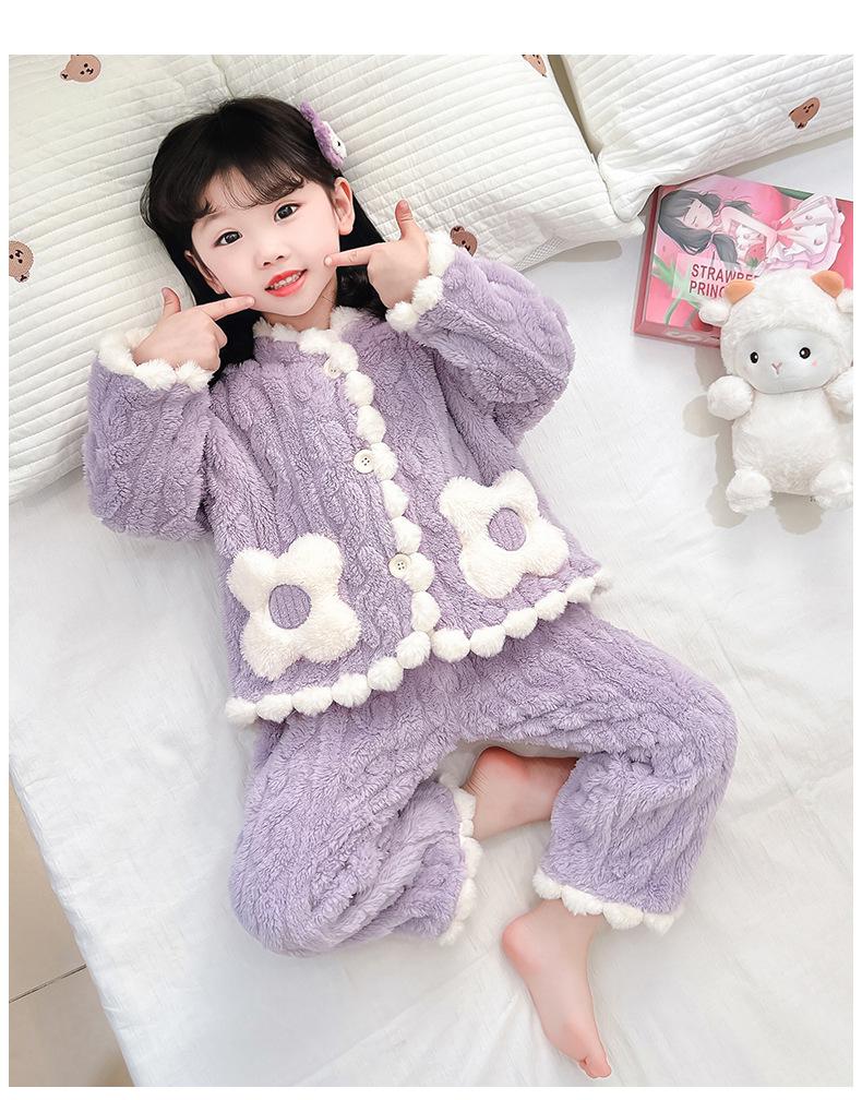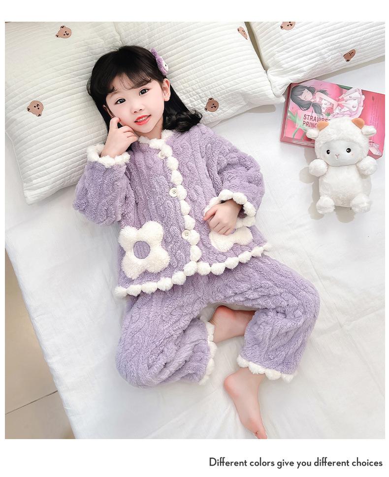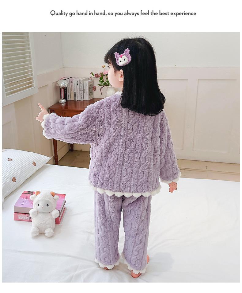 Pijama de Forro Polar para Niñas Estilo Otoño e Invierno 2025 Nuevo Bebé Franela Gruesa Invierno Ropa de Casa de Forro Polar Coral para Niños