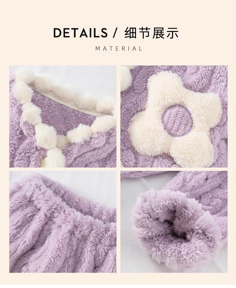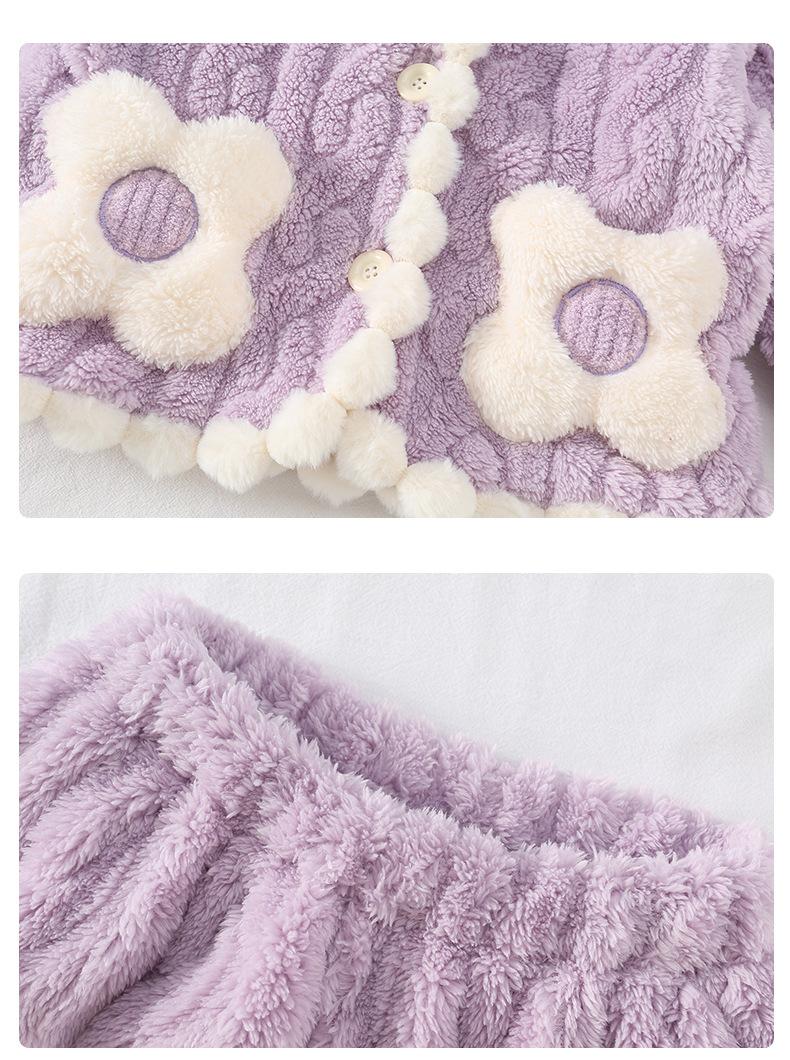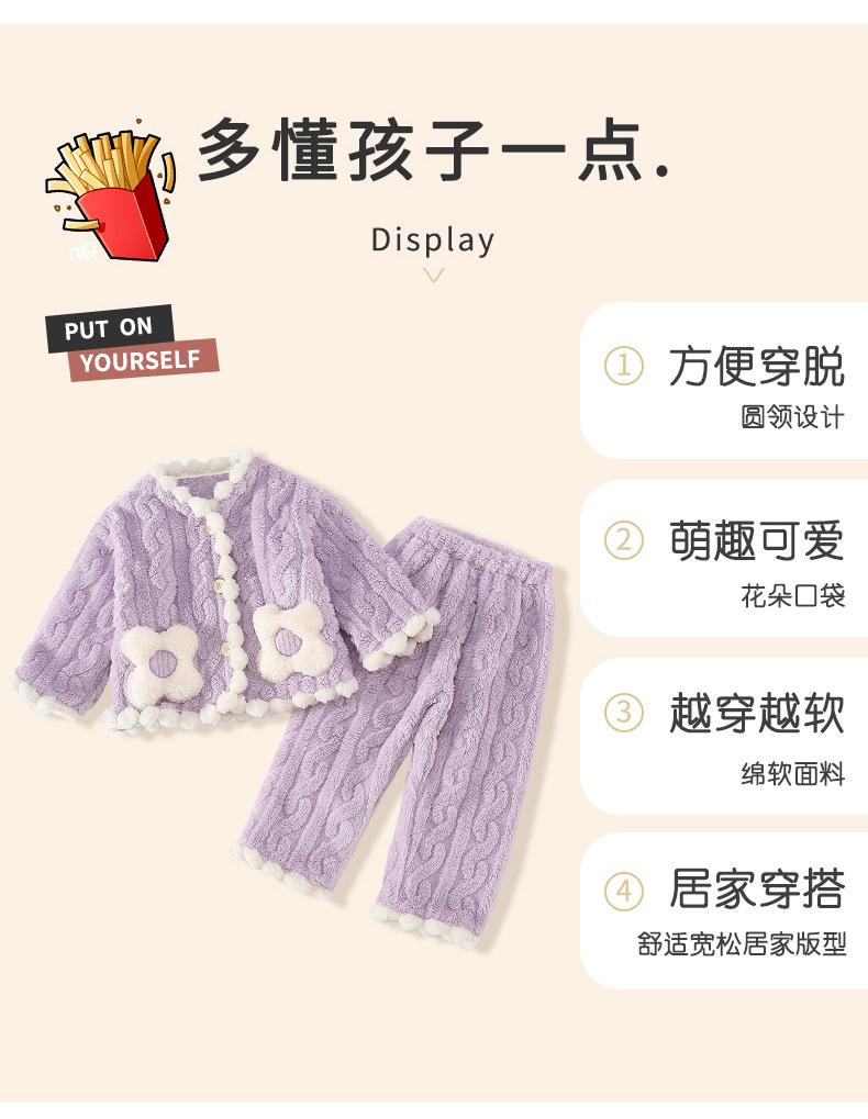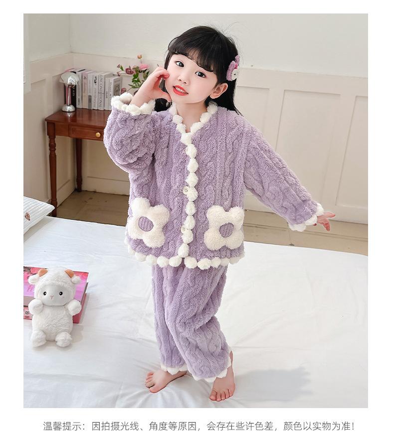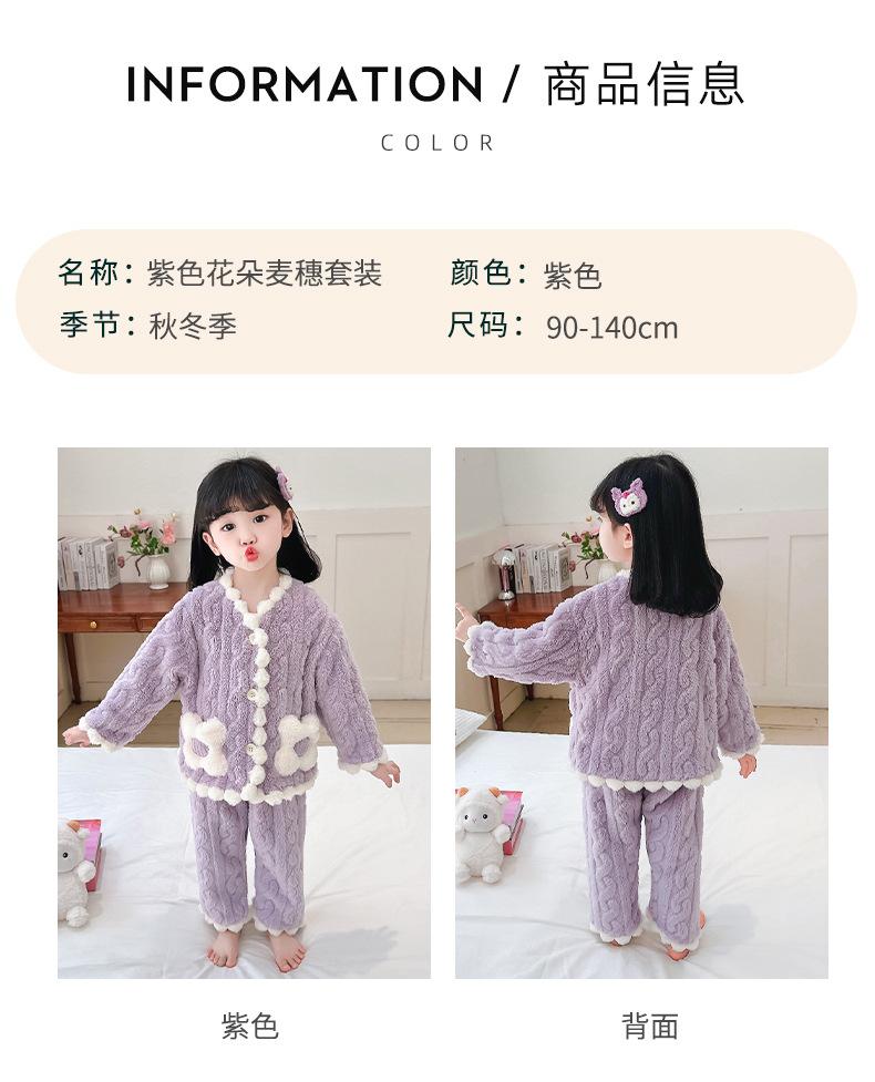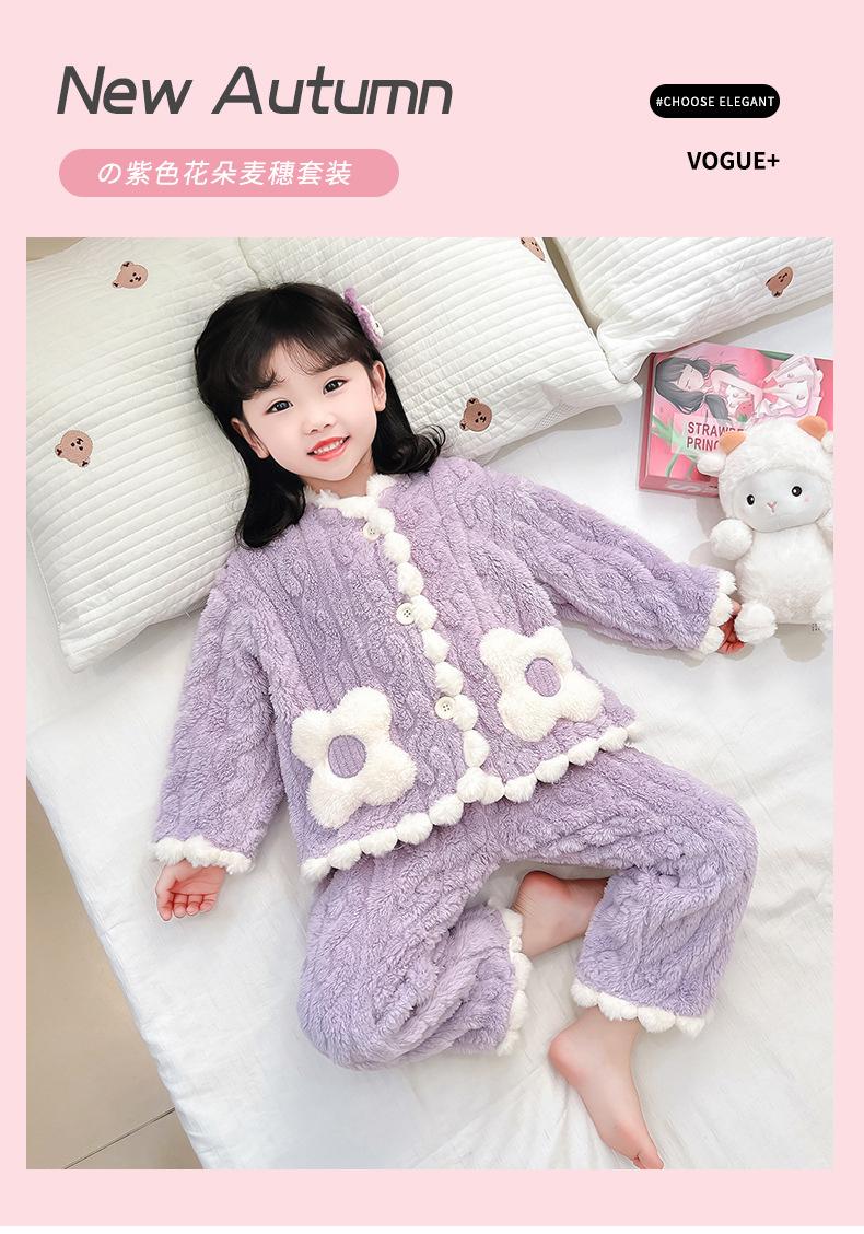 Pijama de Forro Polar para Niñas Estilo Otoño e Invierno 2025 Nuevo Bebé Franela Gruesa Invierno Ropa de Casa de Forro Polar Coral para Niños