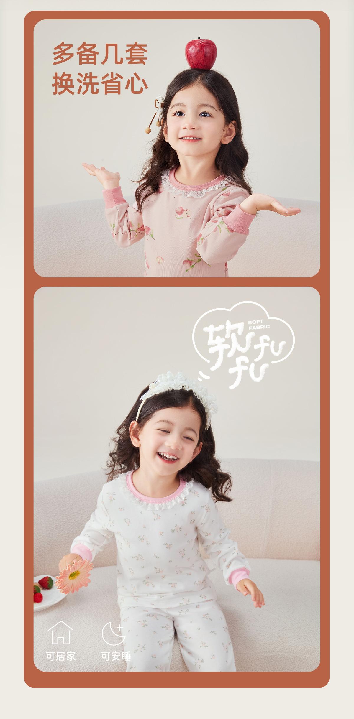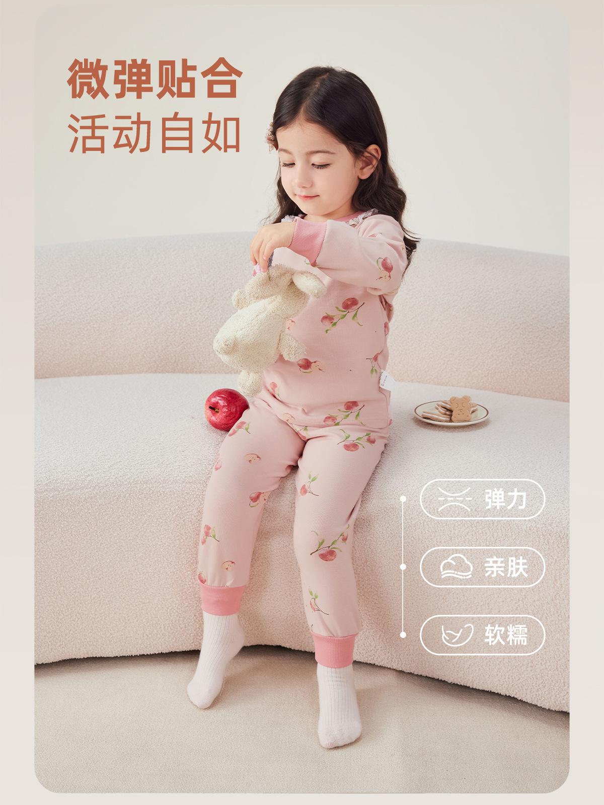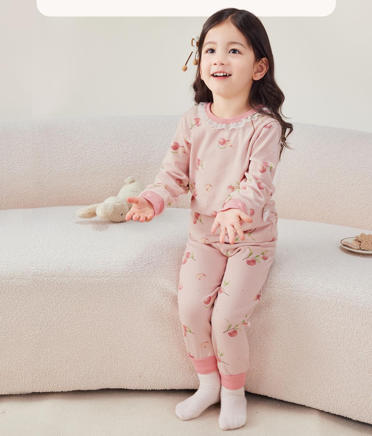 [7A Antibacterial] Pijama para Niñas Otoño e Invierno Set de Ropa Interior Capa Base Ropa de Otoño para Niña Ropa para Niños Ropa de Casa para Bebé