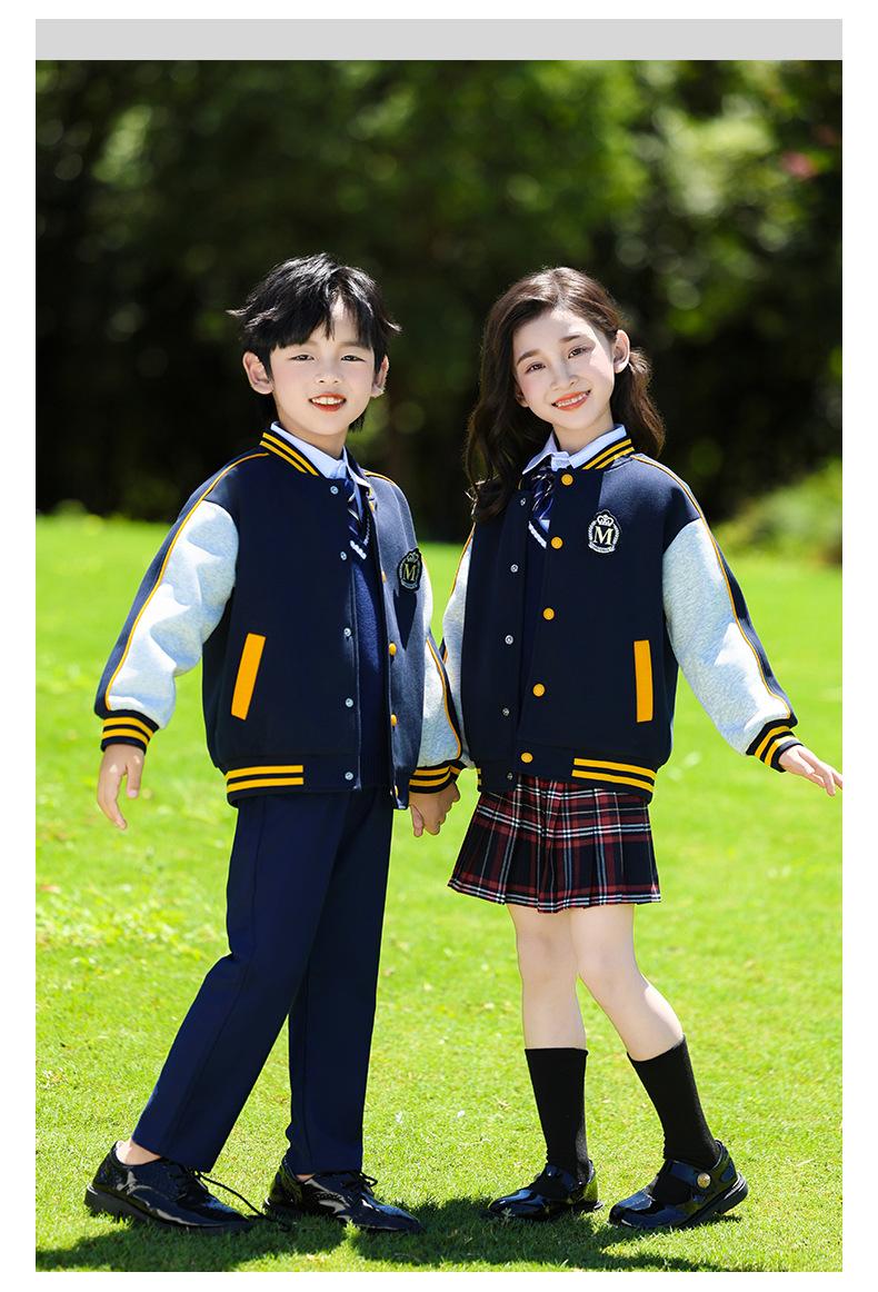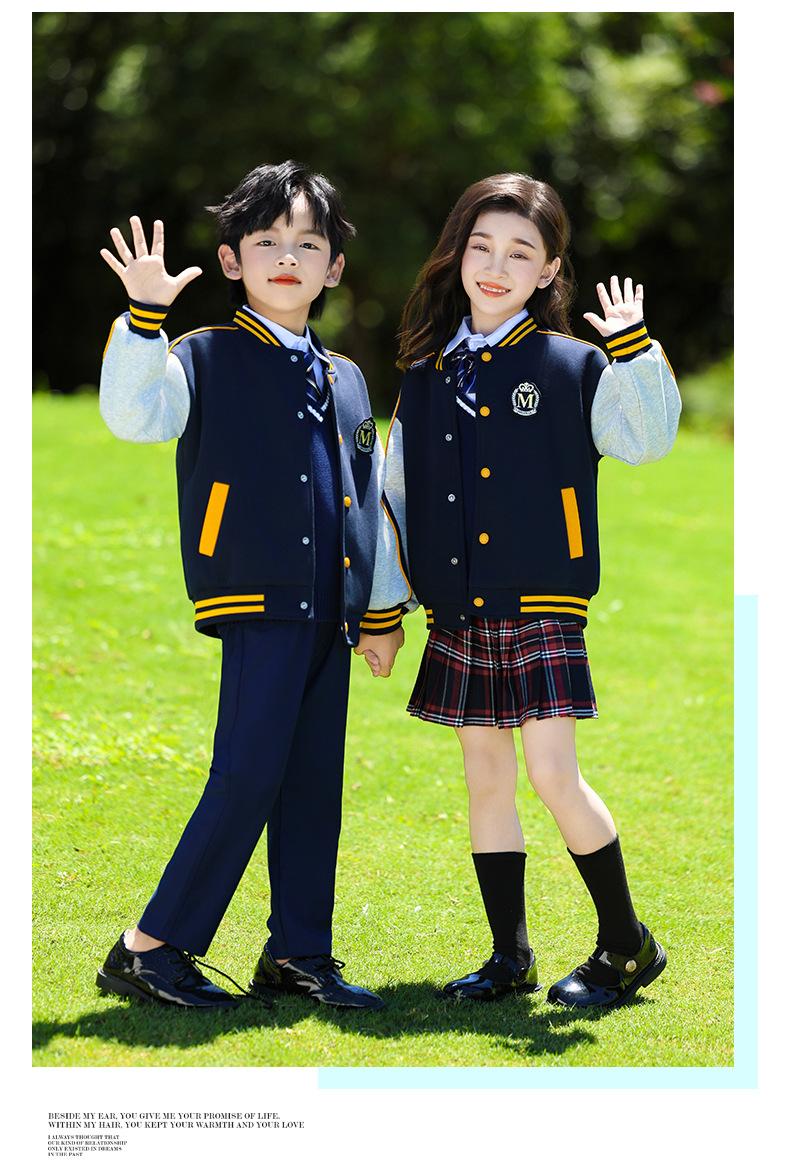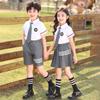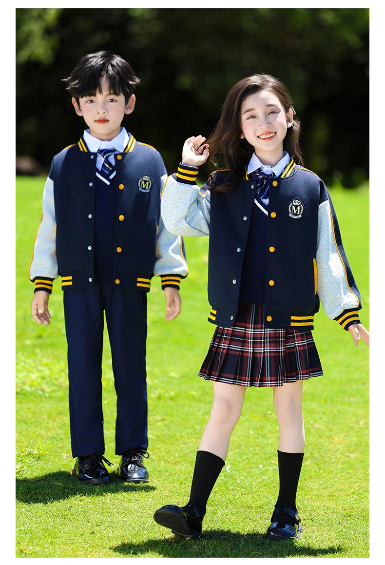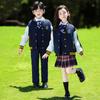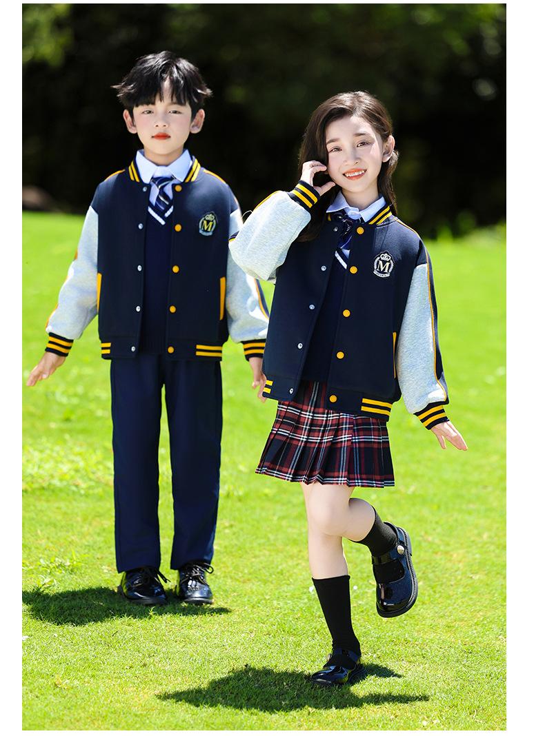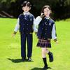 Uniforme de Clase Infantil Estilo Británico Verano Manga Corta Conjunto Uniforme de Jardín de Niños Uniforme de Estudiante de Primaria y Secundaria Uniforme Escolar Primavera y Otoño Conjunto de Tres Piezas para Encuentro Deportivo