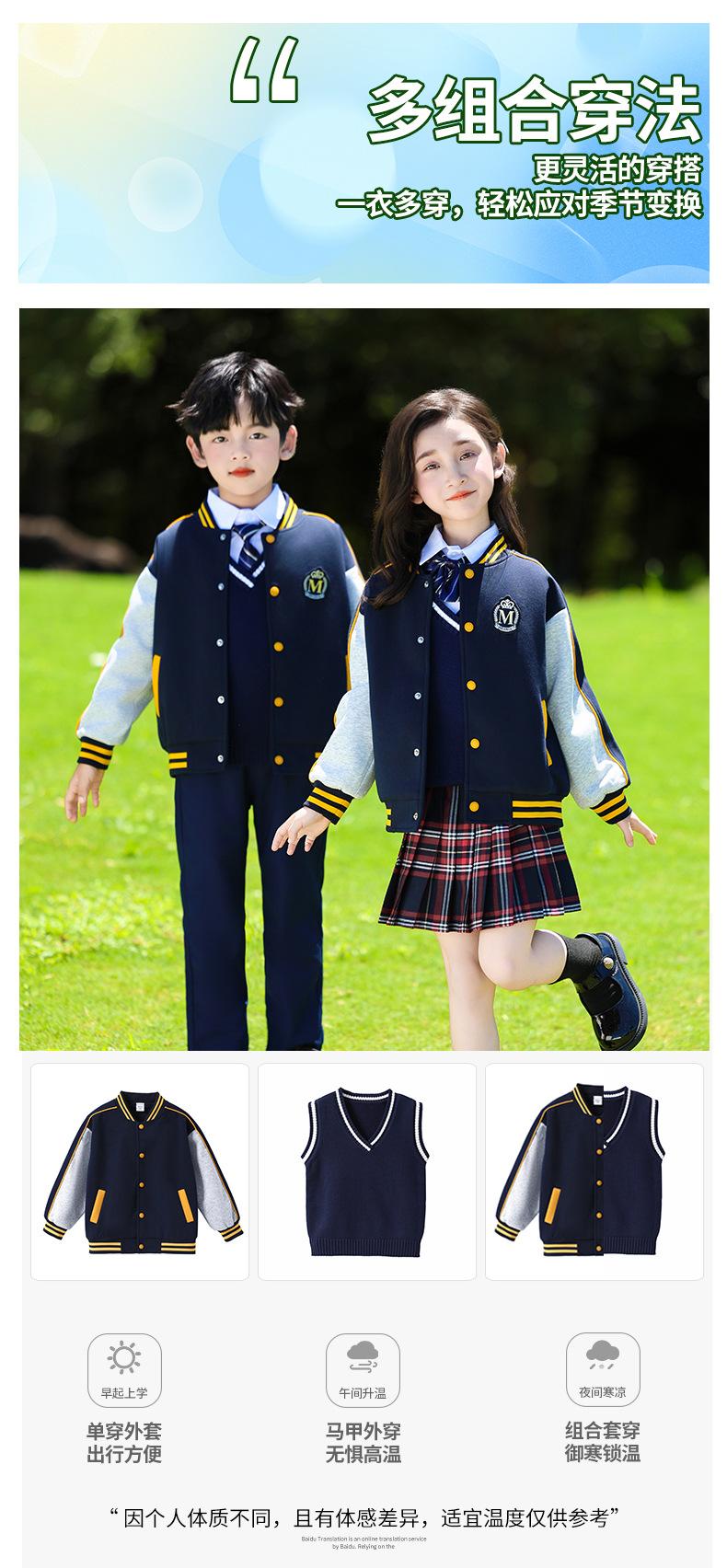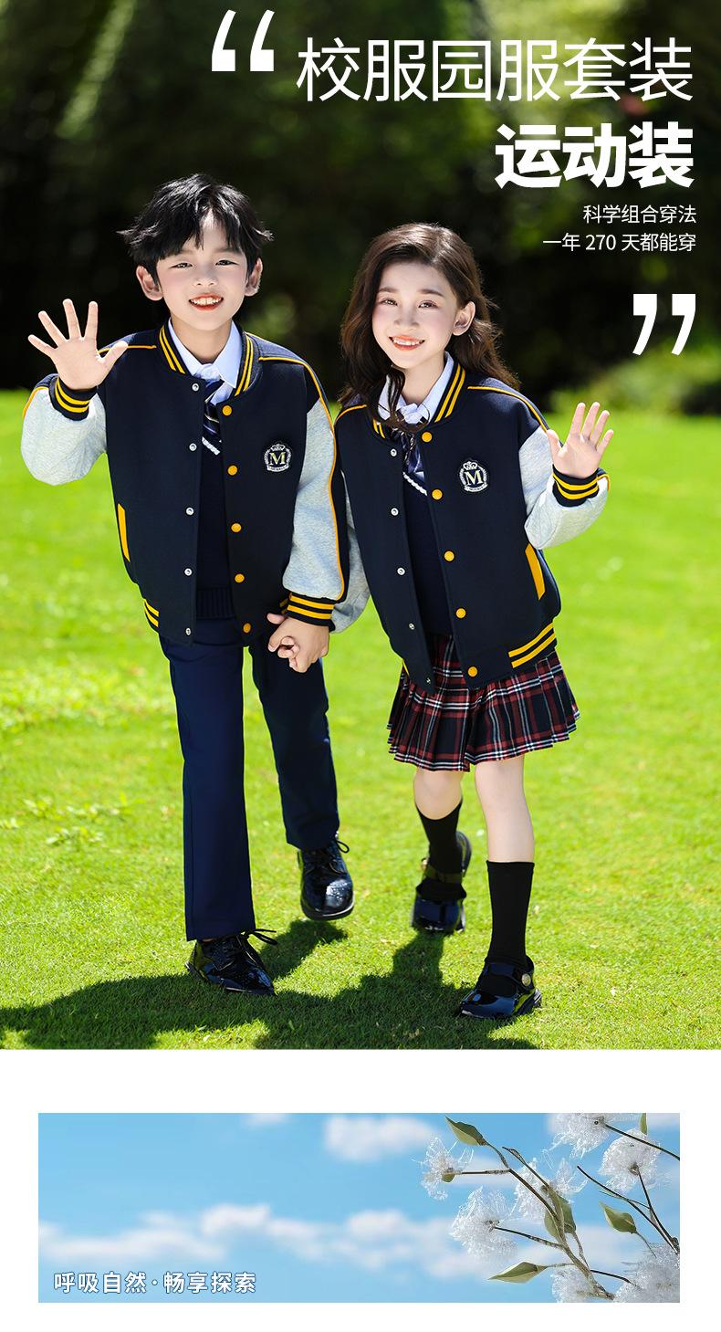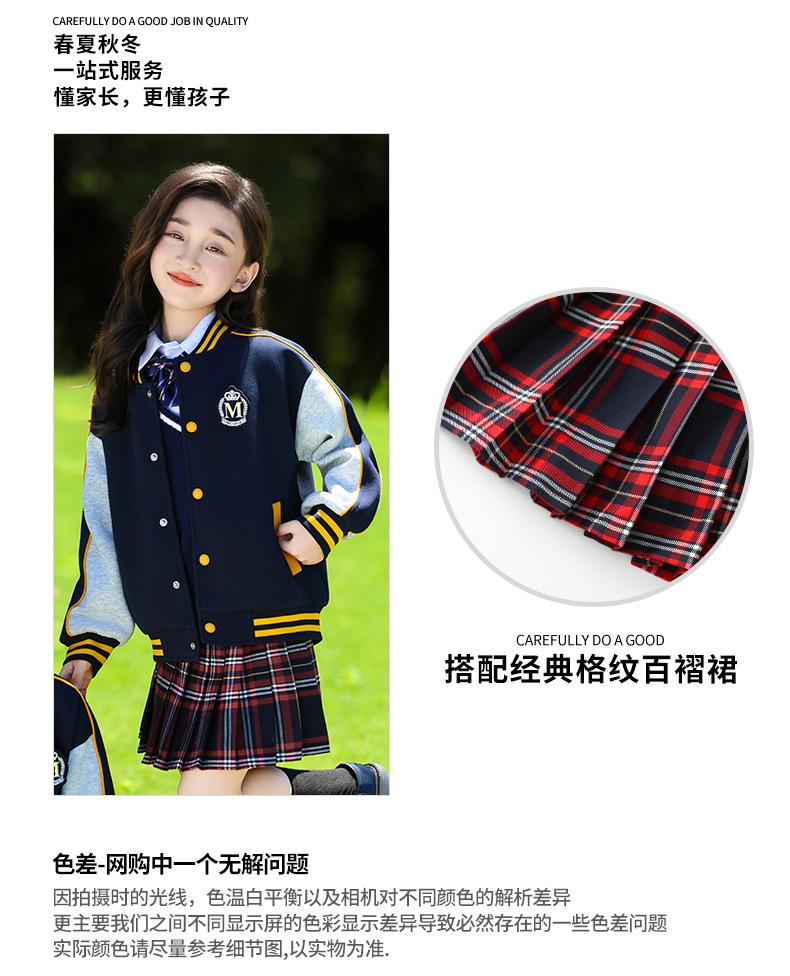 Uniforme de Clase Infantil Estilo Británico Verano Manga Corta Conjunto Uniforme de Jardín de Niños Uniforme de Estudiante de Primaria y Secundaria Uniforme Escolar Primavera y Otoño Conjunto de Tres Piezas para Encuentro Deportivo