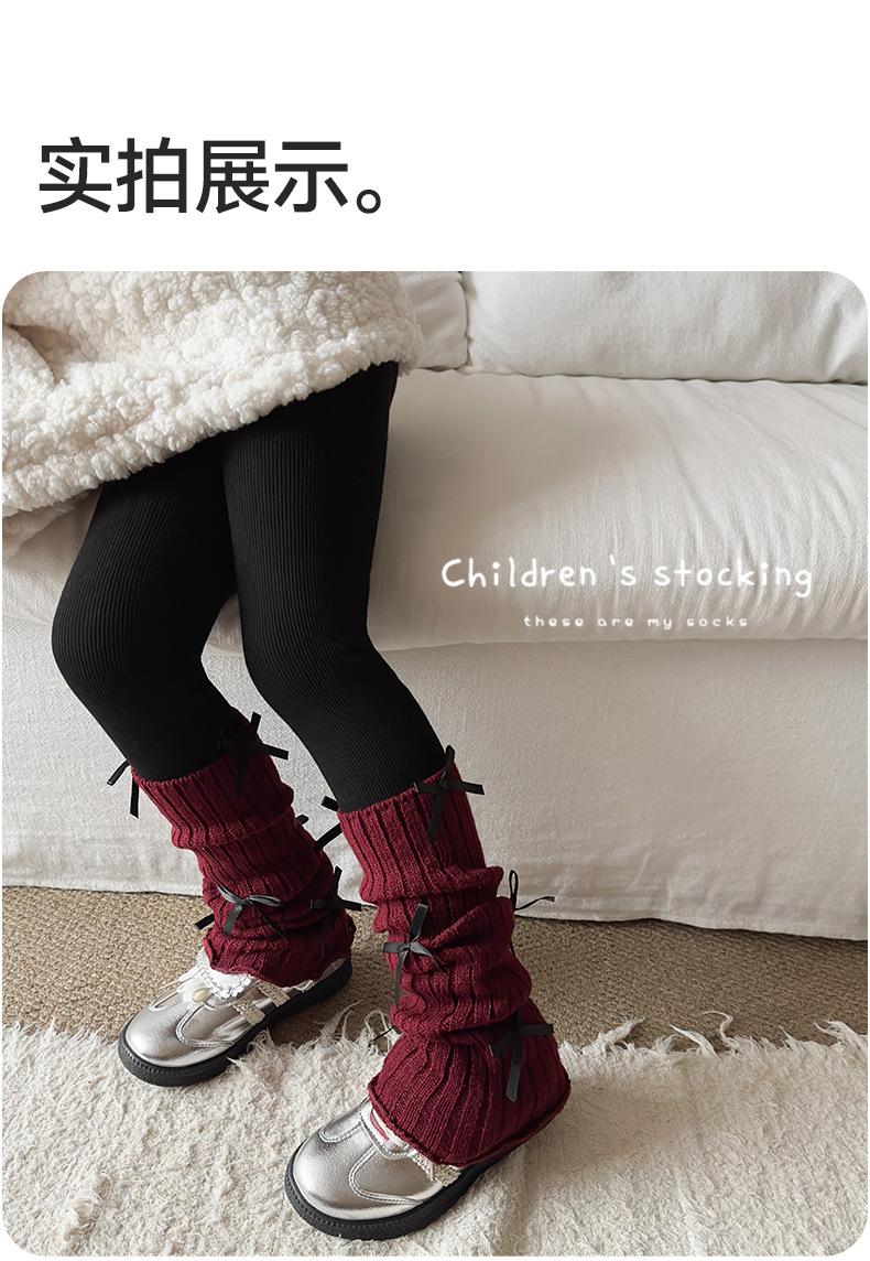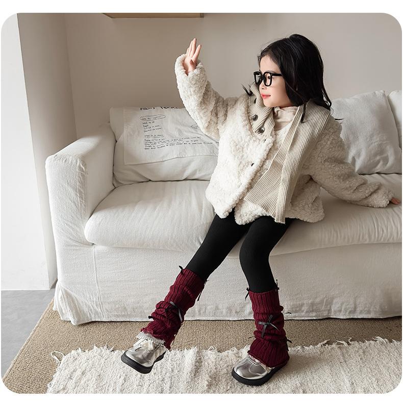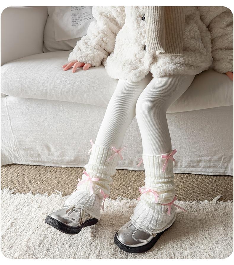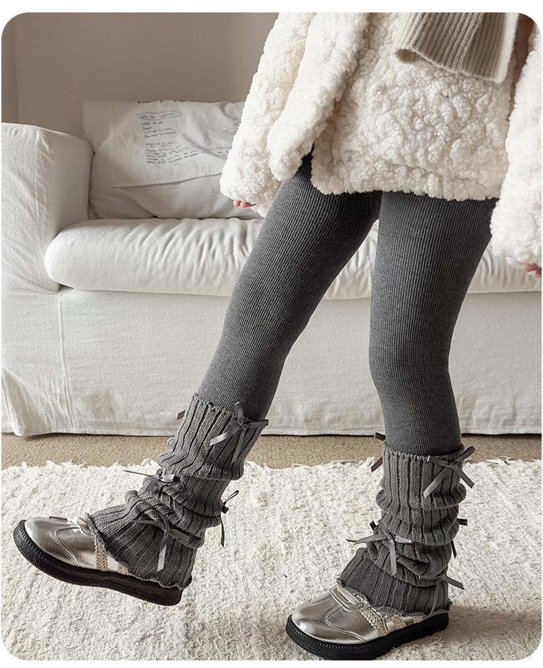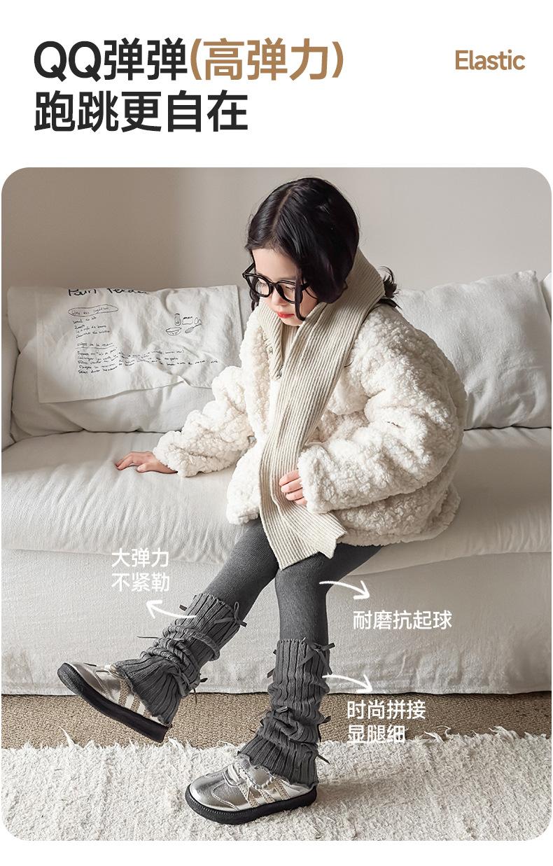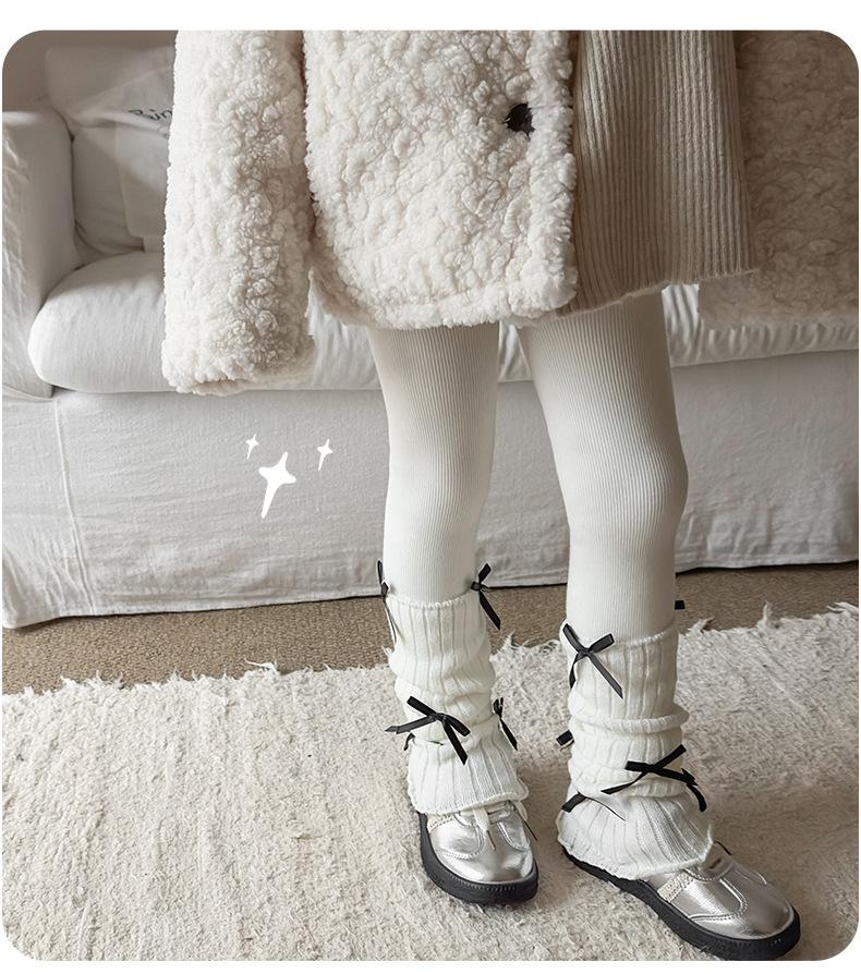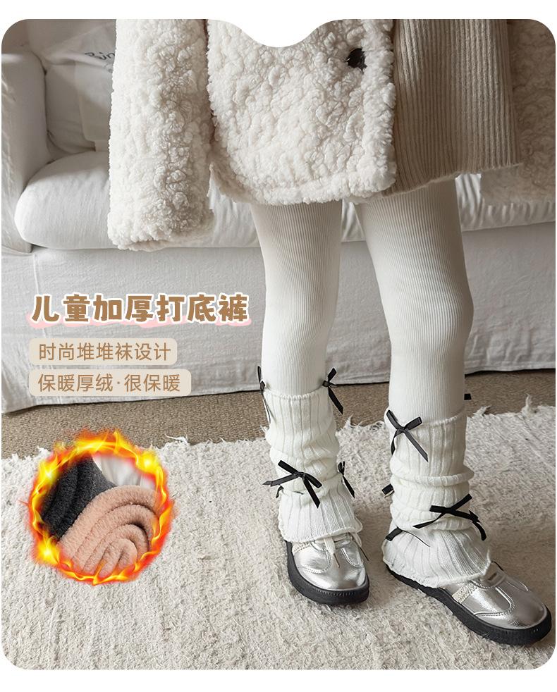 Leggings Cálidos para Niñas Invierno Gruesos y Forrados con Vellón Estilo Coreano Manga Calcetín con Lazo Empalmado Grueso Ropa Exterior Pantalones Largos para Niños