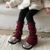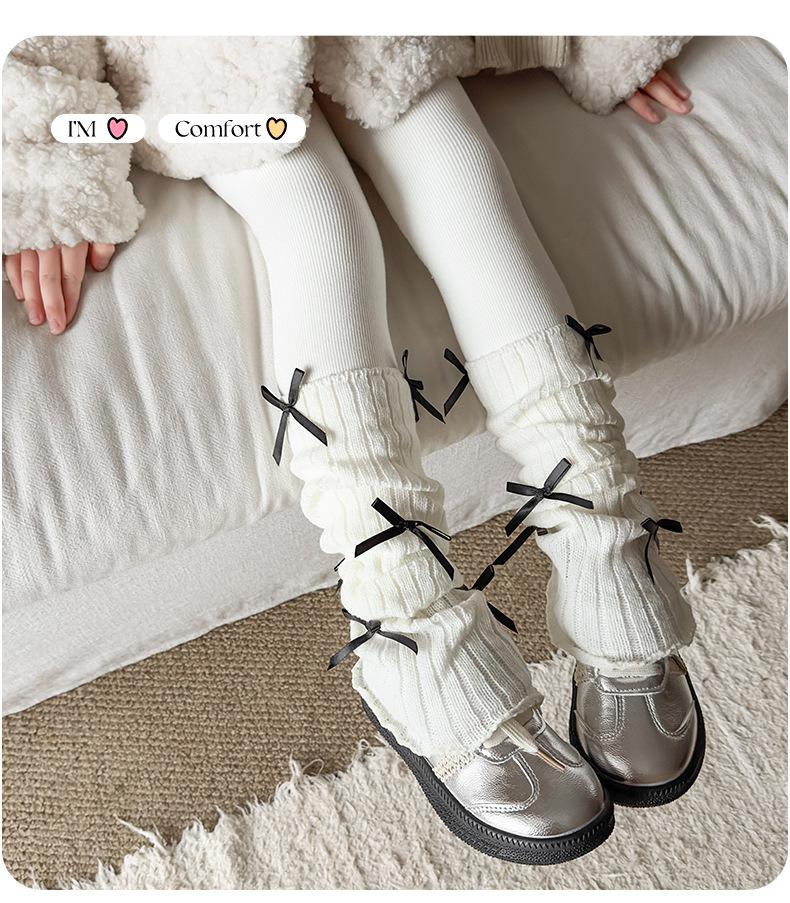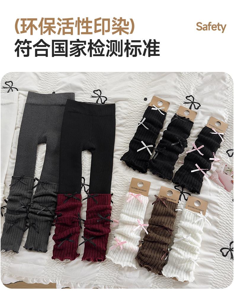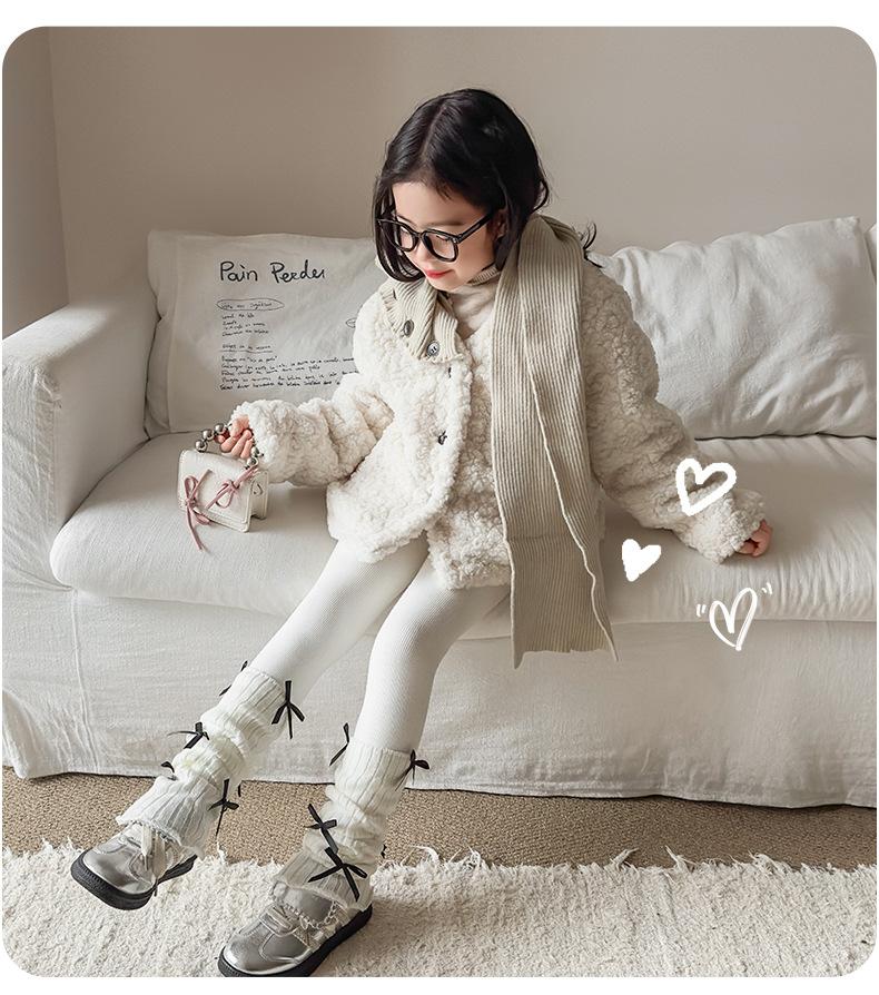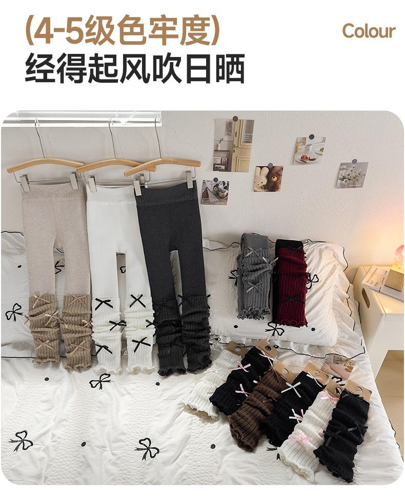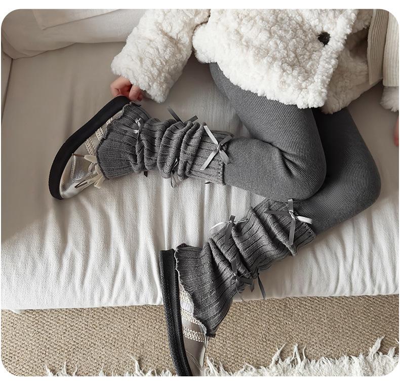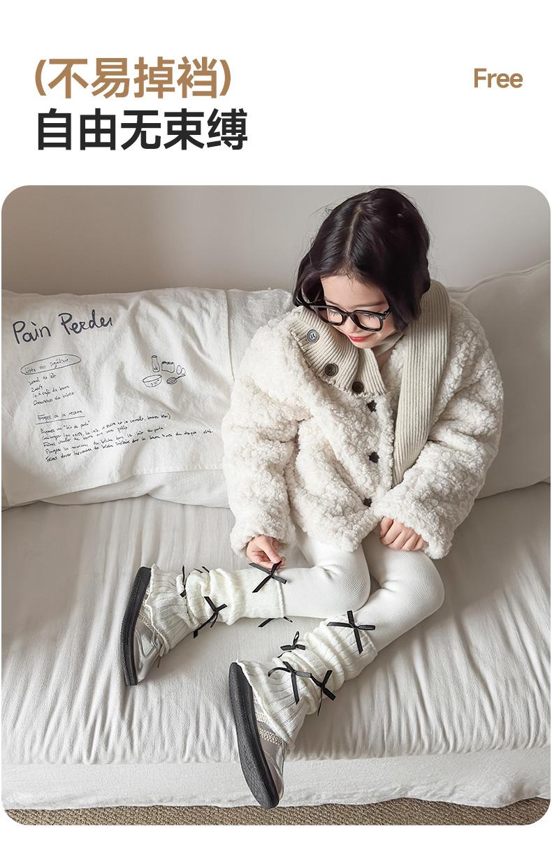 Leggings Cálidos para Niñas Invierno Gruesos y Forrados con Vellón Estilo Coreano Manga Calcetín con Lazo Empalmado Grueso Ropa Exterior Pantalones Largos para Niños