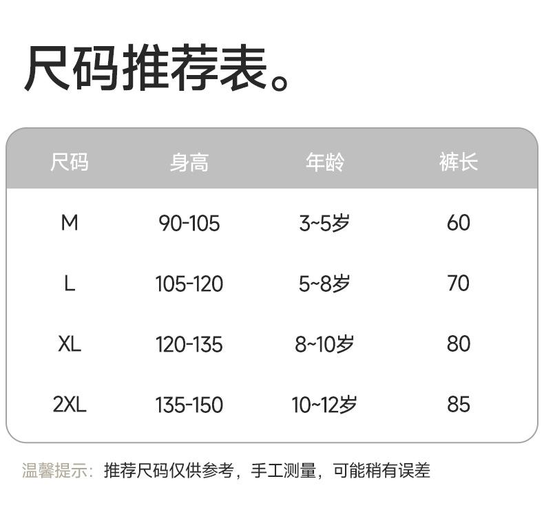 M suggested height 90-105, L suggested height 105-120, XL suggested height 120-135, XXL suggested height 135-150