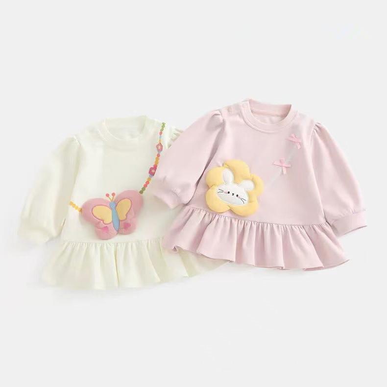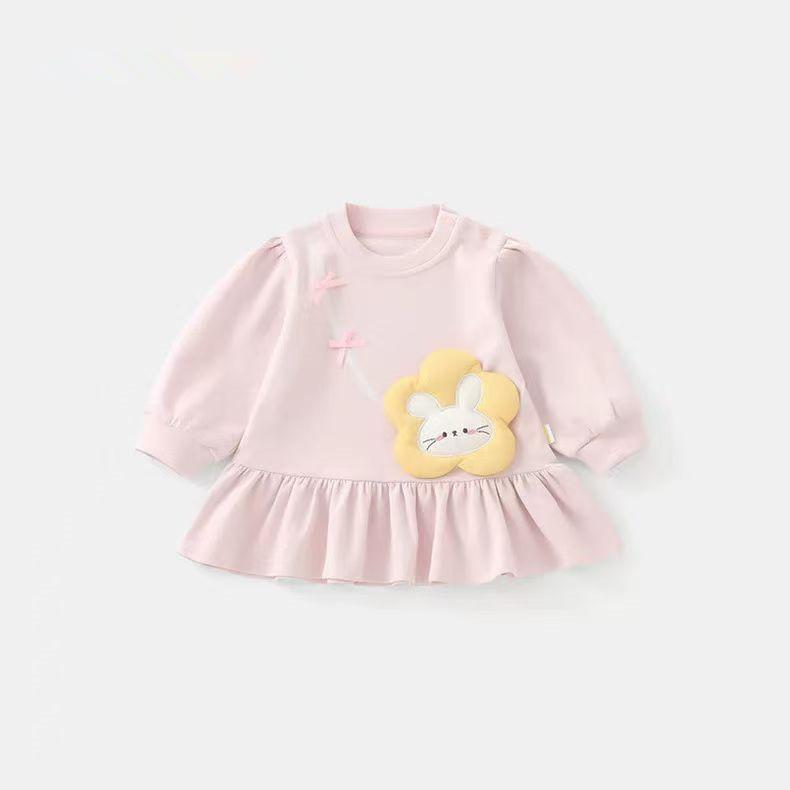 Sudadera de Primavera y Otoño para Niñas Moda Bebé Infantil Individual Moderna Estilo Coreano Lindo Vestido Midi de Dibujos Animados Tridimensional