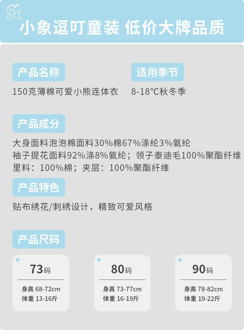 Lindo Osito Otoño e Invierno Ropa de Bebé Bebé Mameluco de Algodón de 150g Estilo Coreano Mono Infantil Sin Huesos Traje para Gatear Ropa para Niños