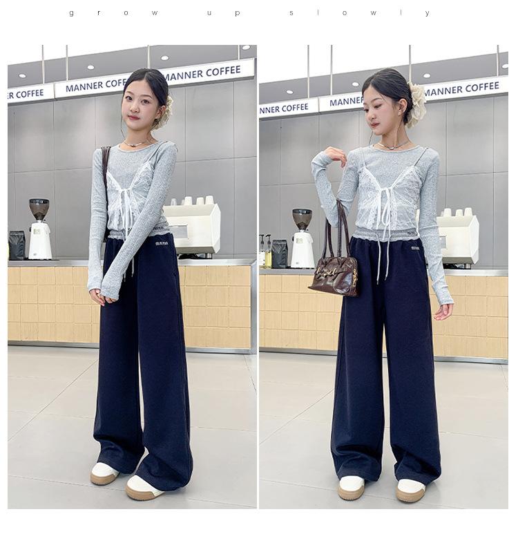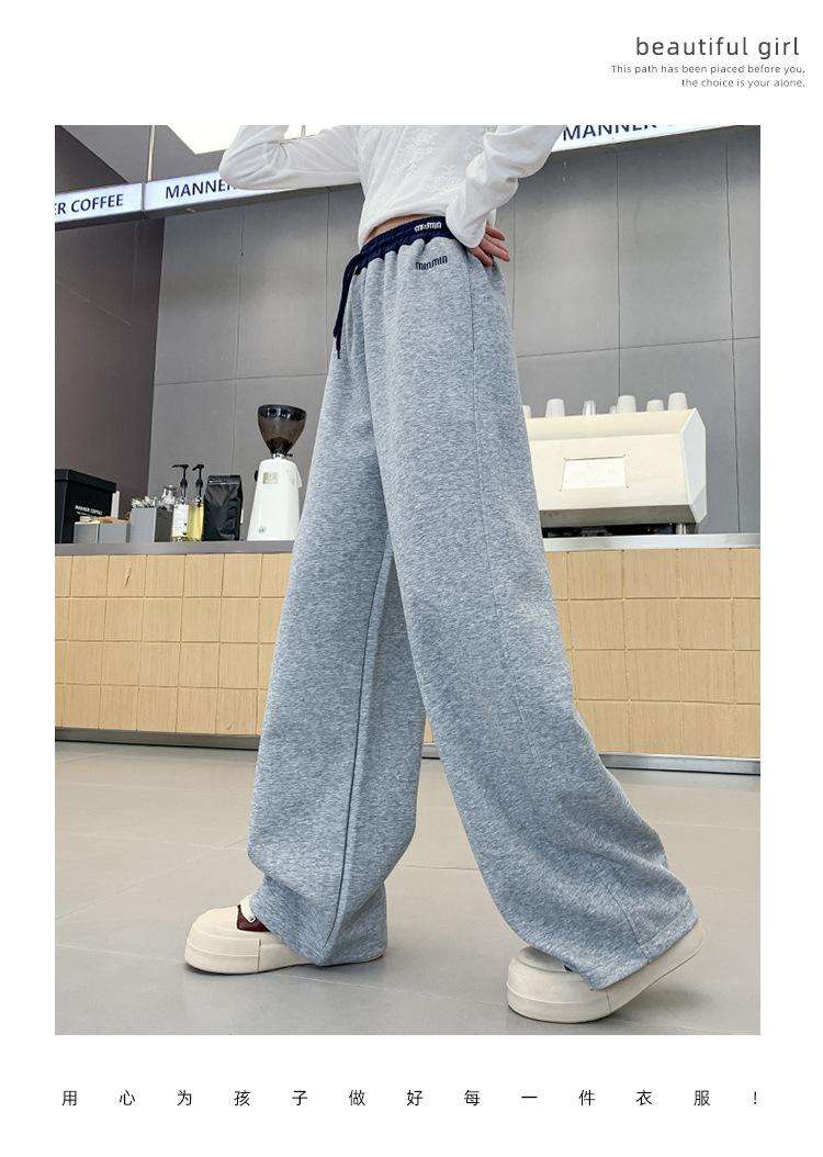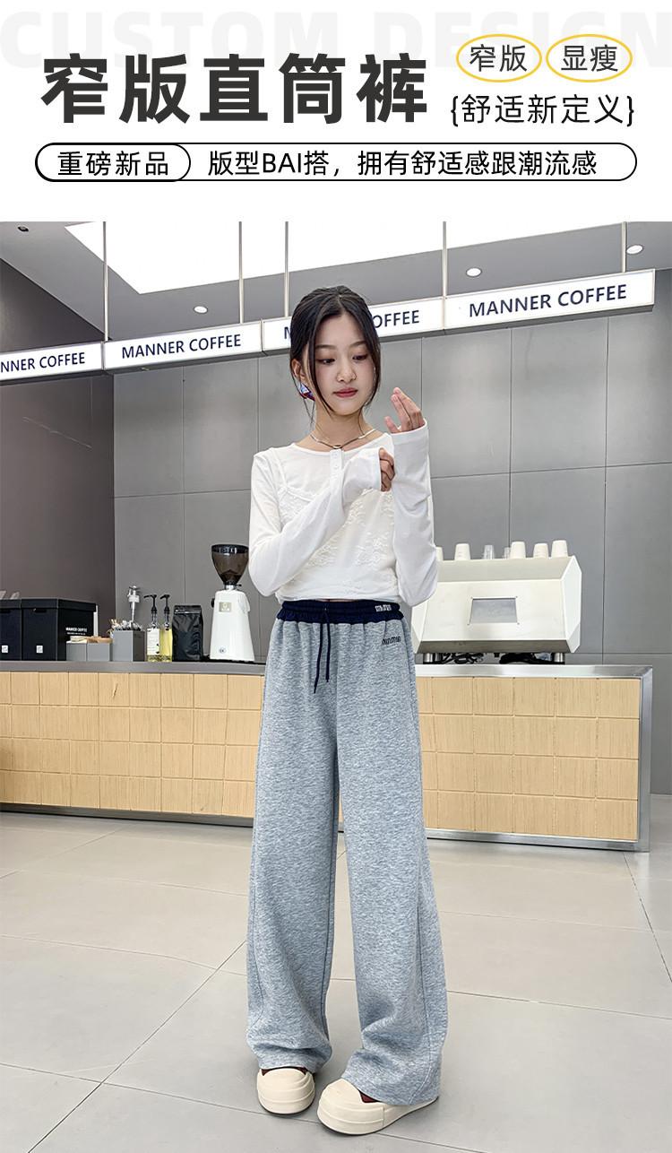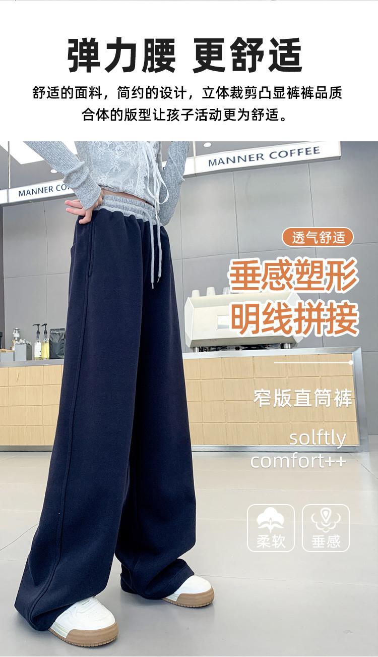 Pantalones deportivos casuales para niñas 2025 Otoño Nuevo estilo Niños medianos y grandes Sueltos Hasta el suelo Pierna ancha Pantalones deportivos modernos