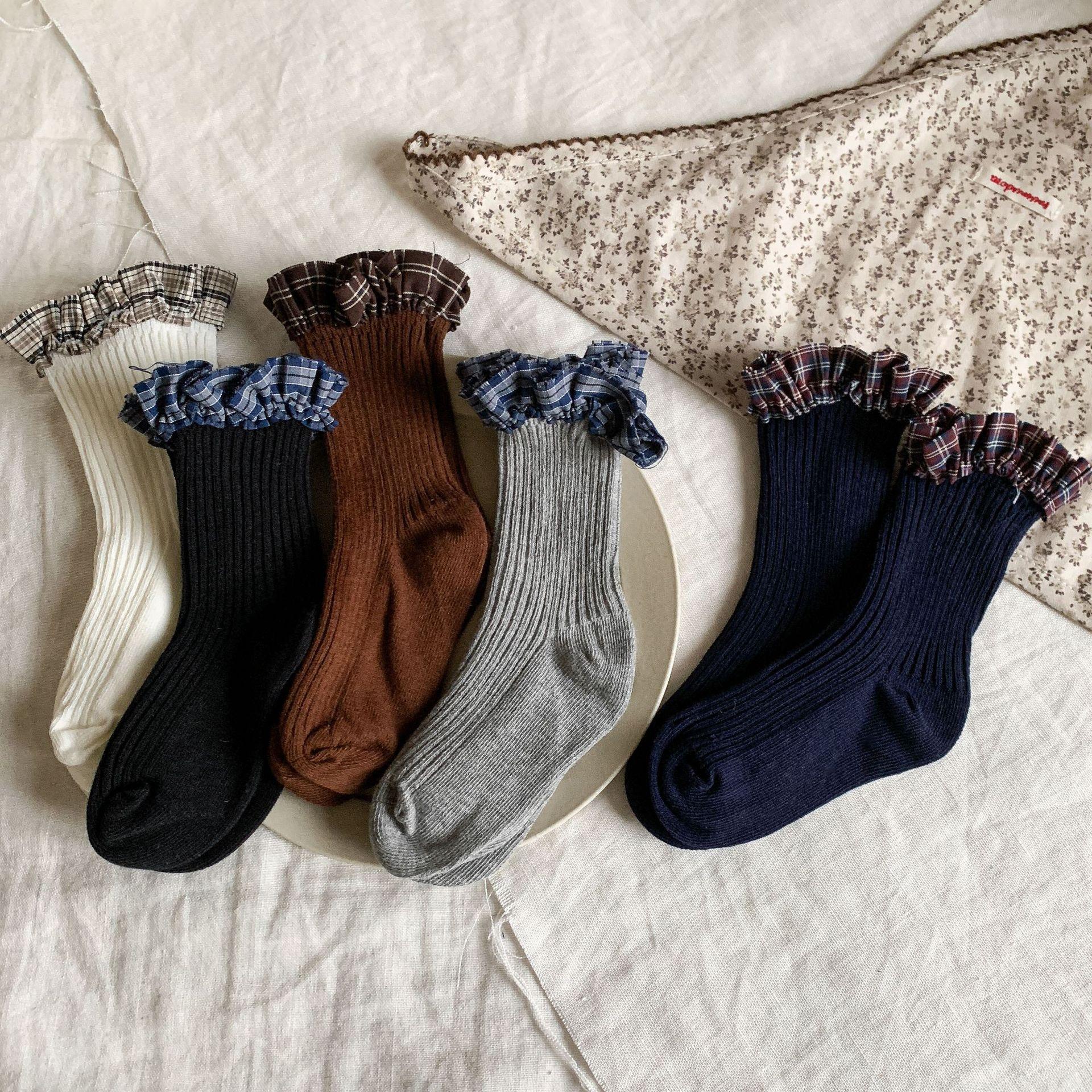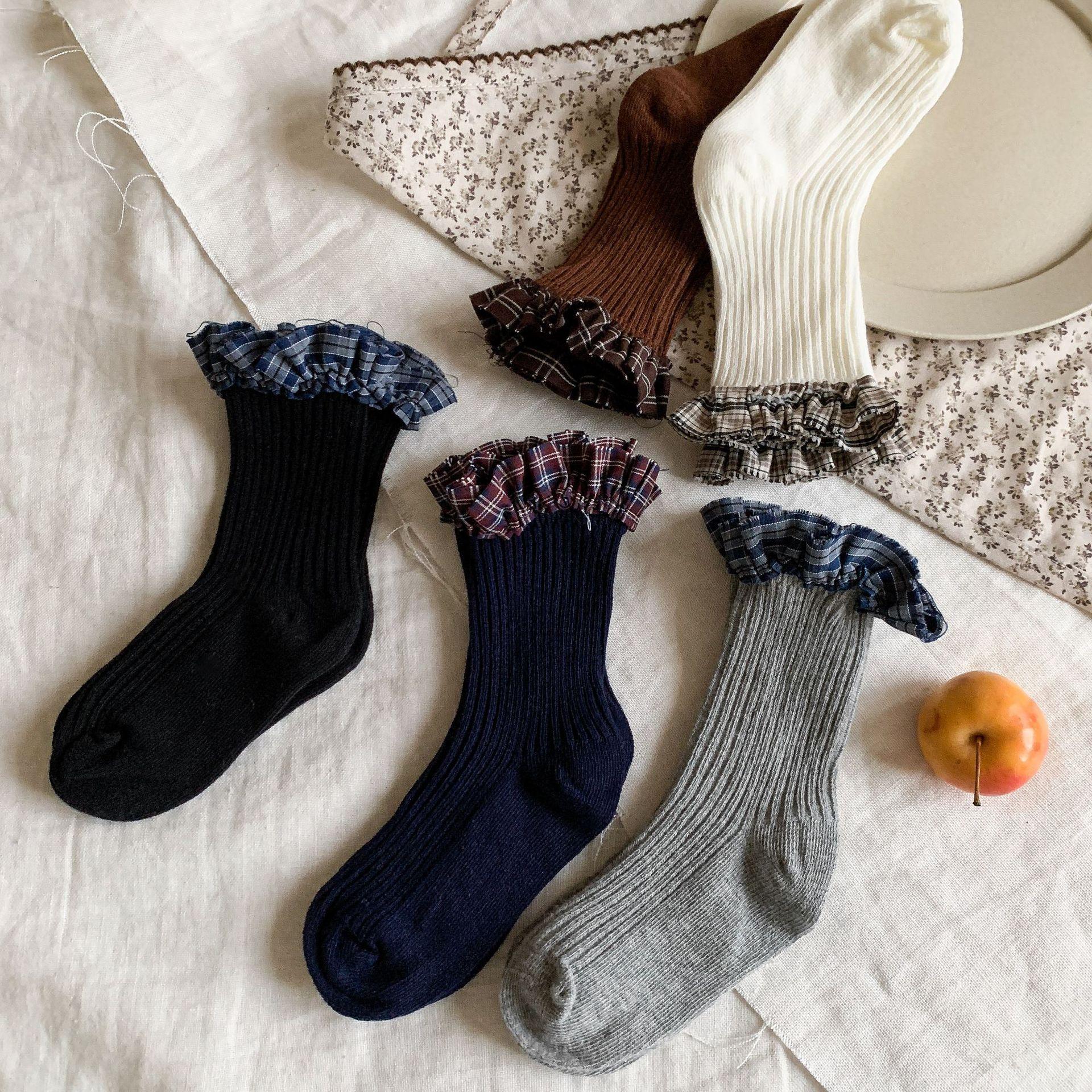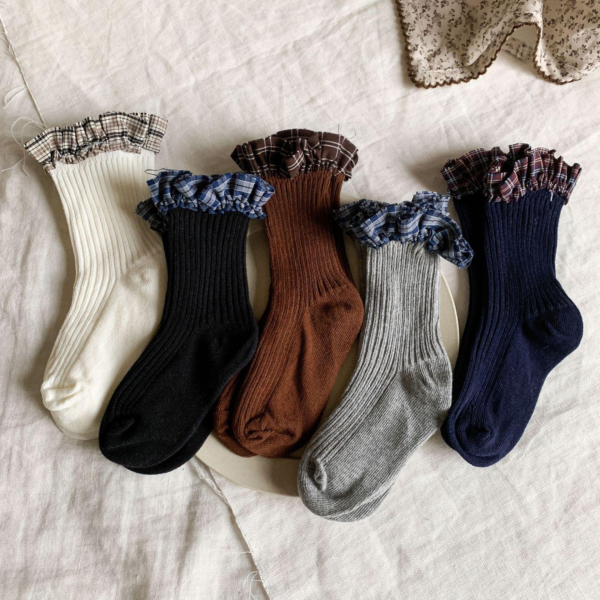 Ropa Infantil Vimwood Calcetines para Niñas Otoño 2025 Nuevos Calcetines Modernos Empalmados de Media Caña para Niños Calcetines de Algodón para Bebé