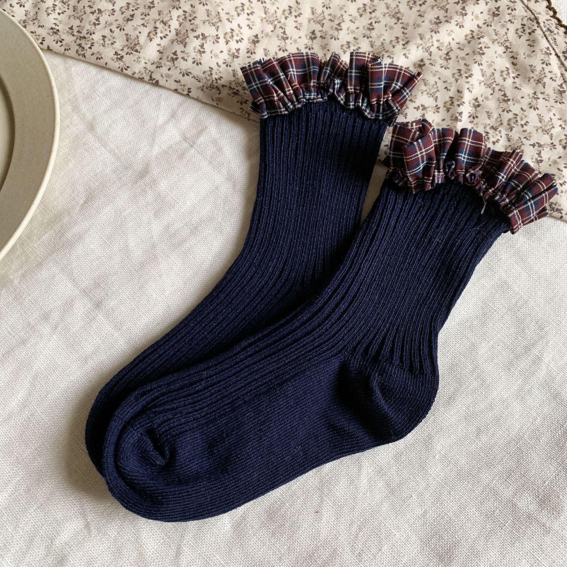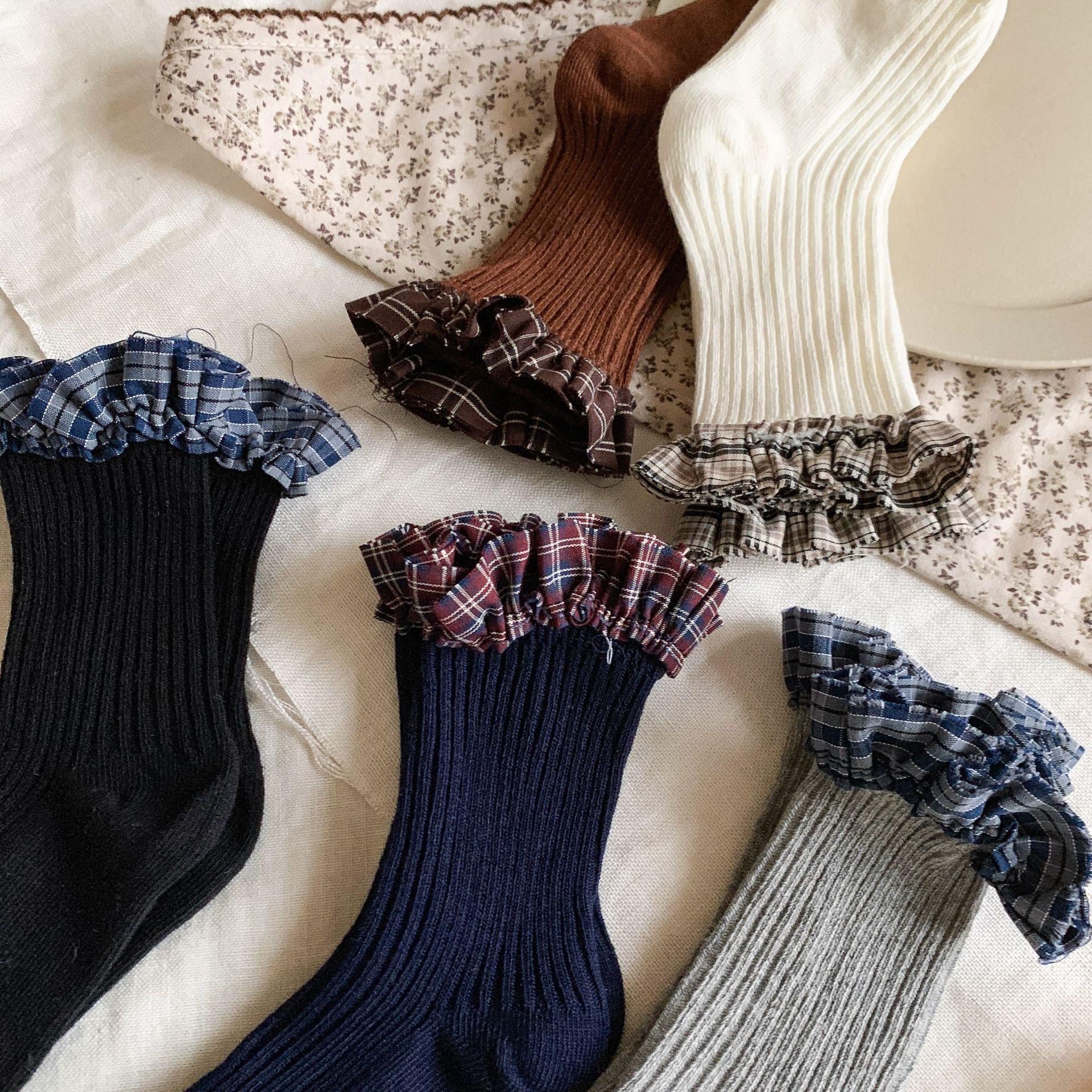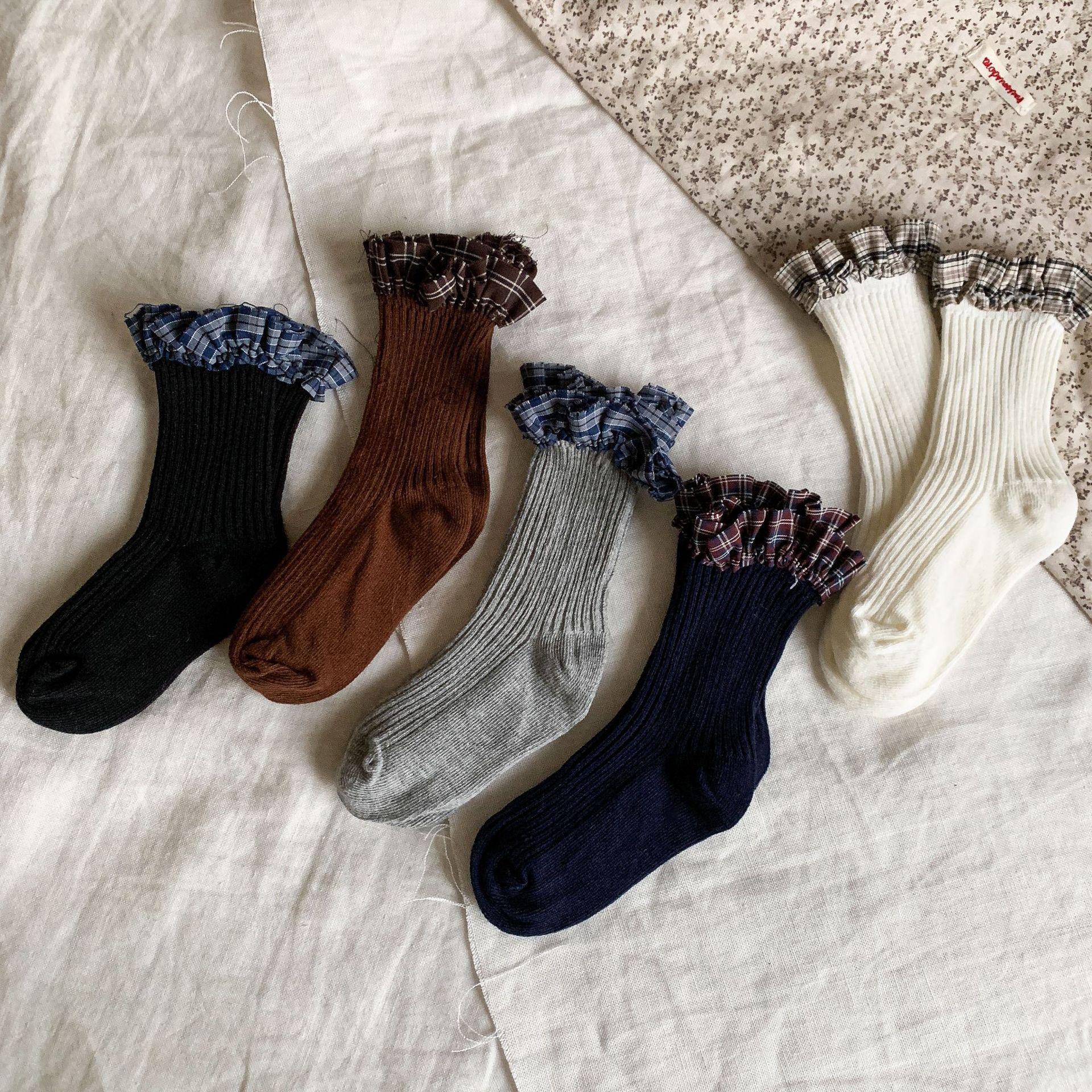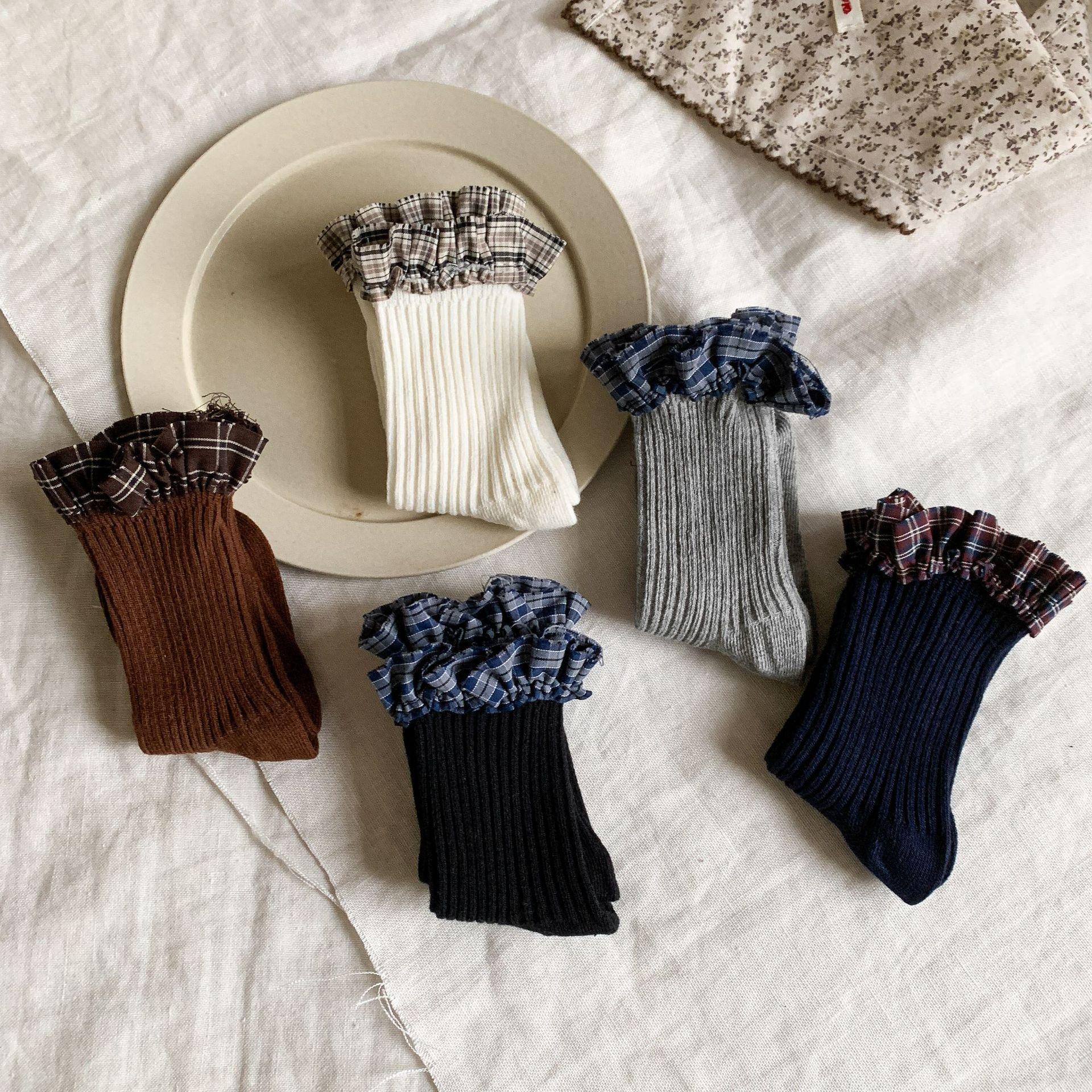 Ropa Infantil Vimwood Calcetines para Niñas Otoño 2025 Nuevos Calcetines Modernos Empalmados de Media Caña para Niños Calcetines de Algodón para Bebé
