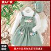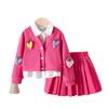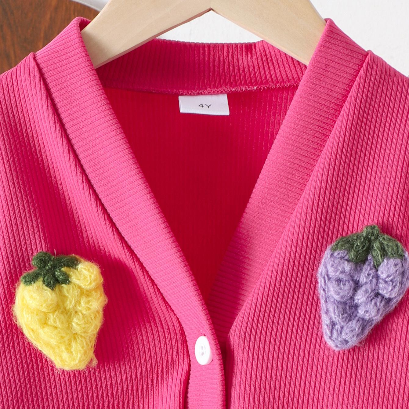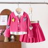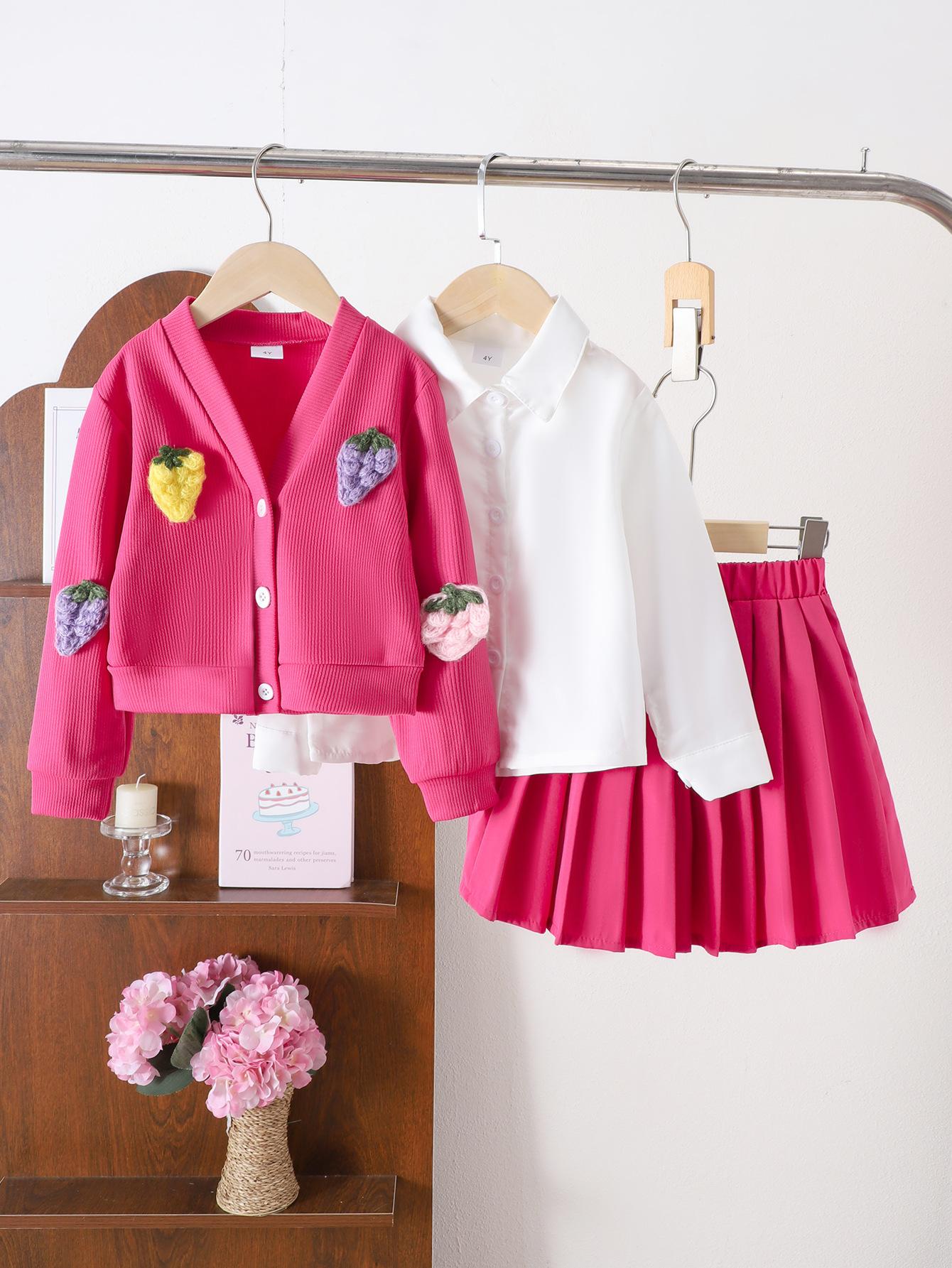 Amazon Nuevo Europeo y Americano Comercio Exterior Más Vendido Estilo Pastoral Dulce Cardigan de Fresa + Camisa + Falda Corta Set de Tres Piezas