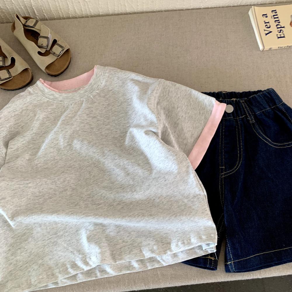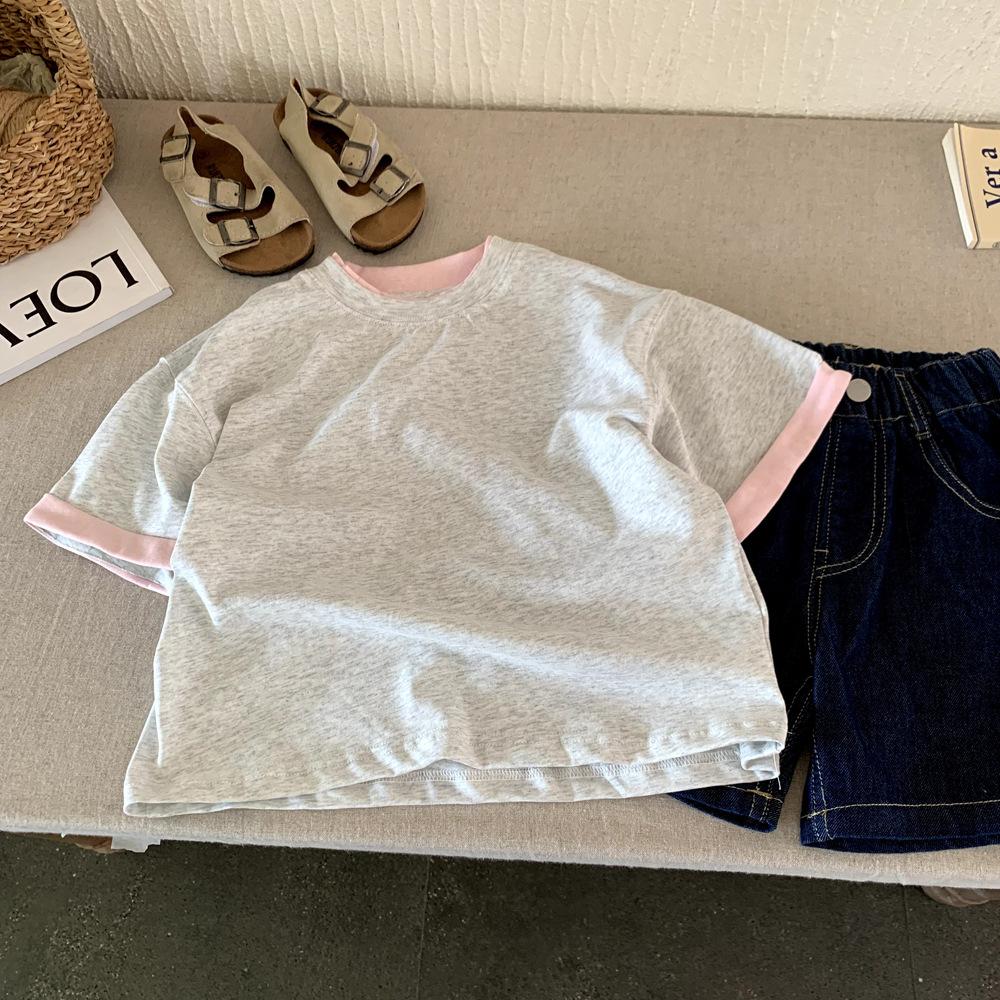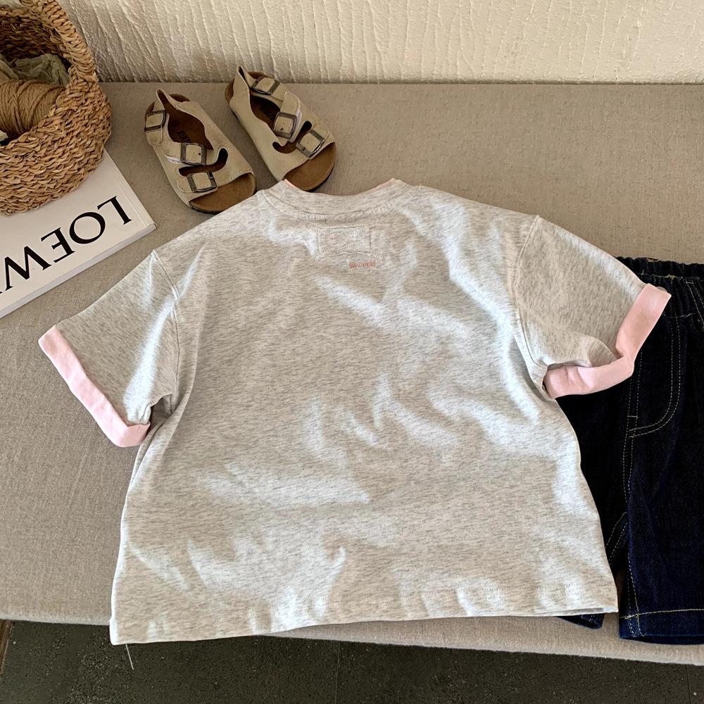 Camiseta de Diseño para Niño Verano 2025 Nuevo Estilo Coreano Niños Manga Corta Verano Niñas Camiseta de Media Manga Top T