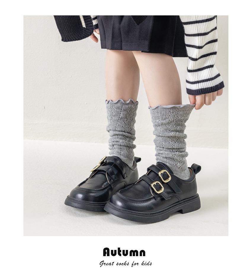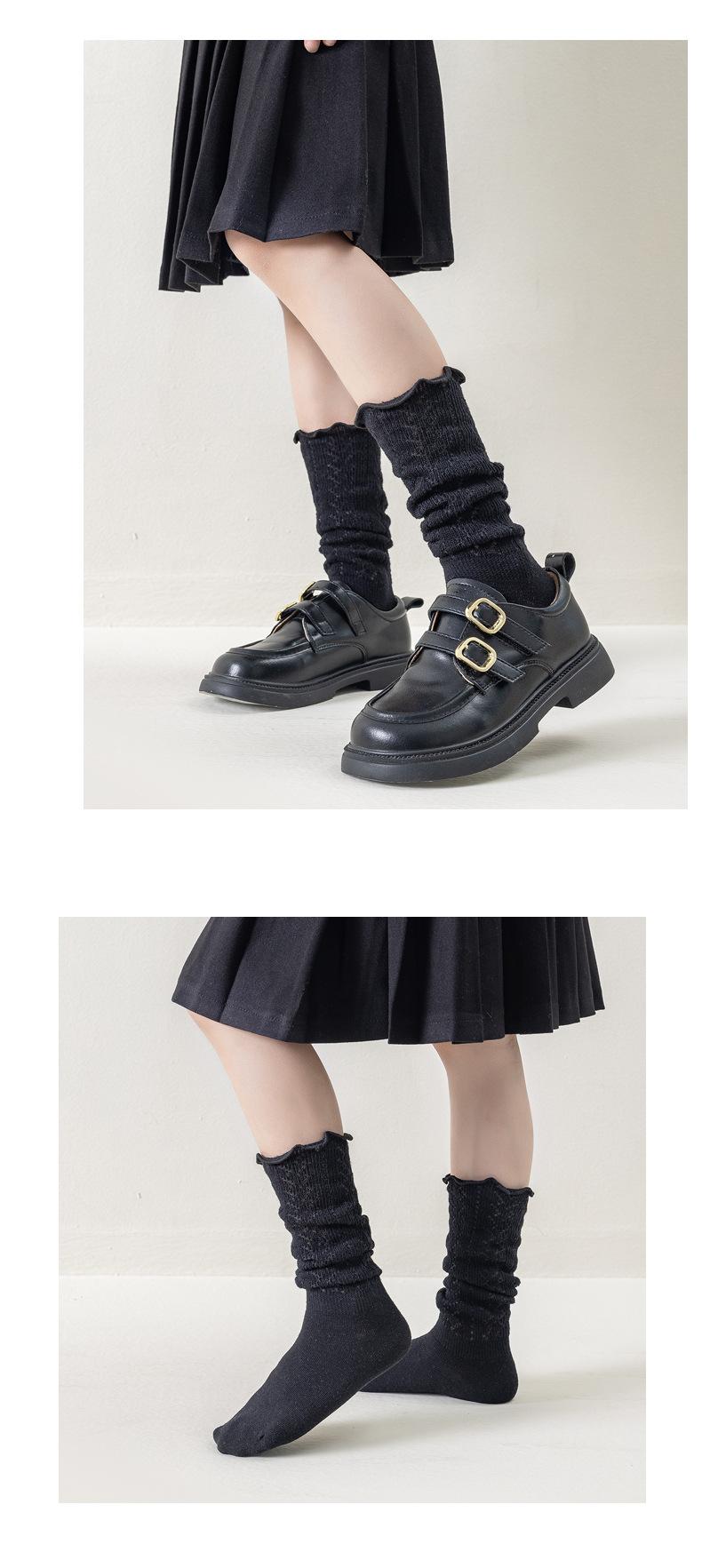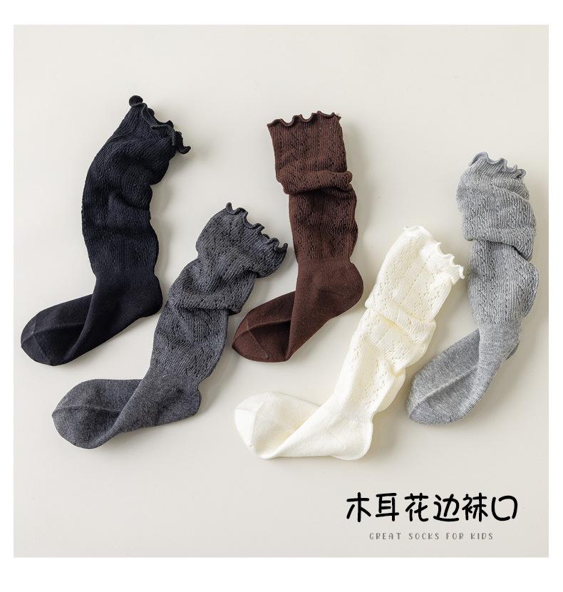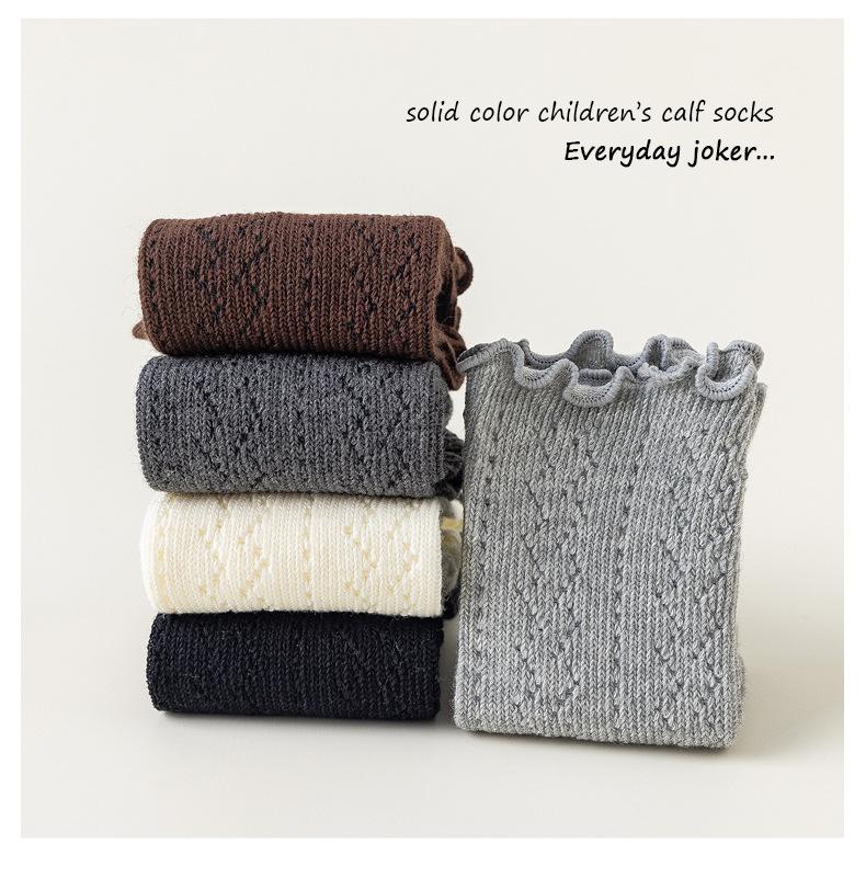 Calcetines para Niñas Otoño e Invierno Color Sólido Calcetines hasta la Pantorrilla Estilo Coreano ins Borde con Volantes Calcetines de Rizo Niño Mediano-Grande Calcetines de Algodón