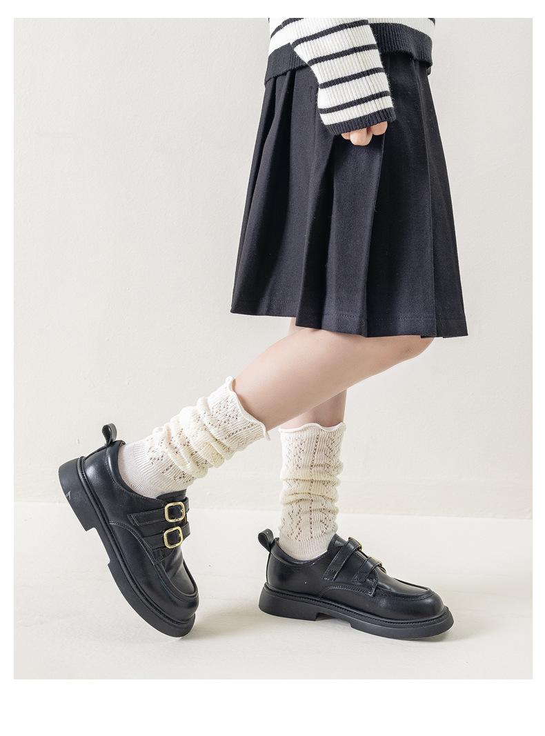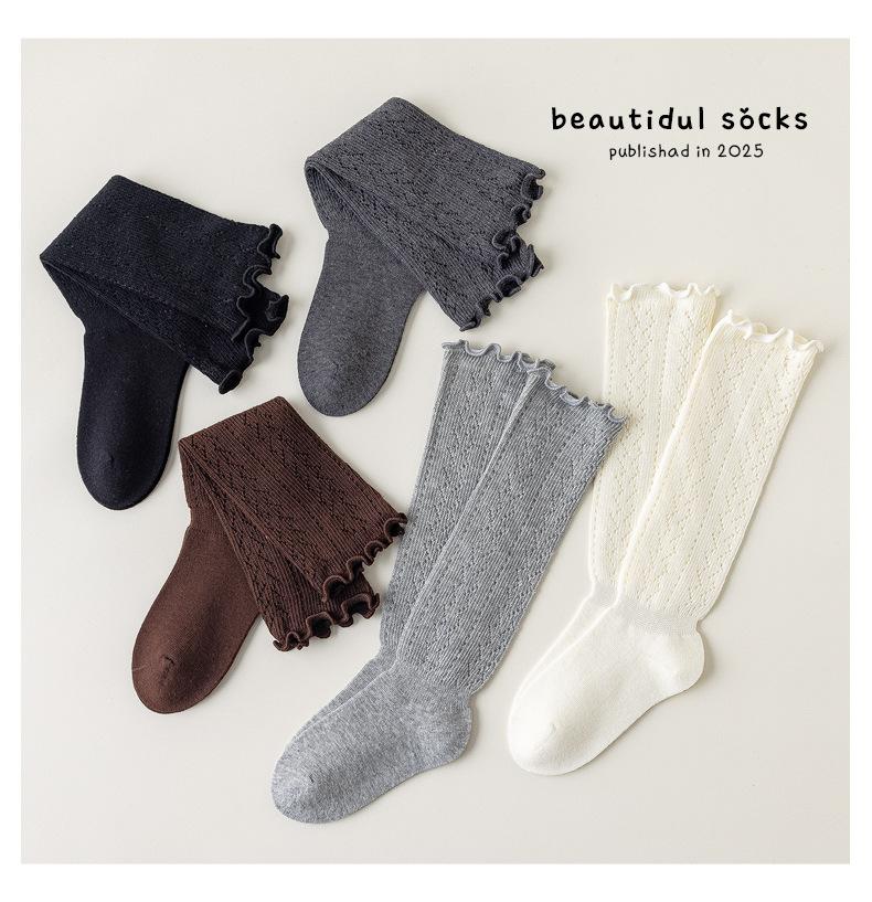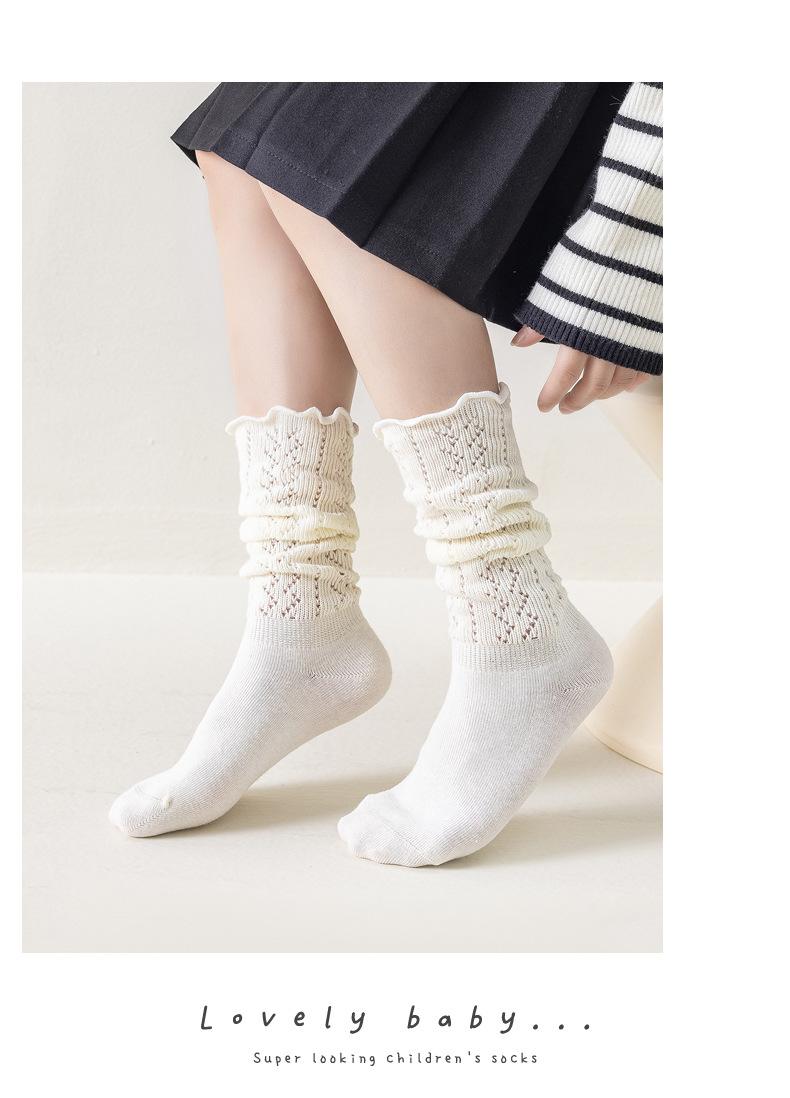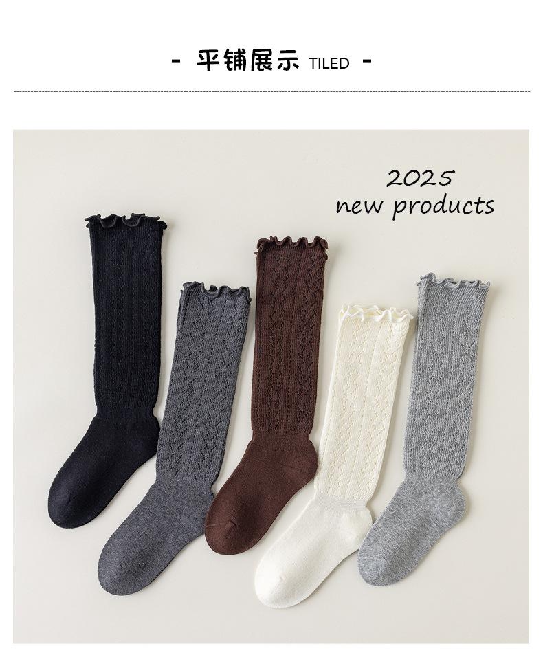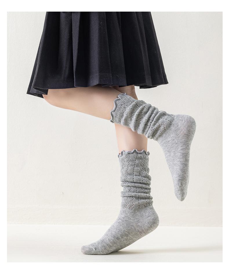 Calcetines para Niñas Otoño e Invierno Color Sólido Calcetines hasta la Pantorrilla Estilo Coreano ins Borde con Volantes Calcetines de Rizo Niño Mediano-Grande Calcetines de Algodón