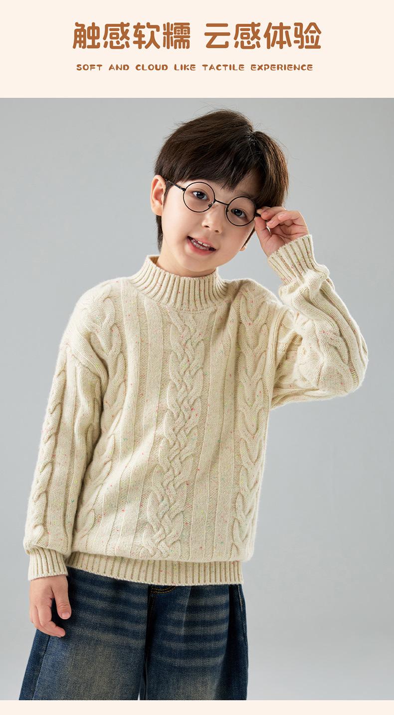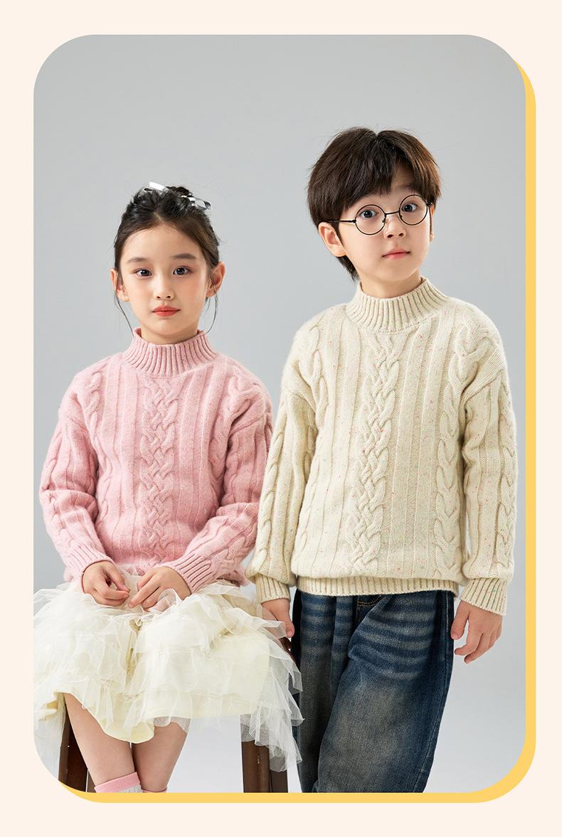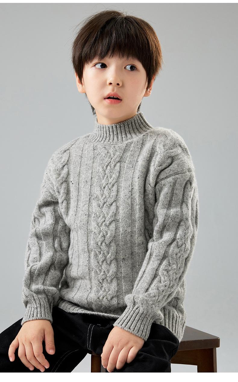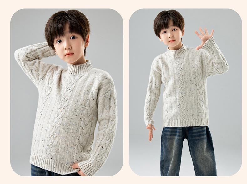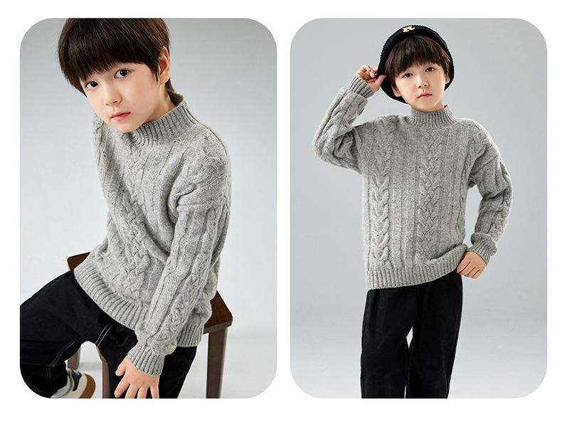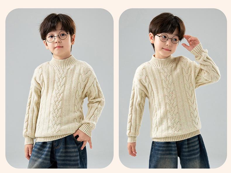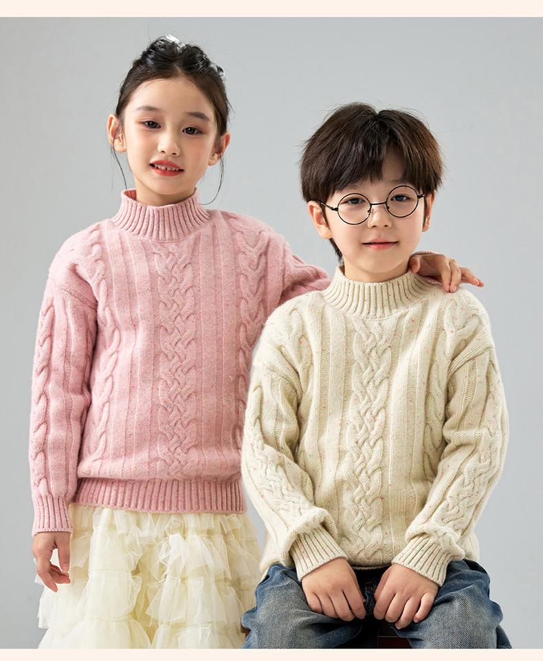Suéter de Lana 100% para Niños Cuello Redondo Semi-Alto Espesado Otoño e Invierno Cálido Niño y Niña Suéter Pulóver Tejido Trenzado