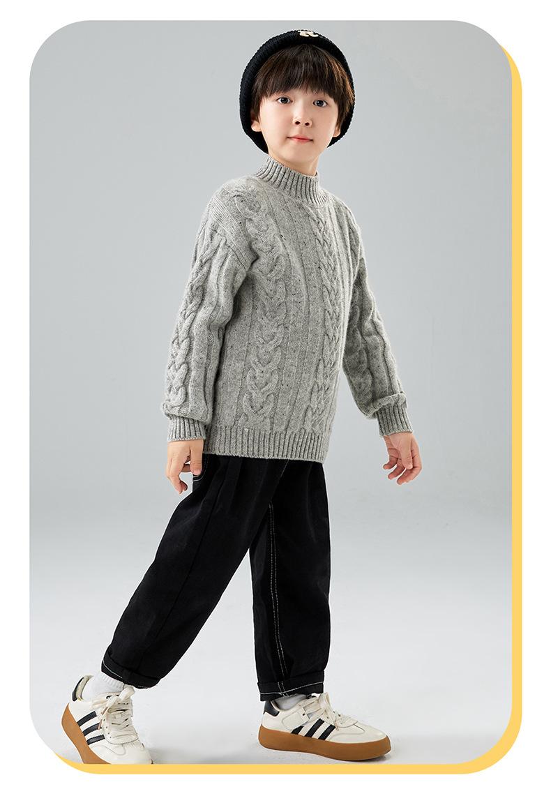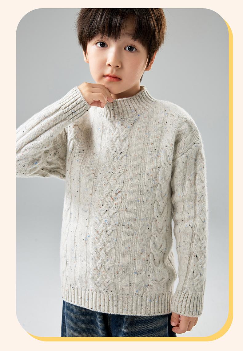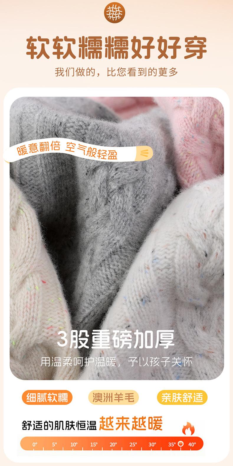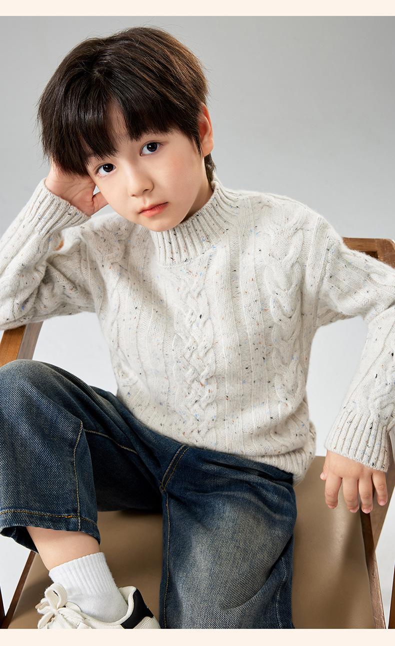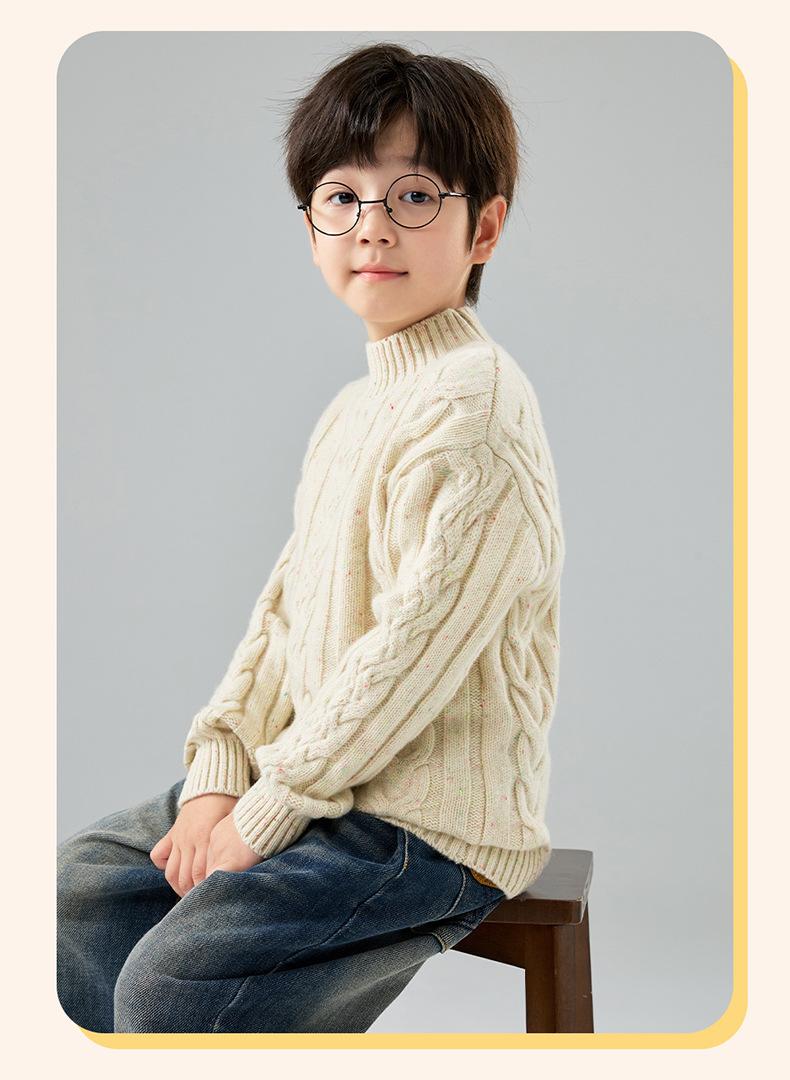 Suéter de Lana 100% para Niños Cuello Redondo Semi-Alto Espesado Otoño e Invierno Cálido Niño y Niña Suéter Pulóver Tejido Trenzado