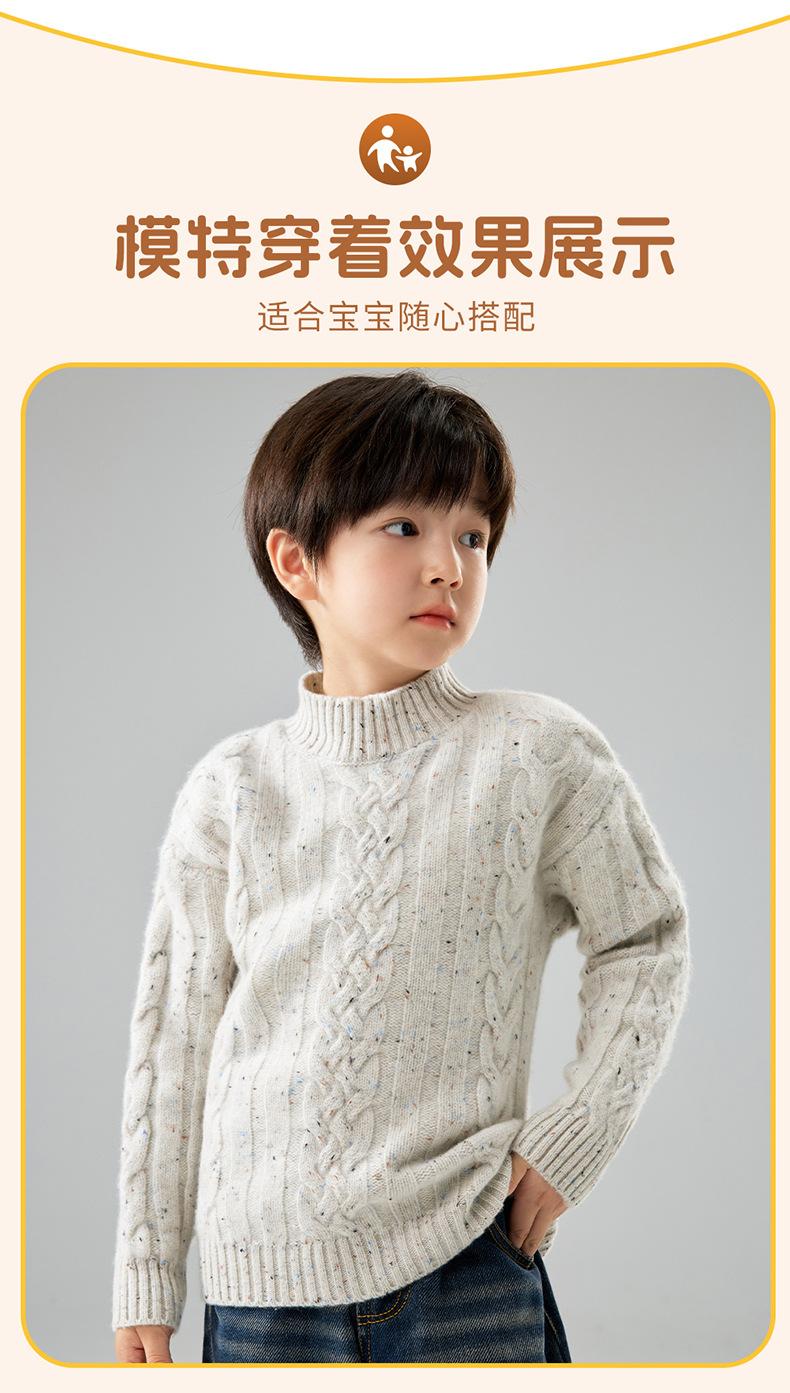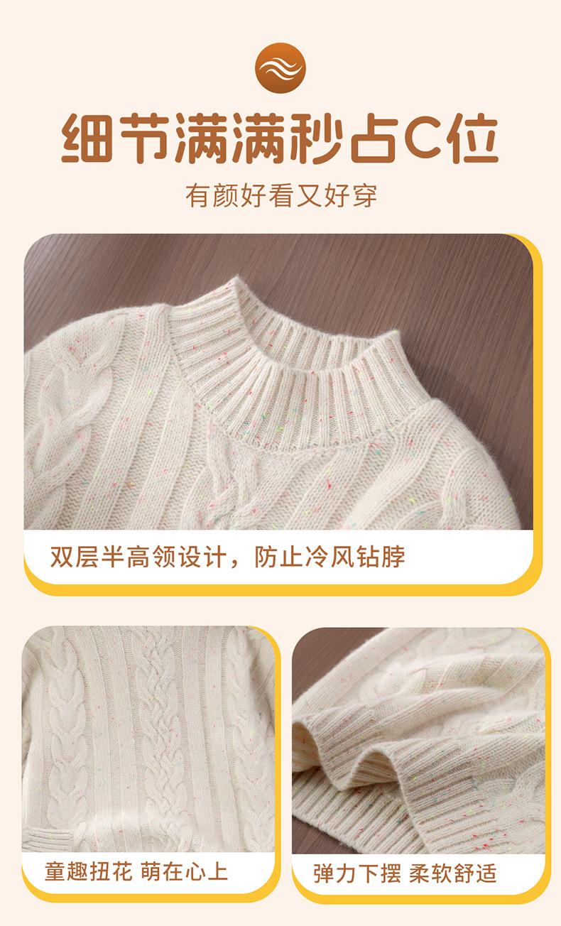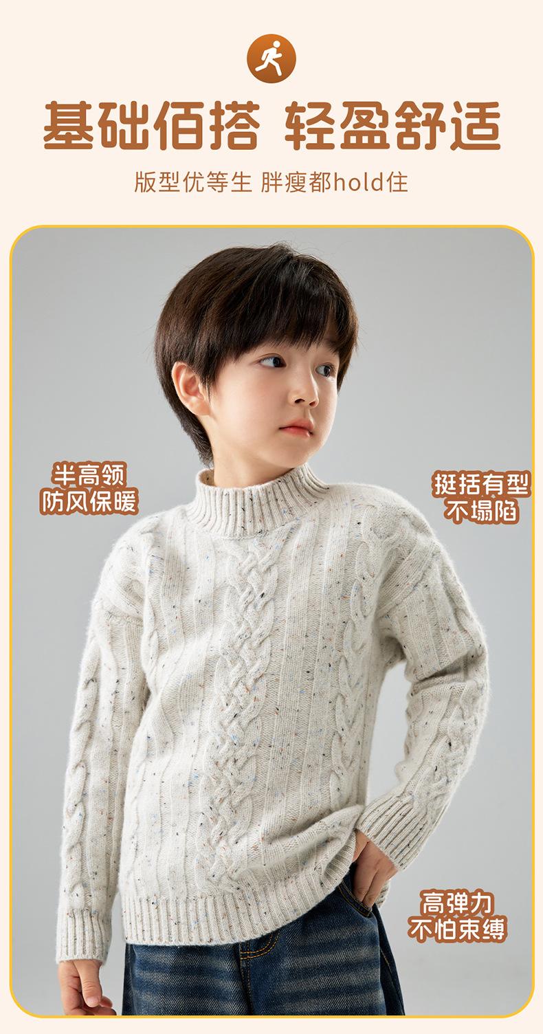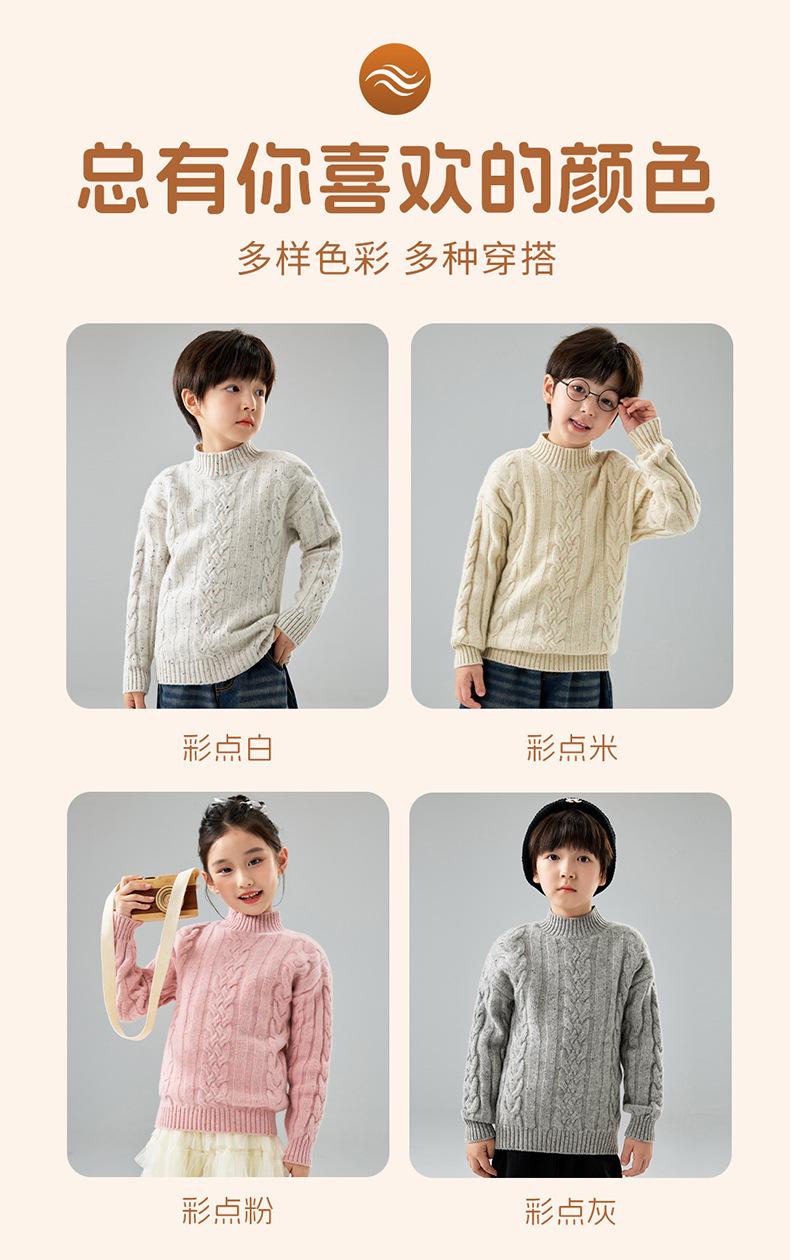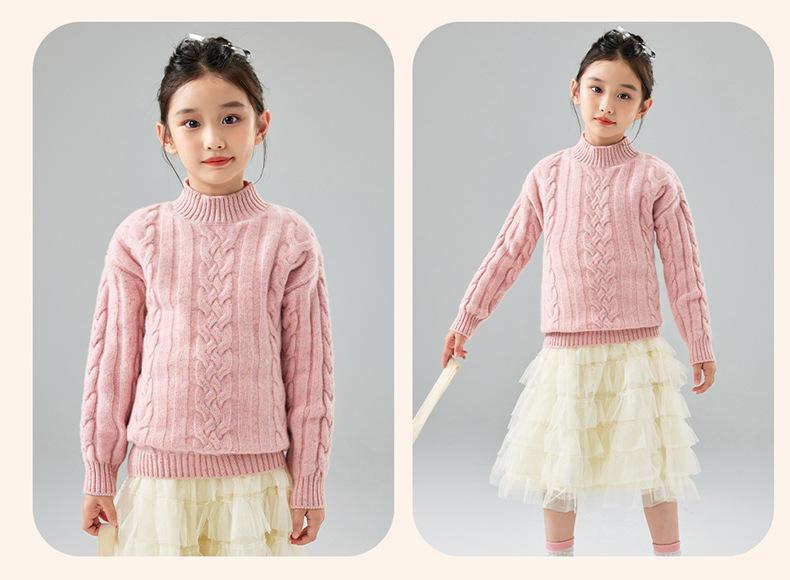 Suéter de Lana 100% para Niños Cuello Redondo Semi-Alto Espesado Otoño e Invierno Cálido Niño y Niña Suéter Pulóver Tejido Trenzado
