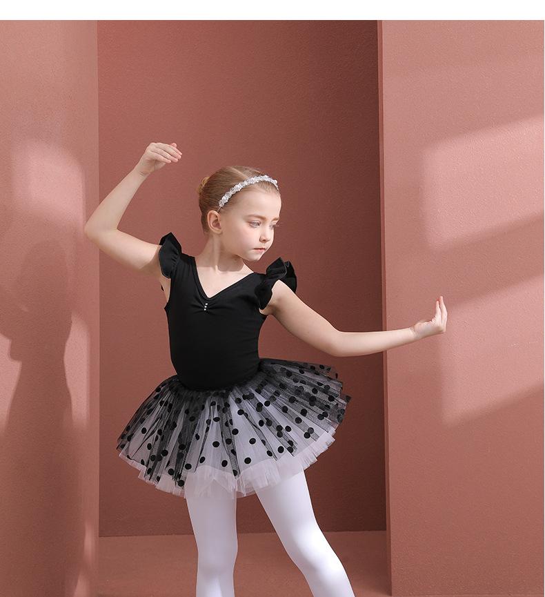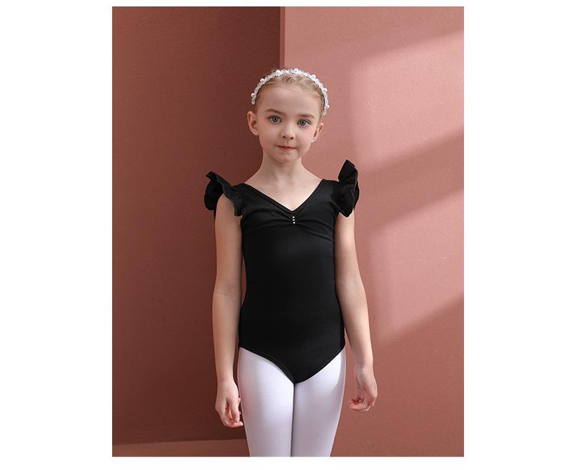 Ropa de Danza para Niñas Algodón Puro Negro Ropa de Práctica de Verano Vestido de Ballet para Niñas Pequeñas Ropa de Práctica de Danza China para Exámenes