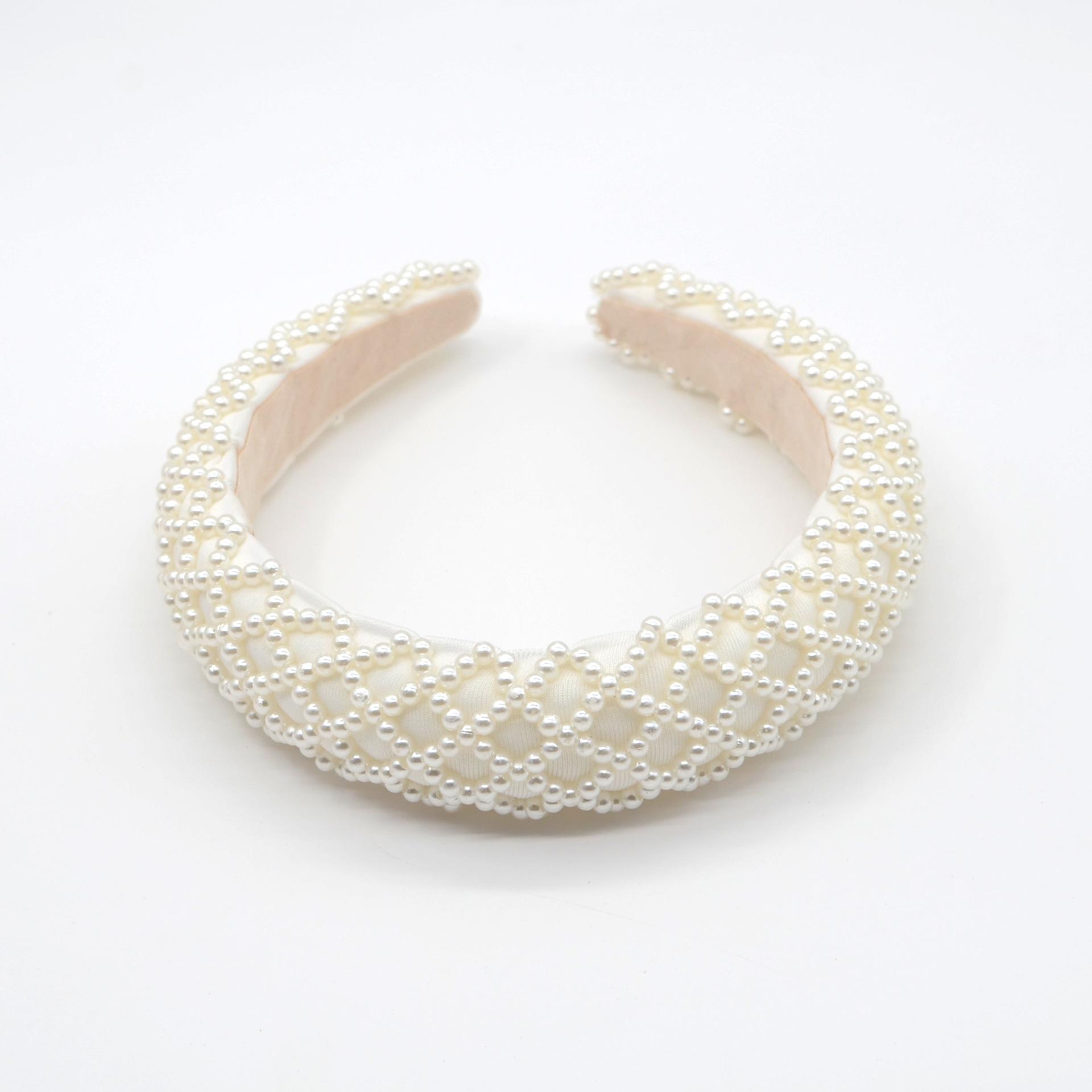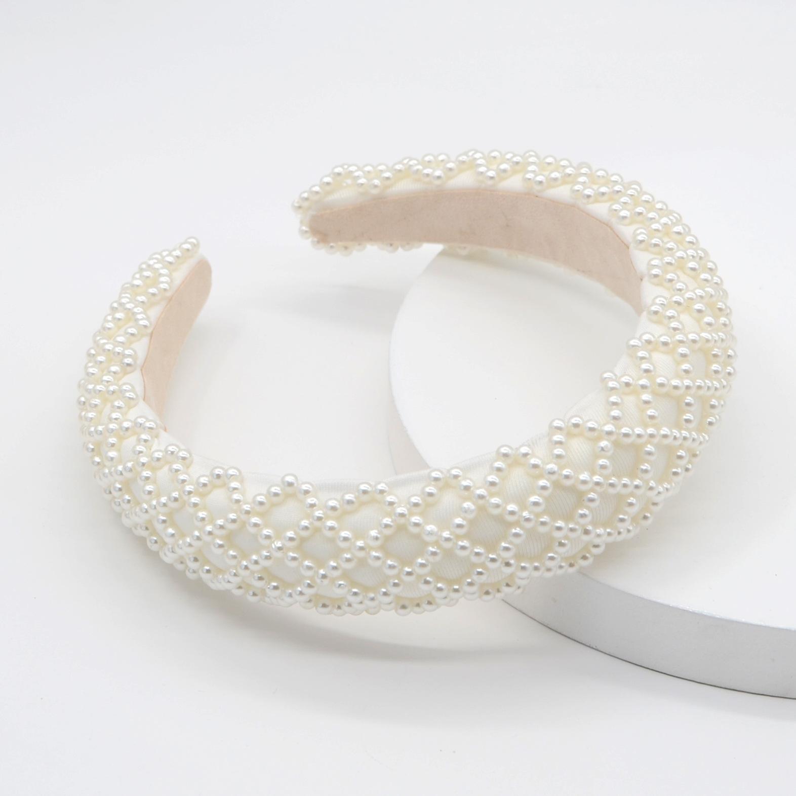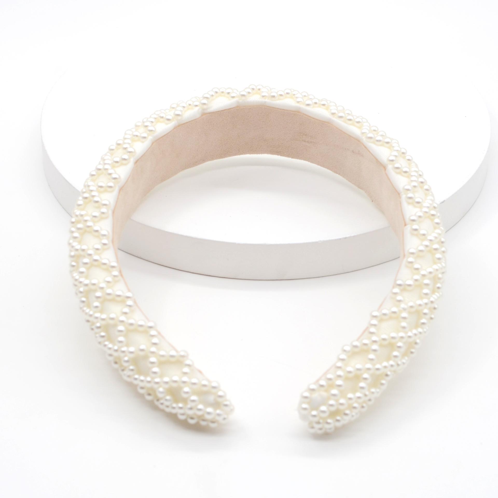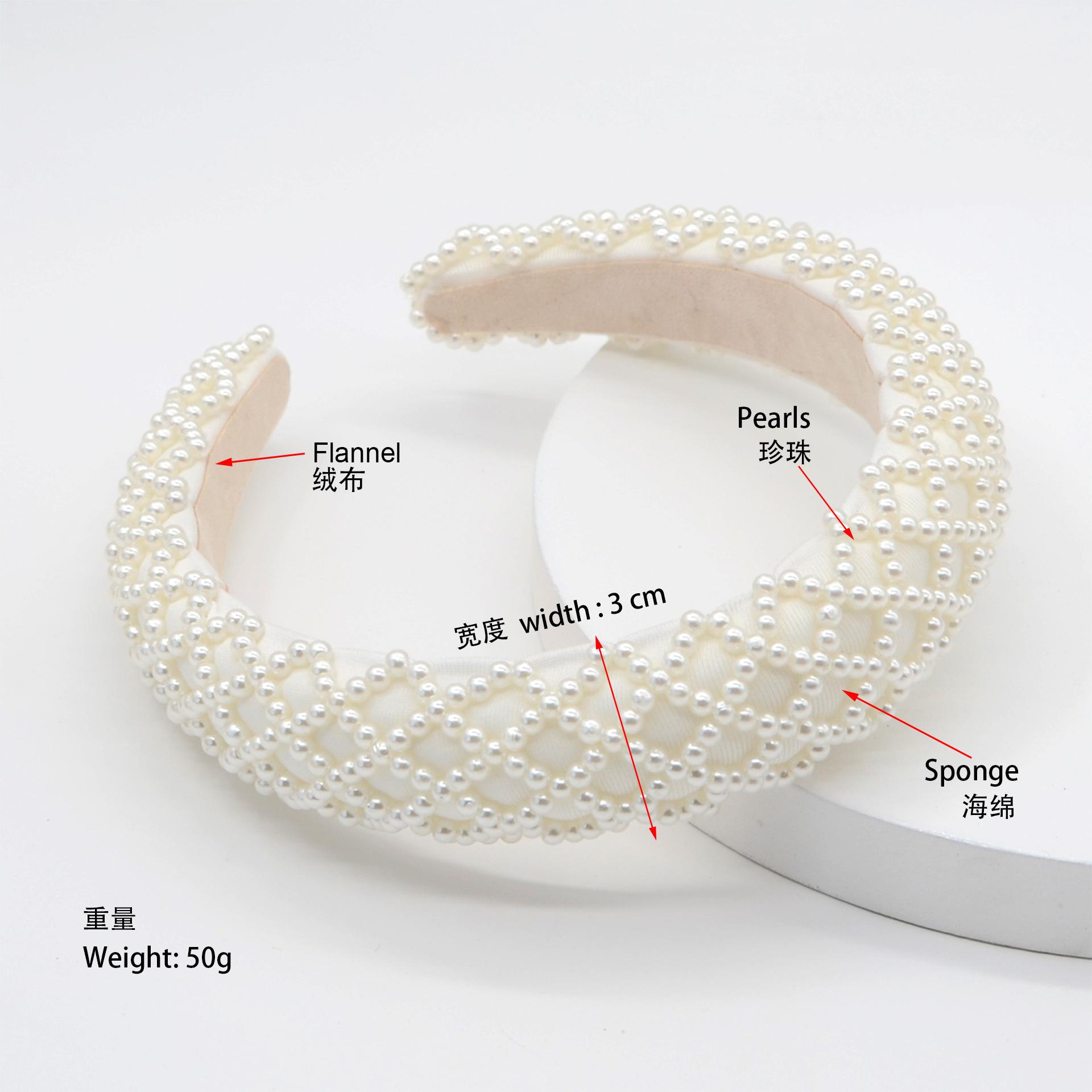 Tocado Creativo Europeo y Americano Diadema Gruesa de Esponja de Bolsa Tejida a Mano con Cuentas de Diamantes Diadema Coreana de Perlas