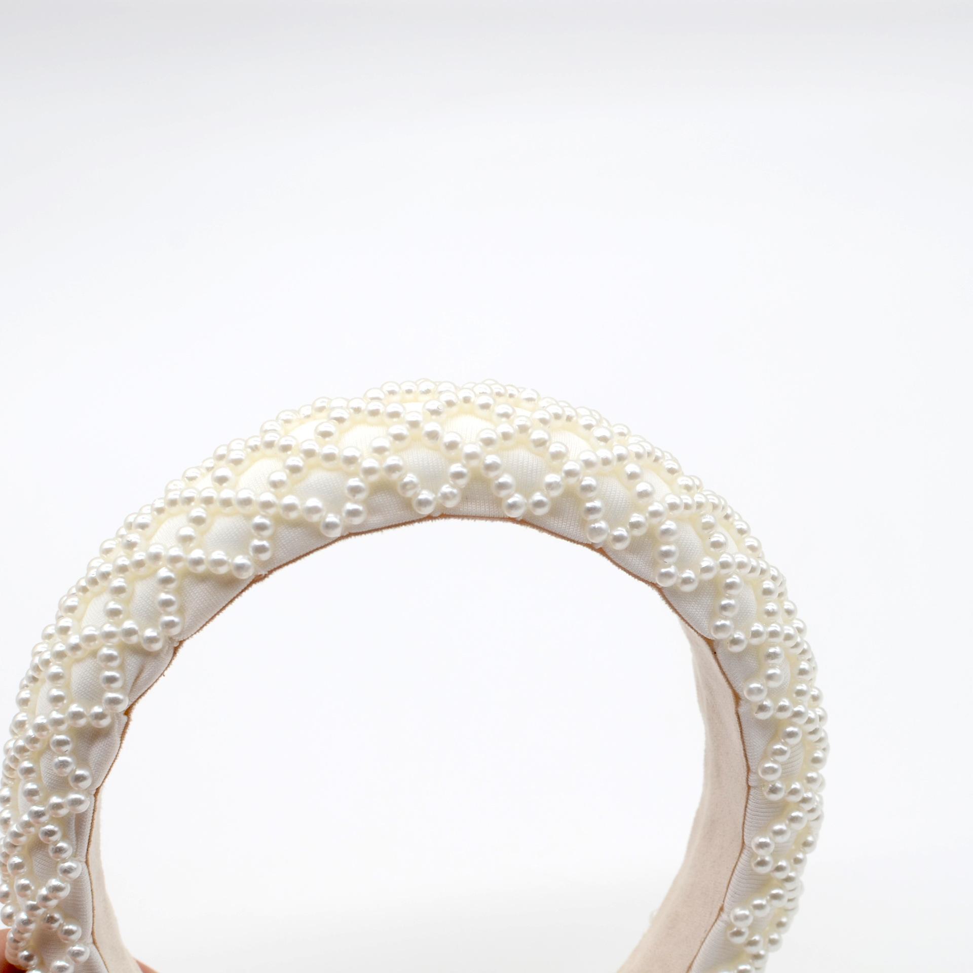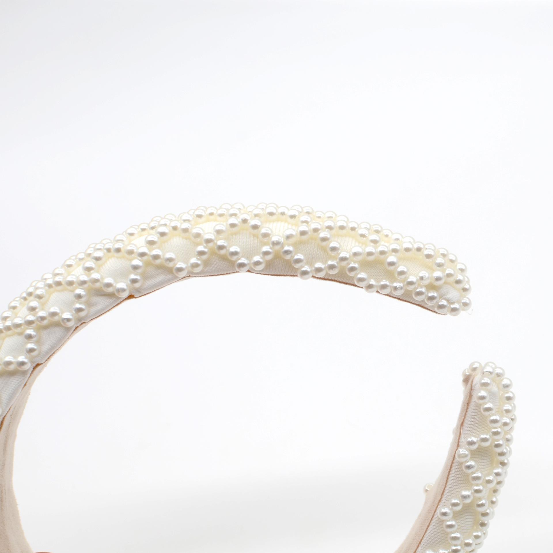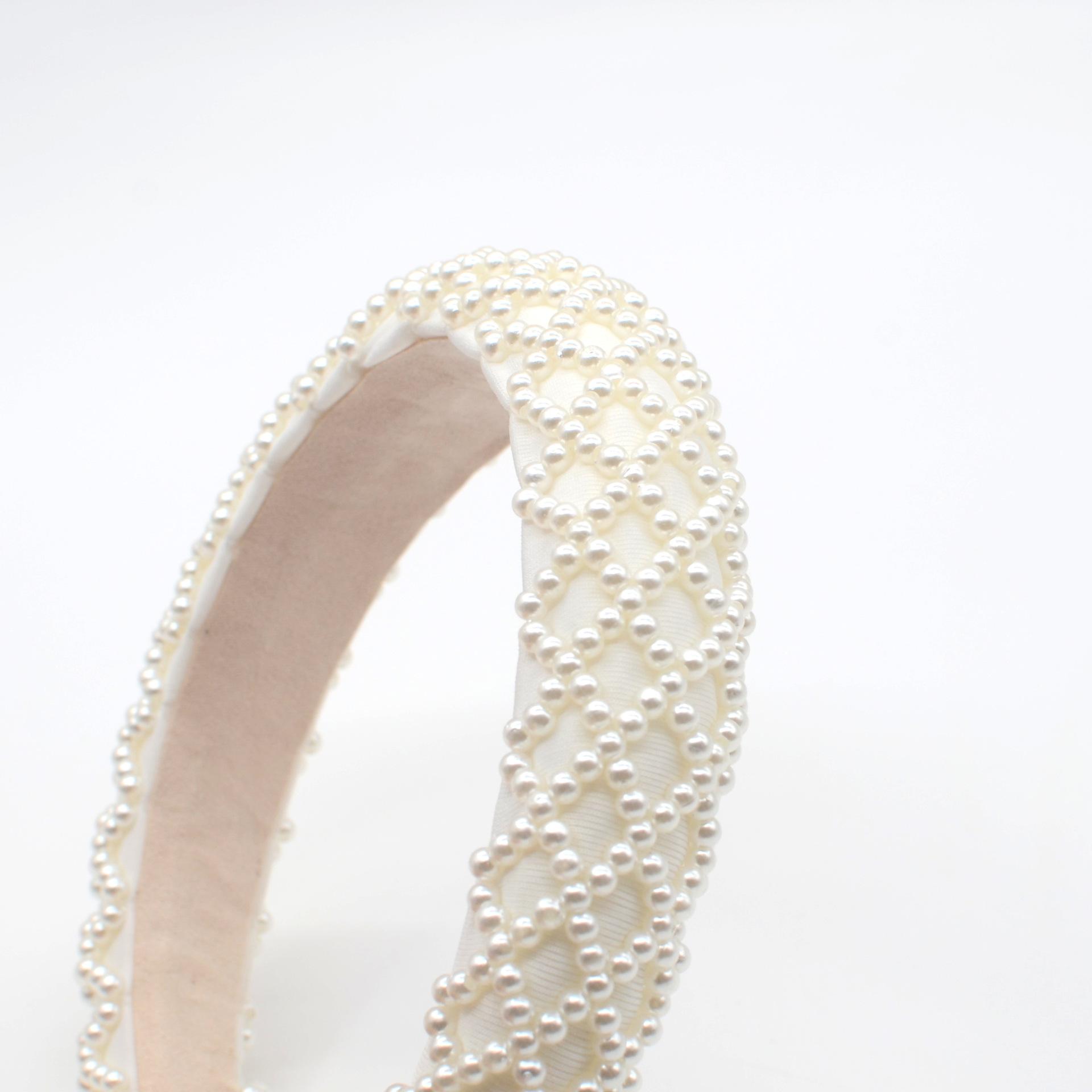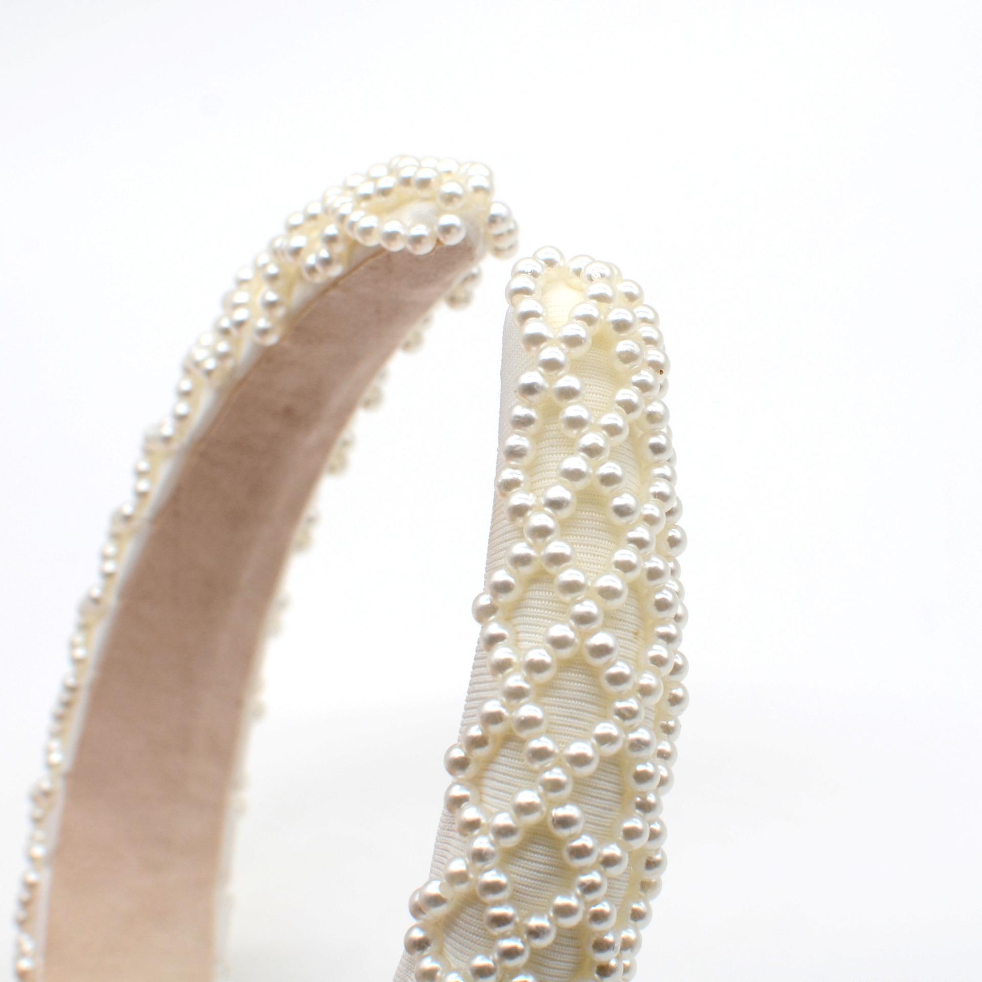 Tocado Creativo Europeo y Americano Diadema Gruesa de Esponja de Bolsa Tejida a Mano con Cuentas de Diamantes Diadema Coreana de Perlas