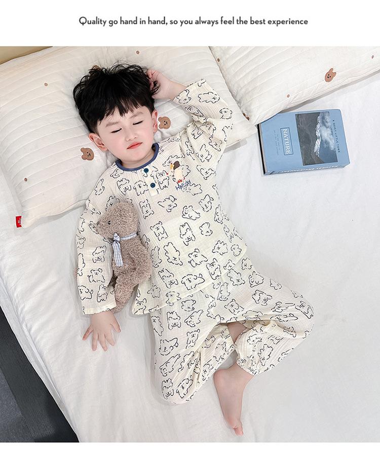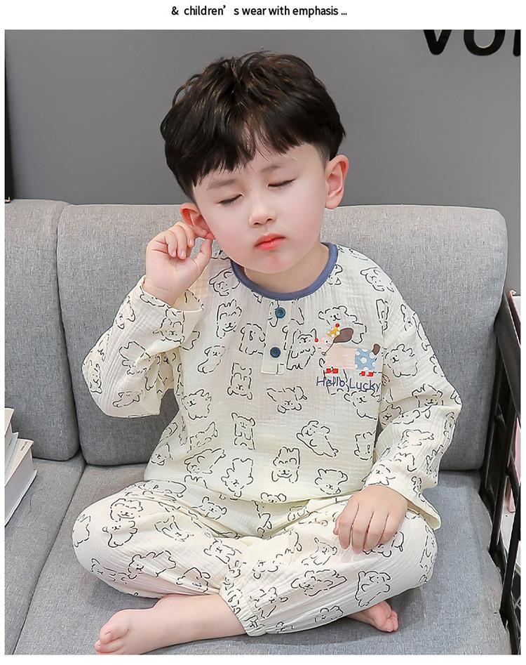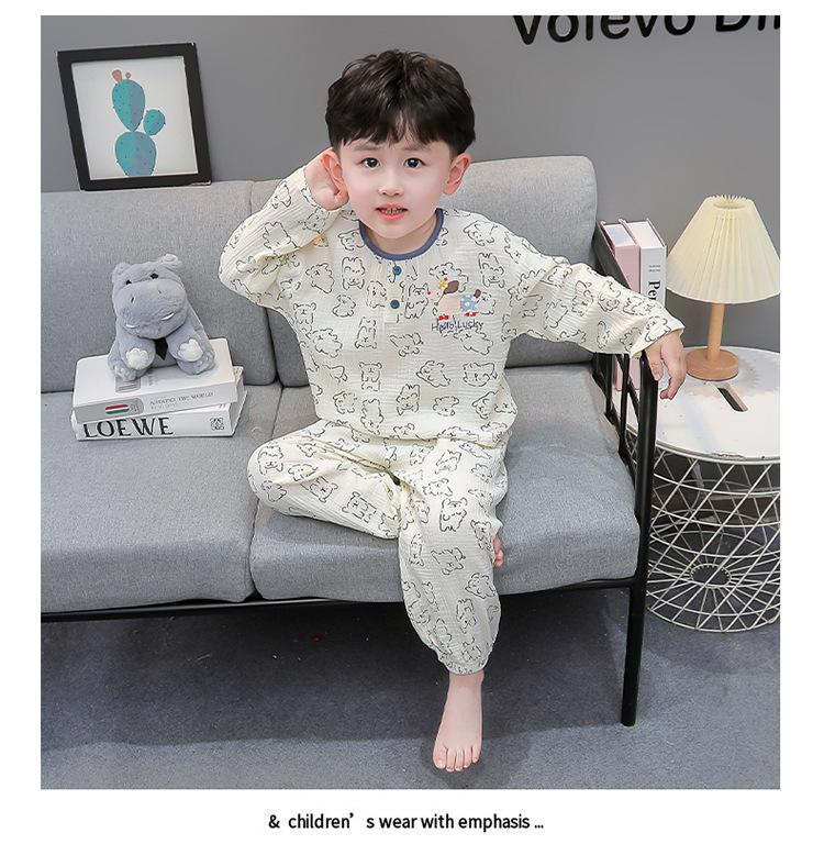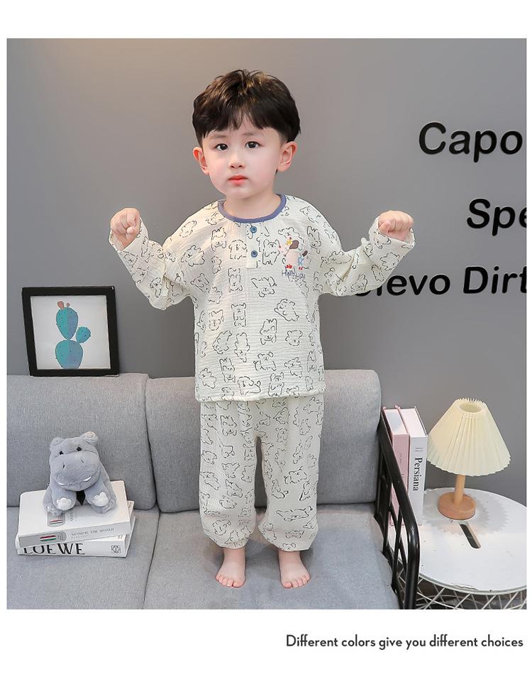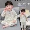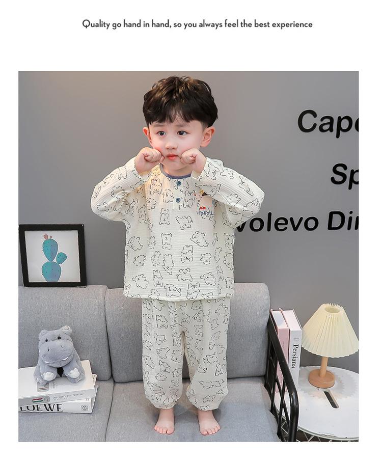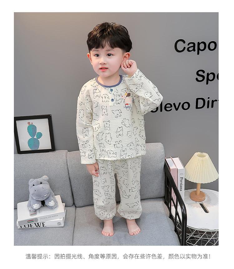 Pijamas de Niño Otoño y Primavera Nuevo Algodón Gasa Infantil Dibujos Animados Manga Larga Set Niño Delgado Conjunto Ropa de Casa