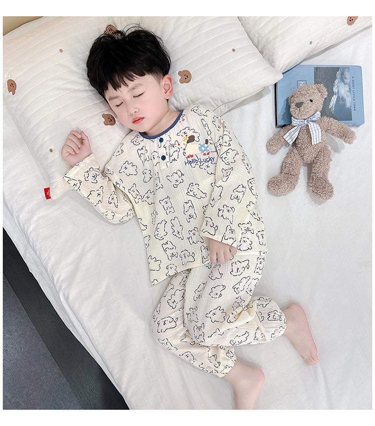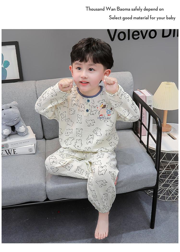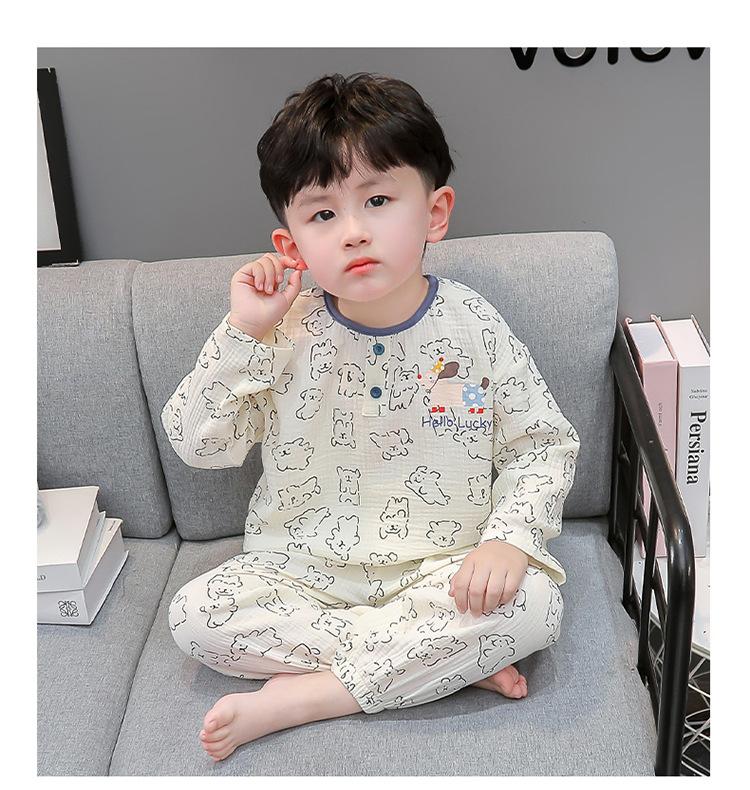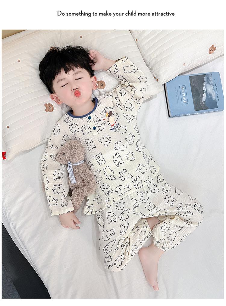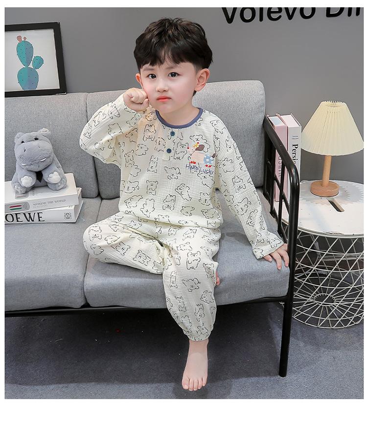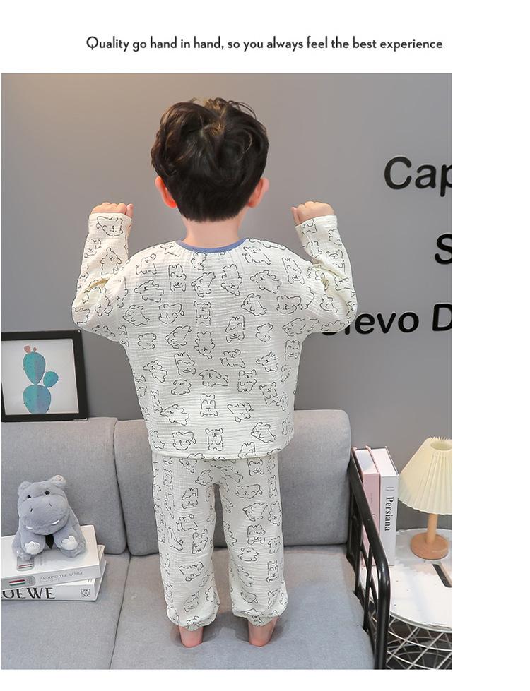 Pijamas de Niño Otoño y Primavera Nuevo Algodón Gasa Infantil Dibujos Animados Manga Larga Set Niño Delgado Conjunto Ropa de Casa