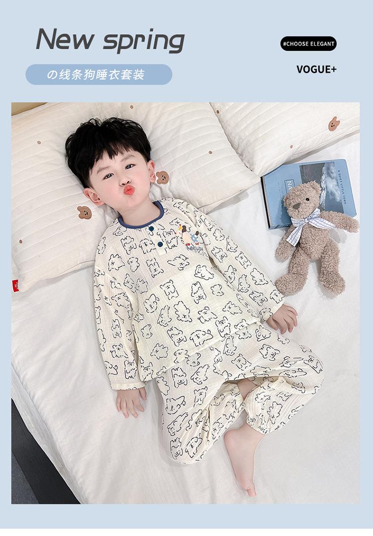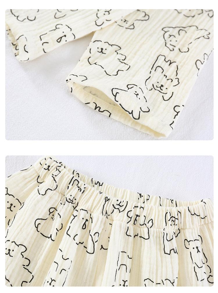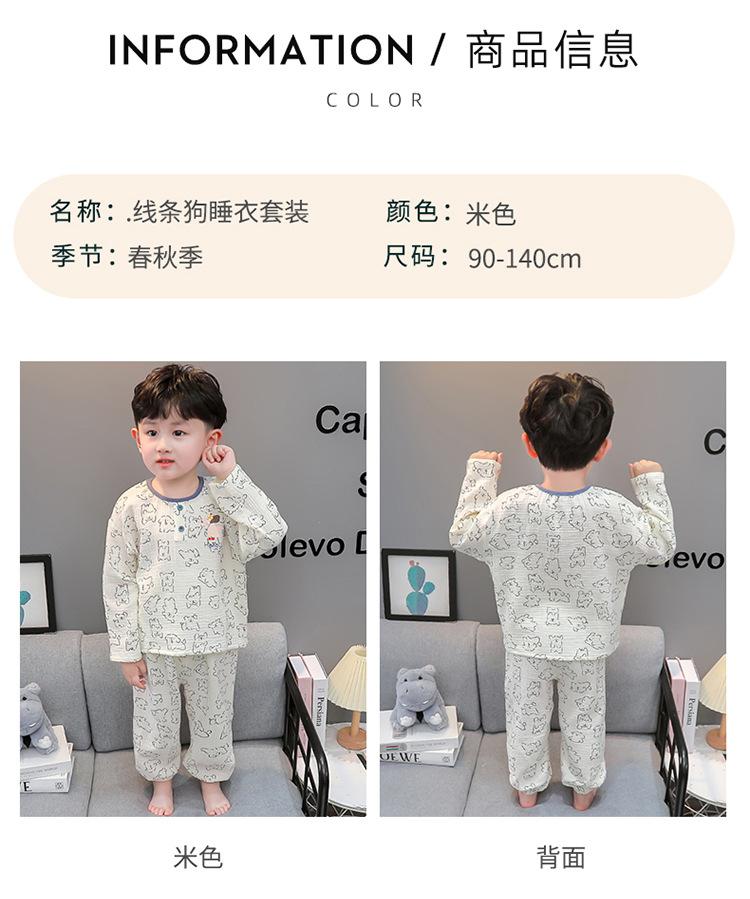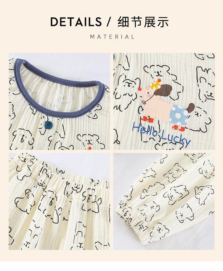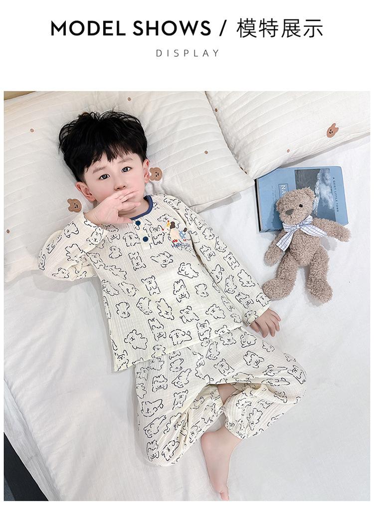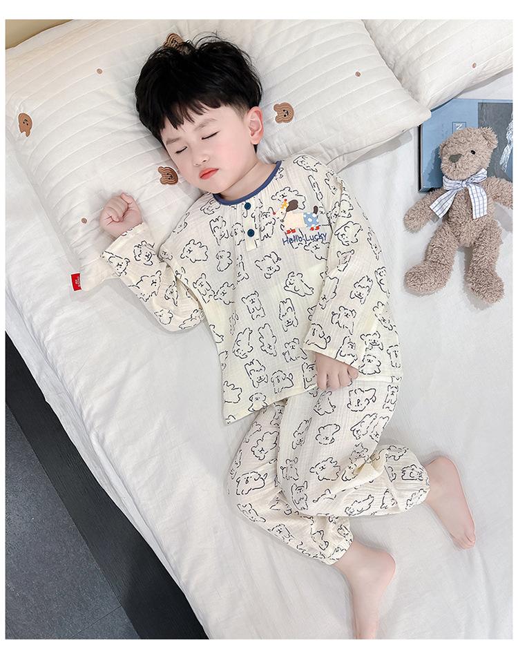 Pijamas de Niño Otoño y Primavera Nuevo Algodón Gasa Infantil Dibujos Animados Manga Larga Set Niño Delgado Conjunto Ropa de Casa
