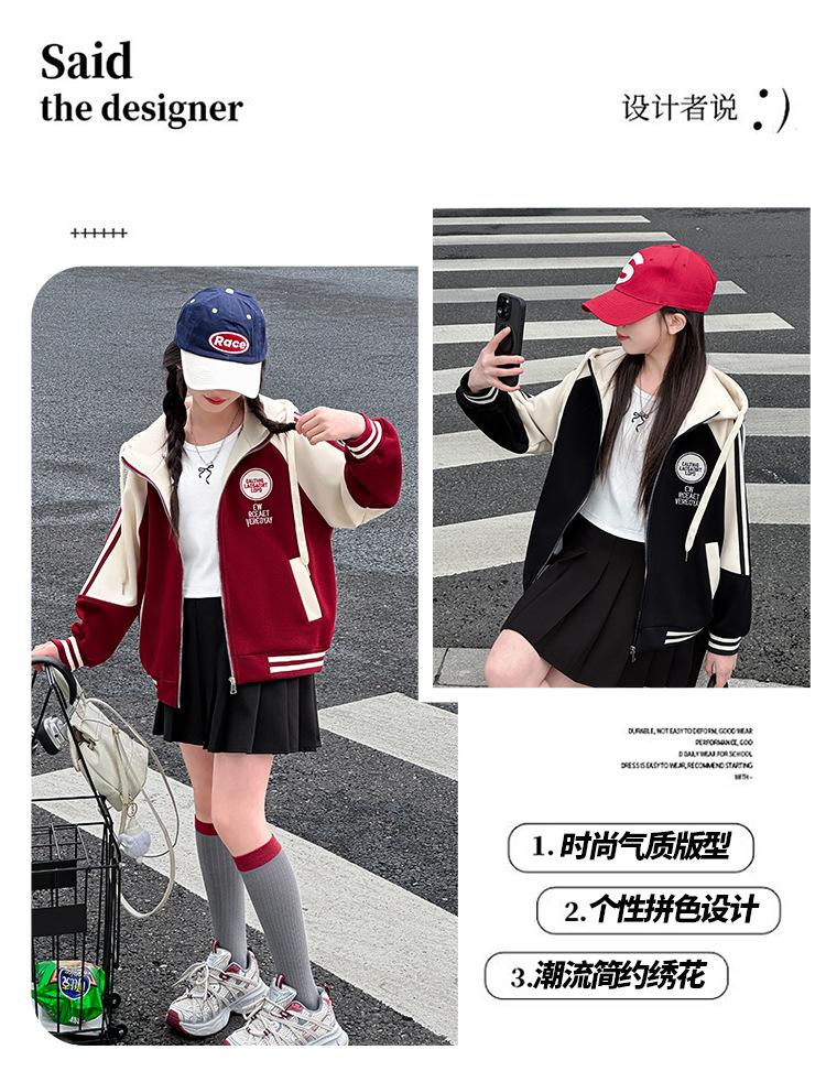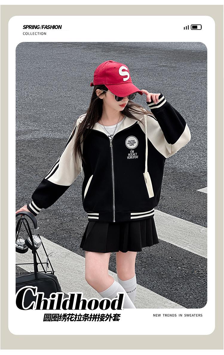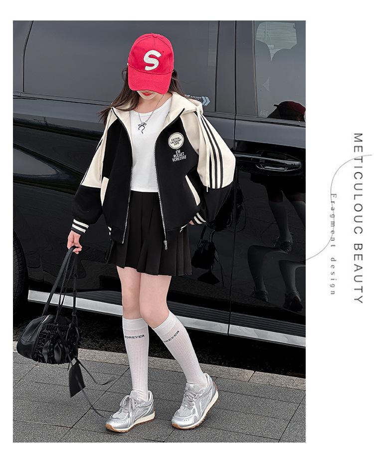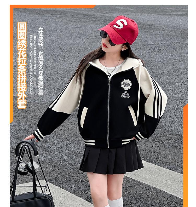 Chaqueta para Niñas Estilo Primavera y Otoño 2025 Nuevo Estilo Moda para Niños Grandes Cárdigan con Cremallera y Capucha Uniforme de Béisbol para Niña Ropa de Otoño Top