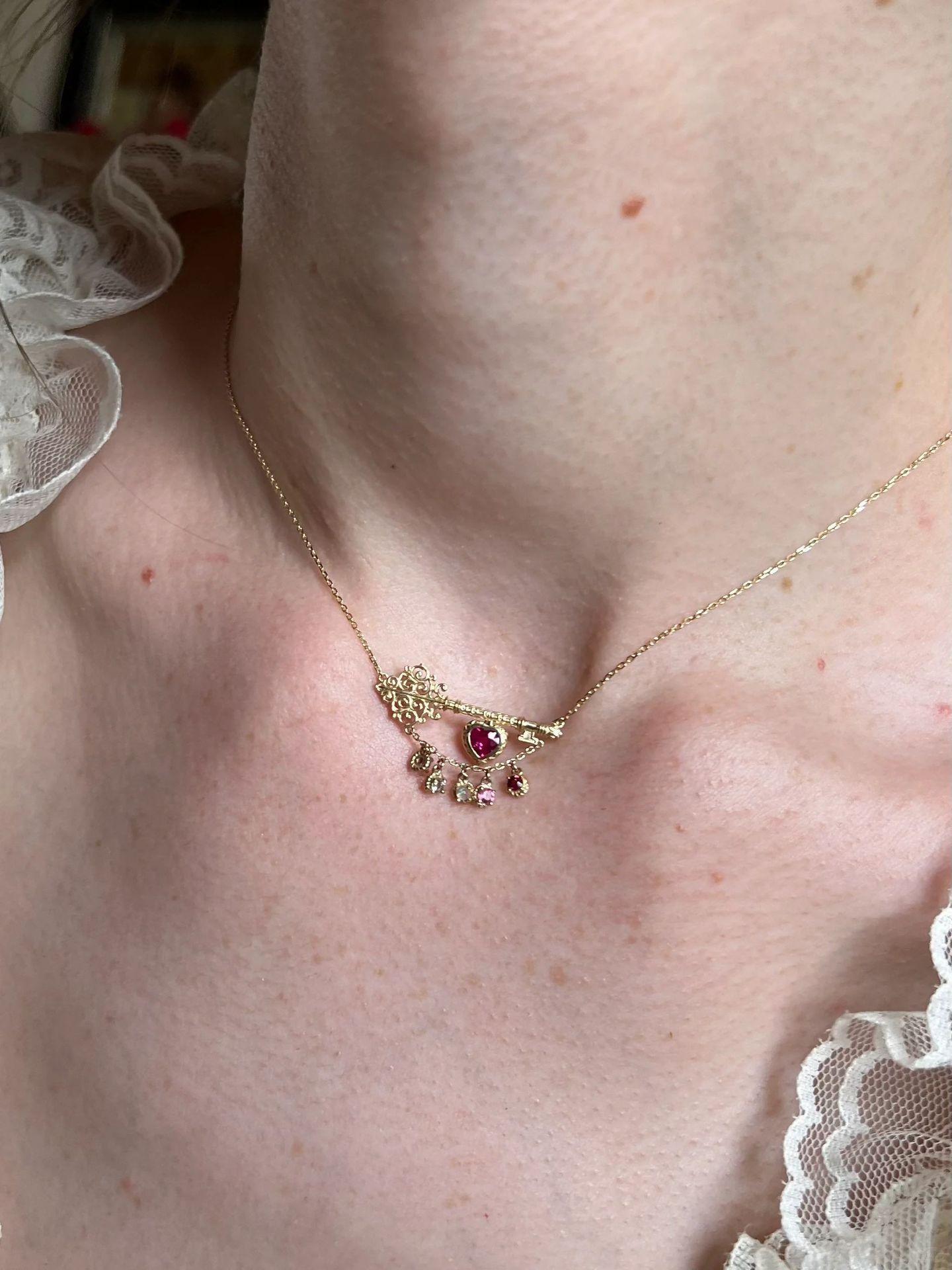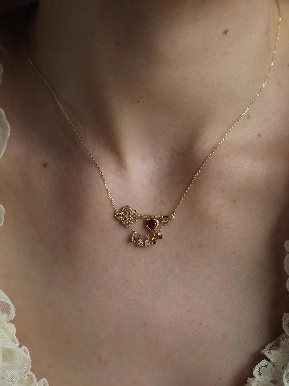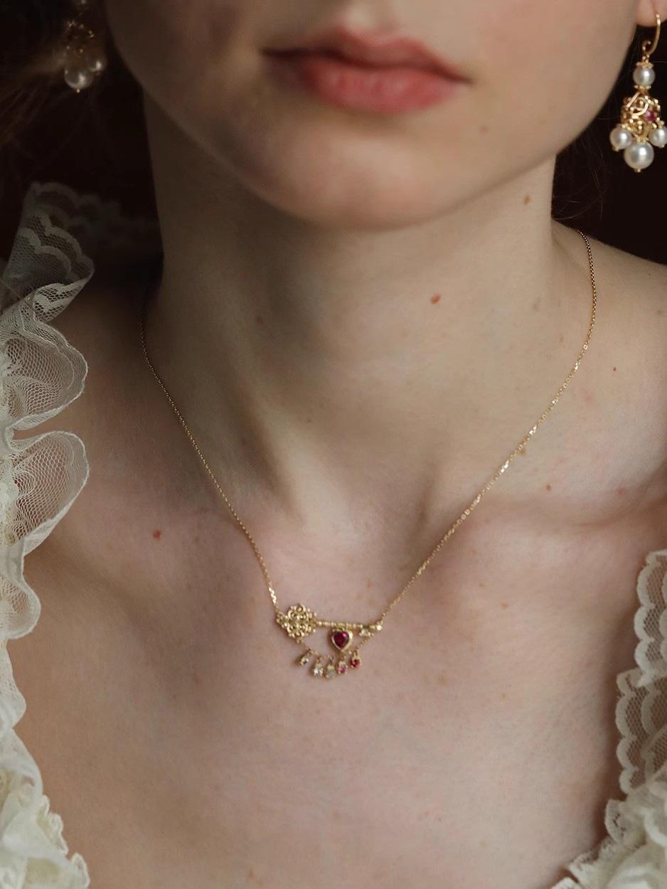 Llave para abrir mi corazón tesoro colorido collar de llave de poesía Xizang femenino vintage estilo antiguo cadena clavicular