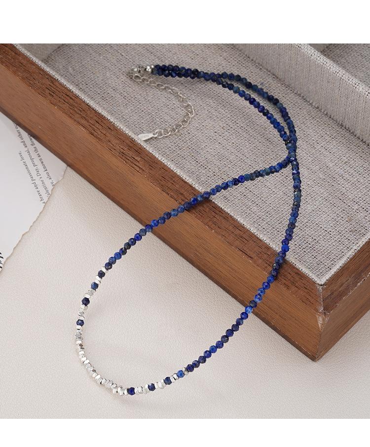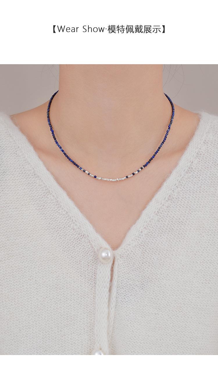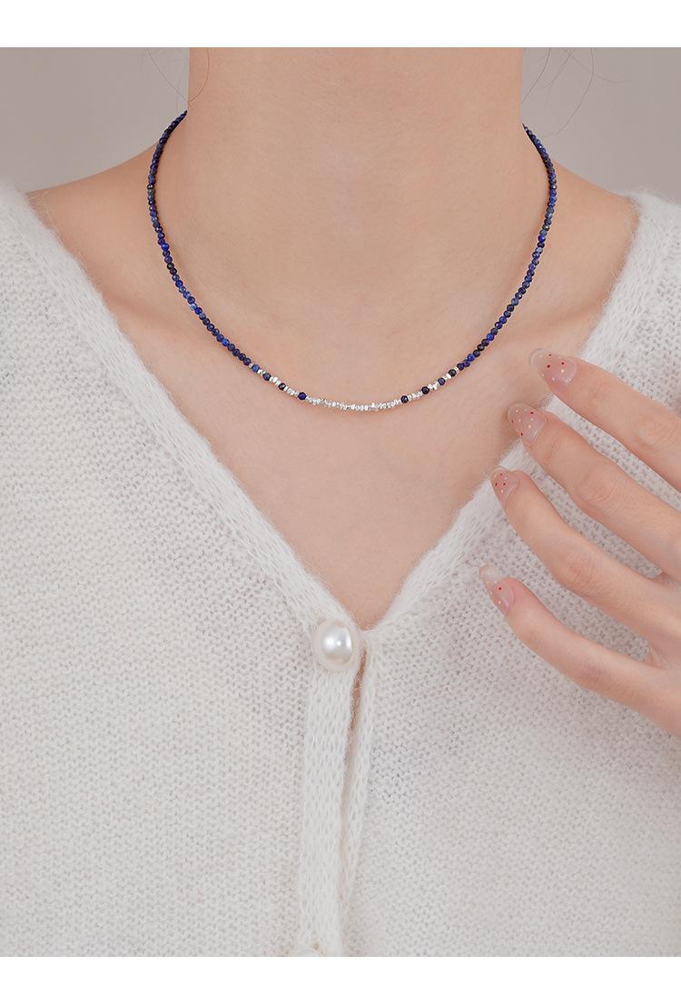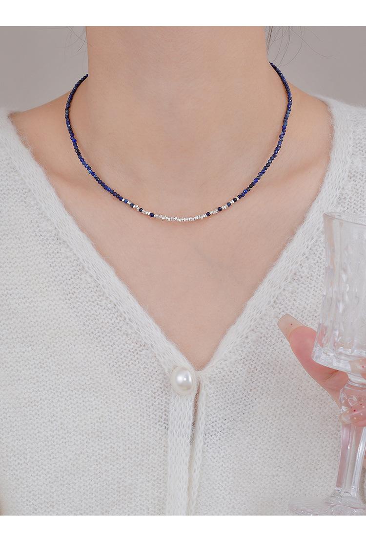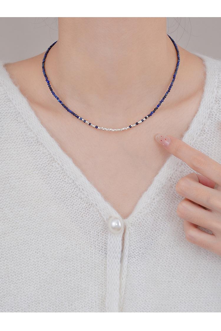 Collar de Plata Roto para Mujer 2025 Nuevo Diseño Nicho Cadena Clavícula Simple de Alta Gama Versátil Collar Azul