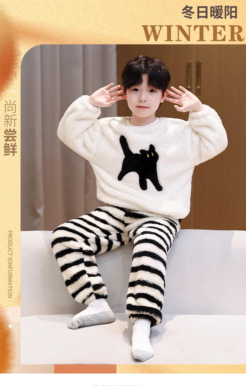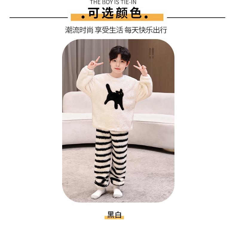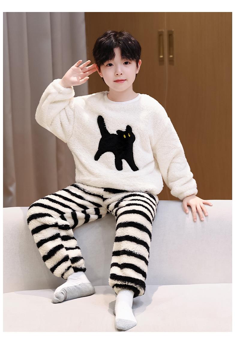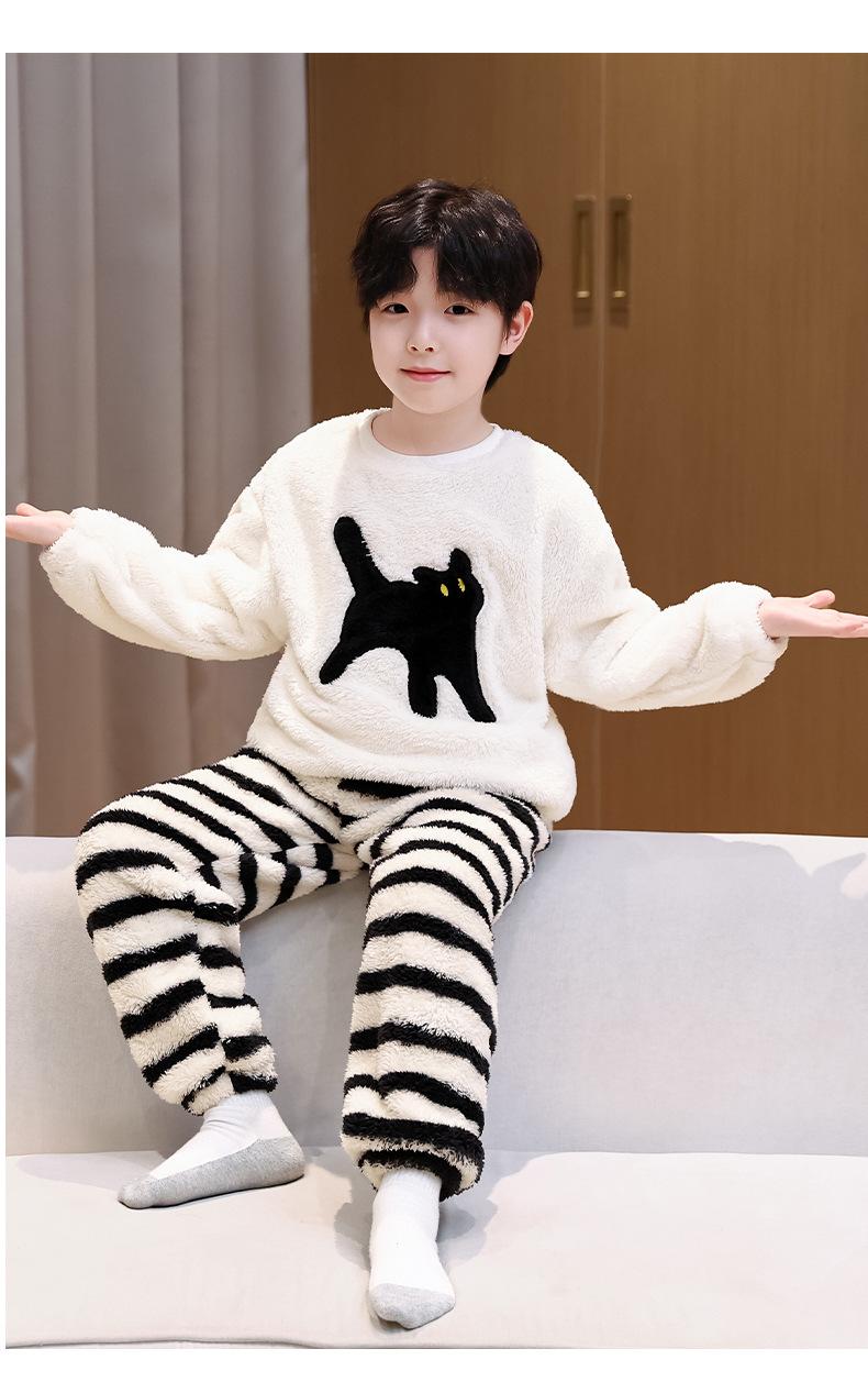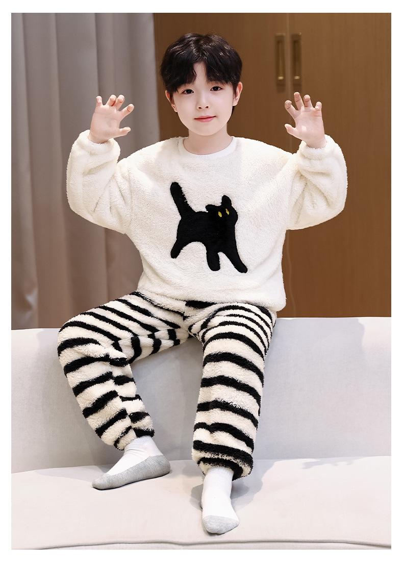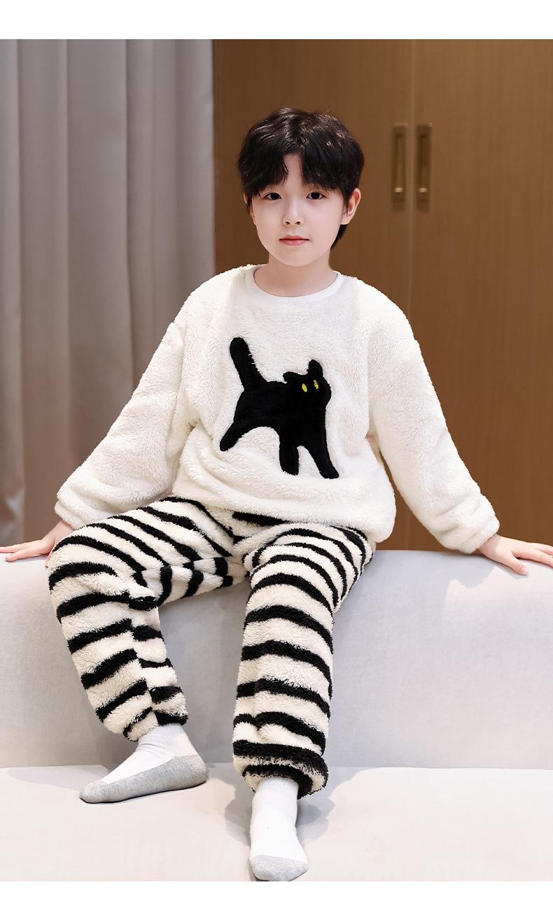 Pijama de franela para niños estilo coreano otoño e invierno niño grande forro polar coral ropa de casa estilo grueso conjunto adolescente tendencia