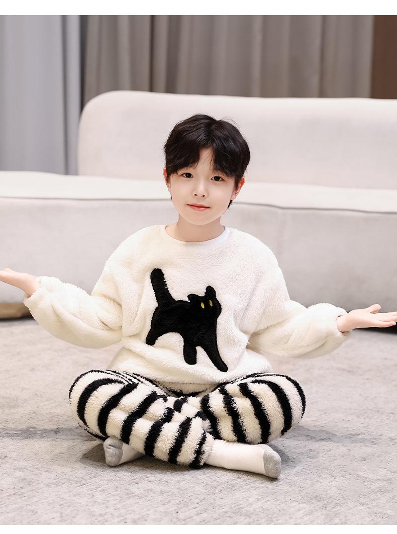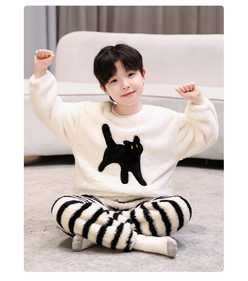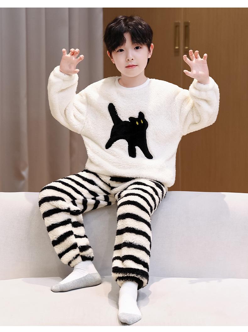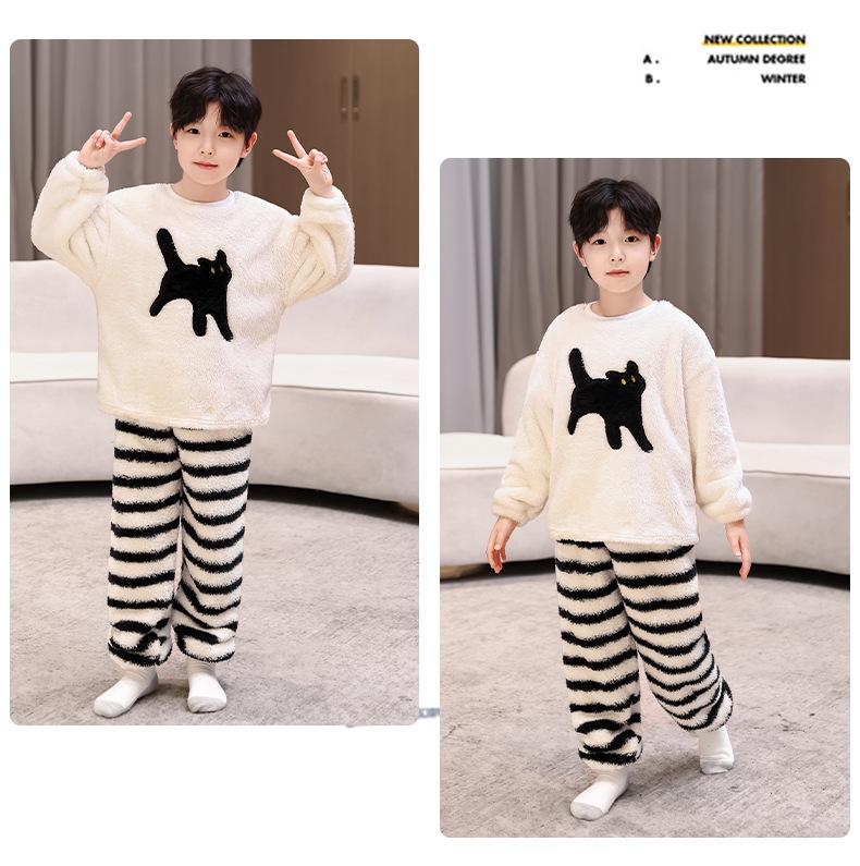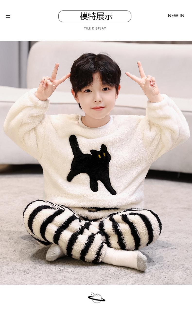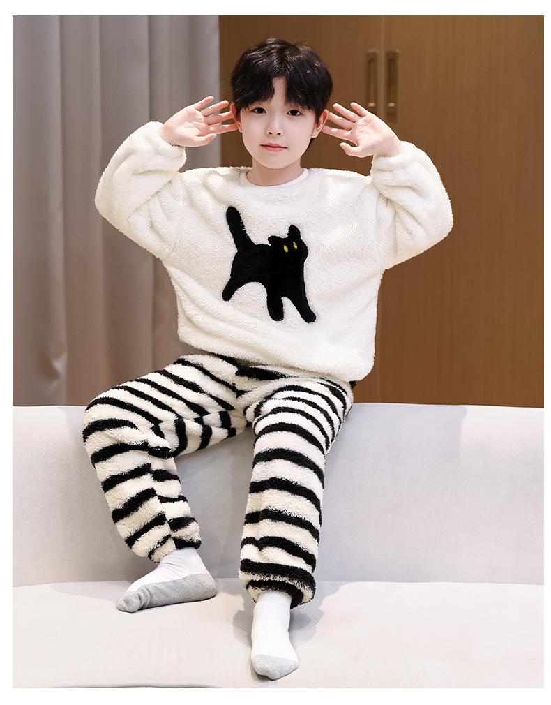 Pijama de franela para niños estilo coreano otoño e invierno niño grande forro polar coral ropa de casa estilo grueso conjunto adolescente tendencia