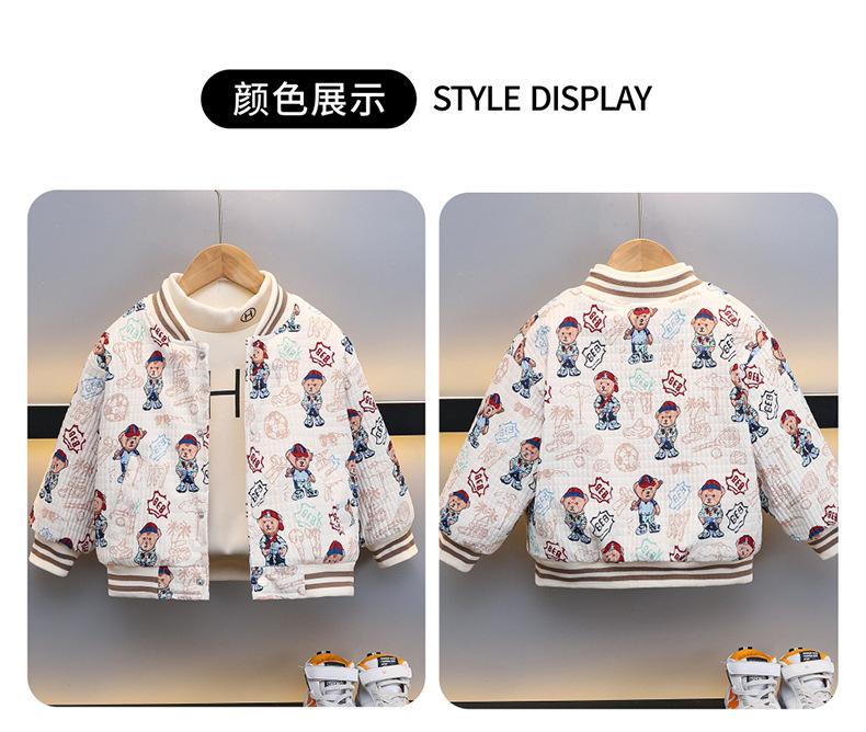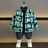 Chaqueta de béisbol para niños gruesa y forrada de polar a la moda, abrigo estilo otoño e invierno para niños, nueva chaqueta acolchada de algodón estilo coreano 2025