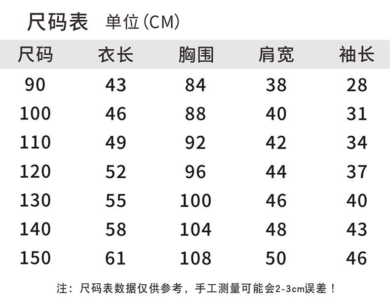 90cm, 100cm, 110cm, 120cm, 130cm, 140cm, 150cm