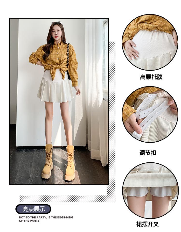 Falda de Media Longitud para Mujer Embarazada Estilo Primavera y Otoño Falda Corta Línea A Pantalones de Soporte Abdominal Falda Versátil Petite Falda de Cintura Alta a la Moda para Exterior
